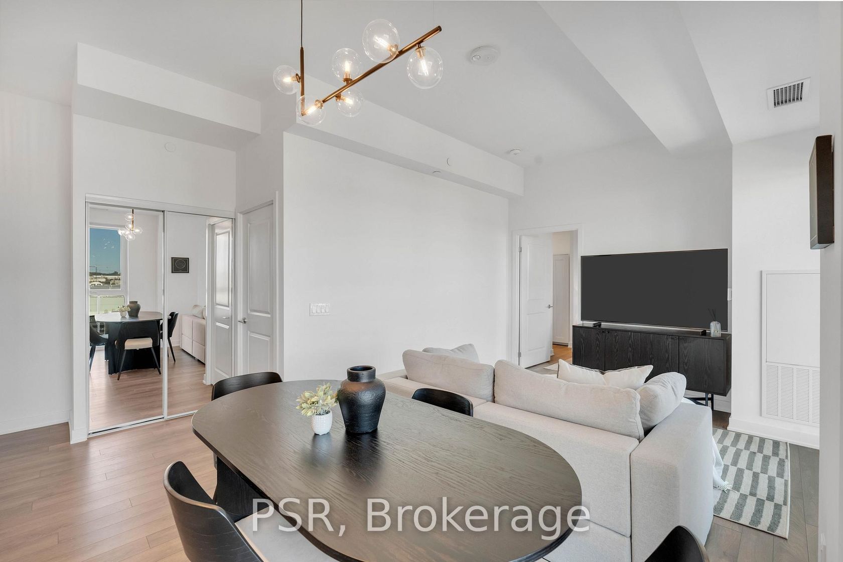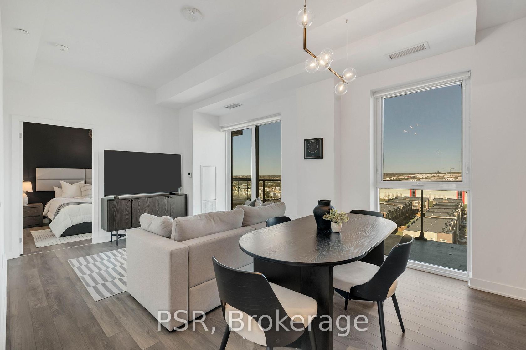 Welcome to the 10th floor of 100 Eagle Rock Way, where sleek design meets everyday comfort in one of Vaughan's most desirable addresses. This beautifully appointed condo offers soaring ceilings, rich hardwood floors, and floor-to-ceiling windows that bathe the space in natural light. The open-concept layout seamlessly connects the living, dining, and kitchen areas, perfect for hosting friends or simply unwinding in style. Step out onto your private, oversized balcony and take in panoramic views, ideal for morning coffees or evening cocktails. The modern kitchen is a chefs dream, featuring premium appliances, stylish cabinetry, and a clean, contemporary finish. The spacious primary suite includes a spa-inspired ensuite, offering a tranquil retreat after a long day. Enjoy upscale amenities including a concierge, fully equipped fitness centre, and outdoor BBQ area, all designed to elevate your lifestyle. Underground parking is also included for your convenience. Ideally situated just moments from shops, restaurants, transit, and major highways, this is urban living at its finest.