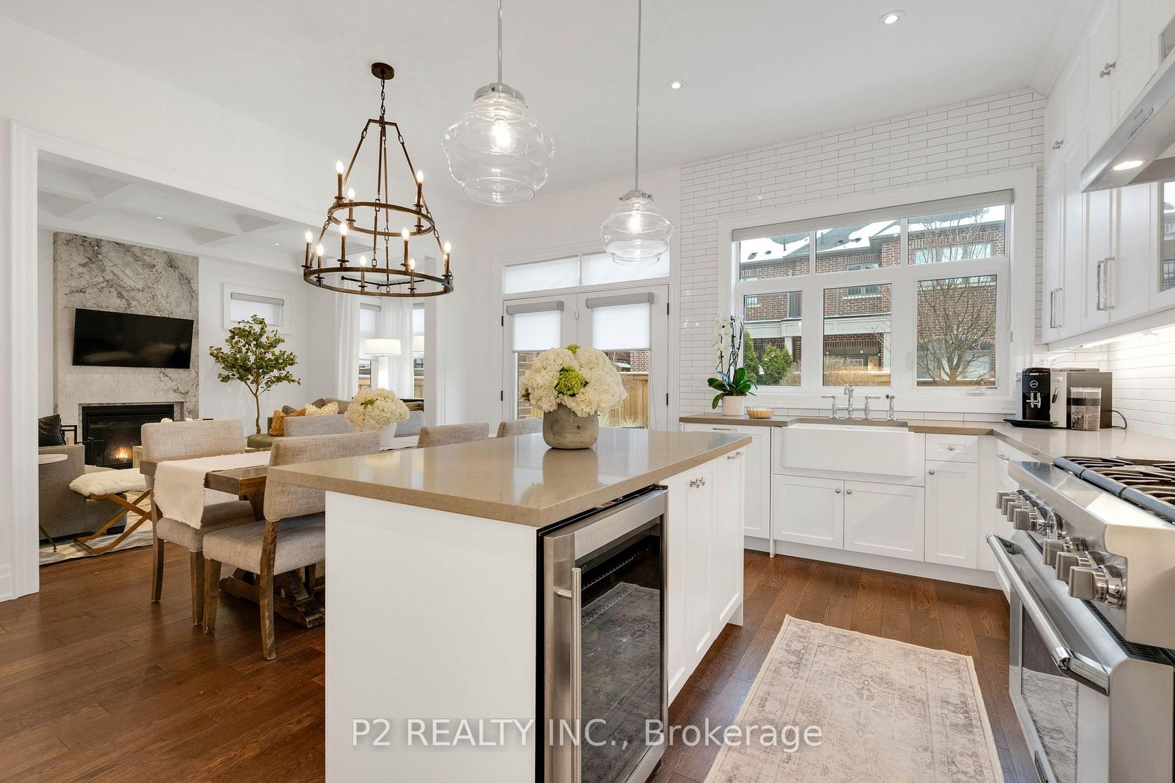 Stunning stone & brick home in the heart of King City offering over 4,000 sq ft of finished luxury living space. Over $250,000 in upgrades Featuring 5 bedrooms, 6 bathrooms, 10 ft ceilings on the main, 9 ft on the second and basement, 8 ft interior doors, 24 x 24 porcelain tiles on main, 5" wire-brushed hardwood flooring on main and second, crown moulding, wainscoting, and designer lighting throughout. Modern custom kitchen with extended uppers, farmers sink, and premium Thermador appliances. Spacious living area with floor-to-ceiling marble gas fireplace. Main floor office with double french glass doors. All bedrooms include their own upgraded bathrooms with quartz counters, 12x24 tiles, and frameless glass doors. Primary suite features a freestanding tub, double vanity, and frameless glass shower. Professionally landscaped front & back yard with gas BBQ hookup, outdoor landscape lighting, and 2 EV plugs in garage. Finished basement includes a fitness room, large recreation area, Great room with electric fireplace, storage rooms, cantina, and 3-pc bath. Additional features include custom closet organizers, upgraded window coverings, second-floor laundry, solid 3-lock fiberglass main door, and 200-amp electrical panel. Premium lot with unobstructed east views-luxury living in a prime King City location.