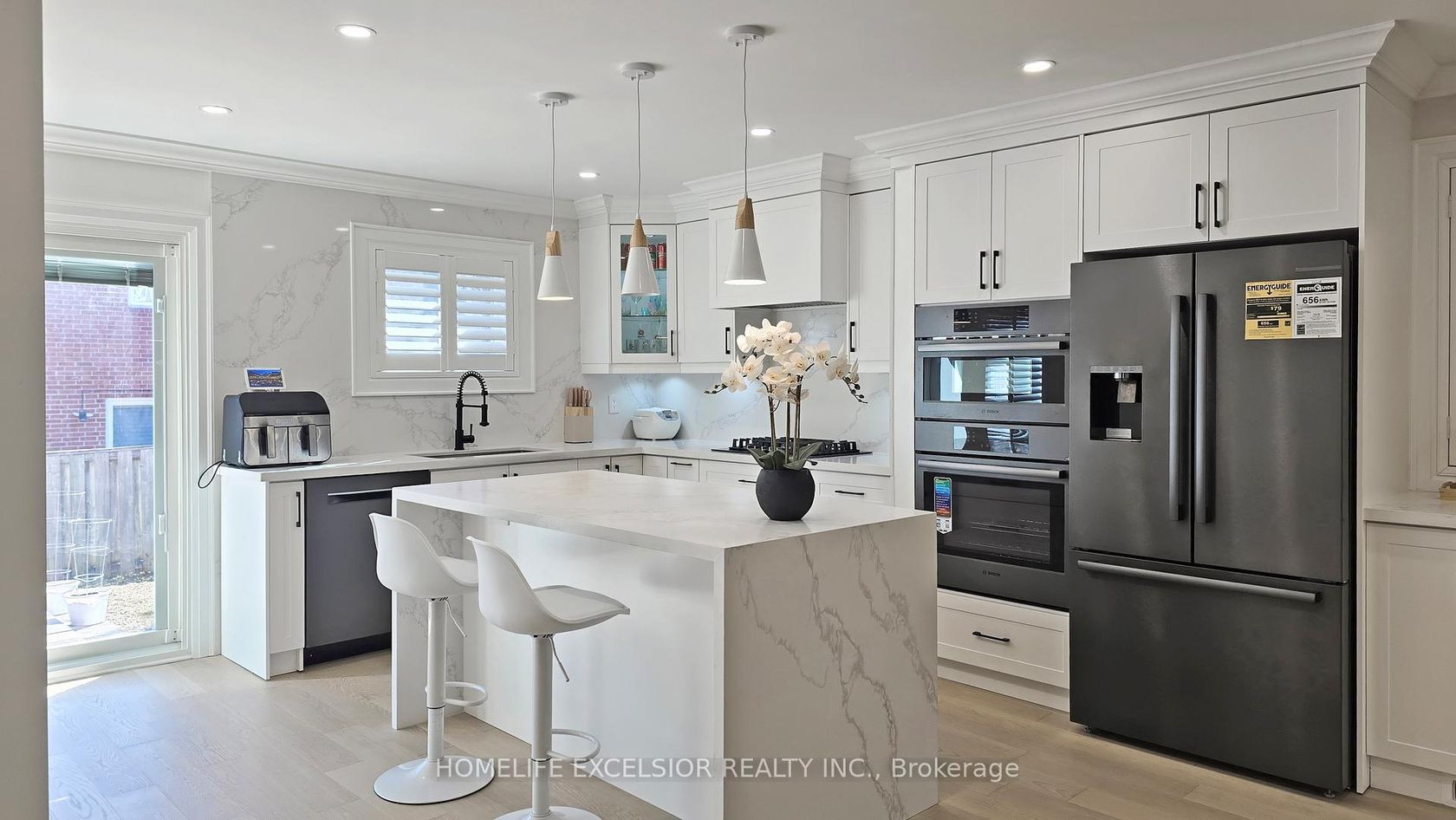 **YOUR DREAM HOME IS HERE** Fully renovated top to bottom in 2022. Chef's Kitchen with gas stove. Undermount sink with white quartz countertop & eat-in Island with storage. Bosch appliances. Open Concept Main Floor with light Engineer Hardwood flooring throughout. Smooth Ceiling w Pot lights throughout ALL floors. High-end Grohe fixtures throughout. 4 Bedrooms with custom built-in closet. California shutter throughout. High-efficiency furnace(2022); A/C Unit(2022); Tankless Water Heater(2022); Finished basement with 3pc bathroom, Vinyl Flooring and 2 rooms can that be used as office/bedroom/storage. Sought-after Thornhill location, walking distance to synagogue; Steps to Yorkhill Public School, Kosher Dining and Shopping.