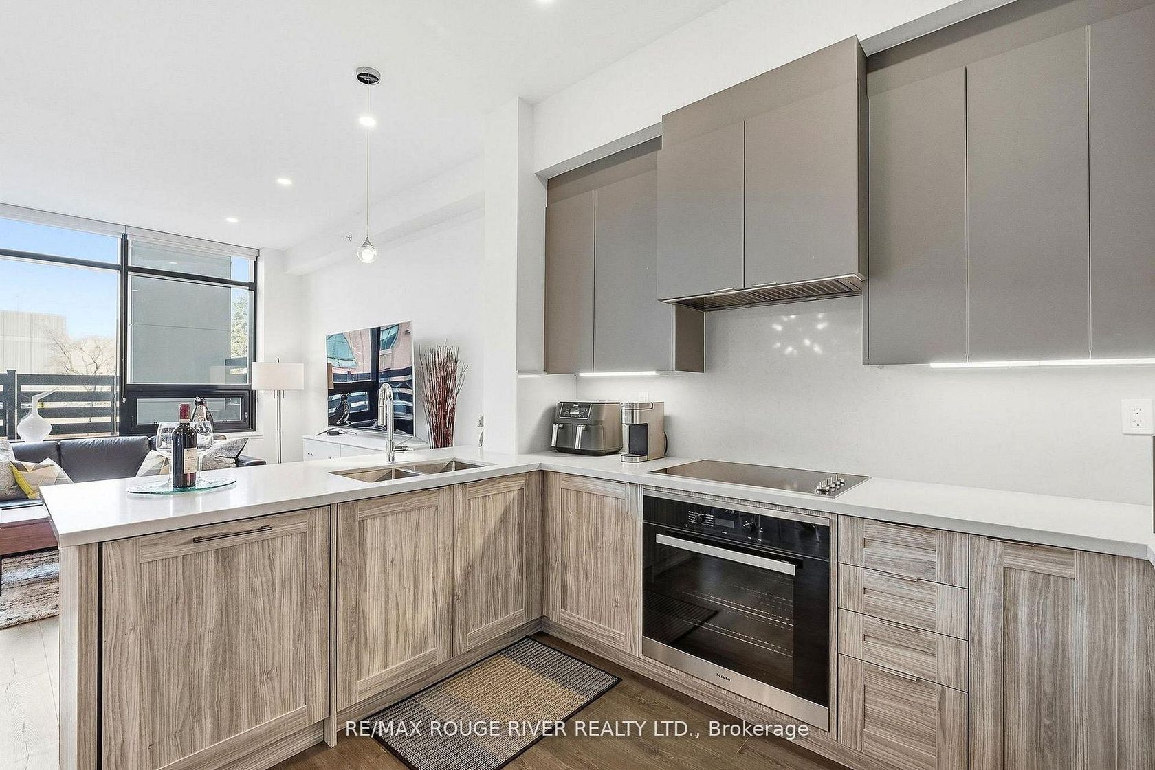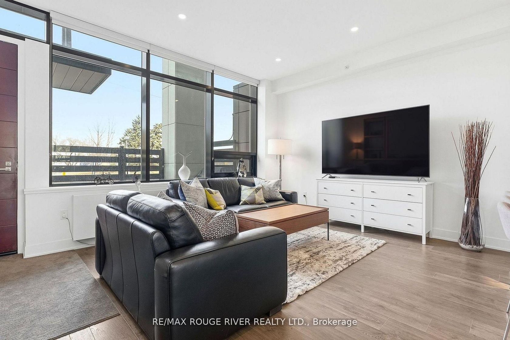 A rare private-entry lux town at the prestigious NØRD East Condos, where the refined design reflects an elevated urban lifestyle. Known for its exceptional amenities and well-regarded Del Property Management, the bright, open interior features soaring ceilings, expansive windows, and a seamless walkout to a private terrace, ideal for dining alfresco, complete with a BBQ gas line, waterline, and your own private exterior entry gate, perfect for an active, pet-friendly lifestyle. The integrated chef's kitchen showcases Caesarstone counters and premium Miele appliances, blending style with everyday functionality. A spacious main-floor den with mirrored closets offers versatility as an office or a guest room, conveniently located near the powder room. The elegant glass staircase leads to a generous primary retreat featuring a large walk-in closet and a well appointed ensuite with extended double vanities. Custom blinds, pot lights, chandeliers, and curated finishes enhance the home throughout. Residents enjoy resort-style amenities including an aqua oasis with indoor/outdoor pools, yoga studio, fitness centre, 24-hour concierge, guest suites, theatre room, party room, chef's table, and pet spa. Access to a new park featuring a children's play area adds to the community"s appeal. Includes a storage locker and a dedicated underground parking space, plus ample ground level visitor parking. With a 10 min. walk to the VMC (subway, TTC line 1), & the SmartVMC bus terminal, & Viva transit, the power of proximity offers seamless connectivity to the city.