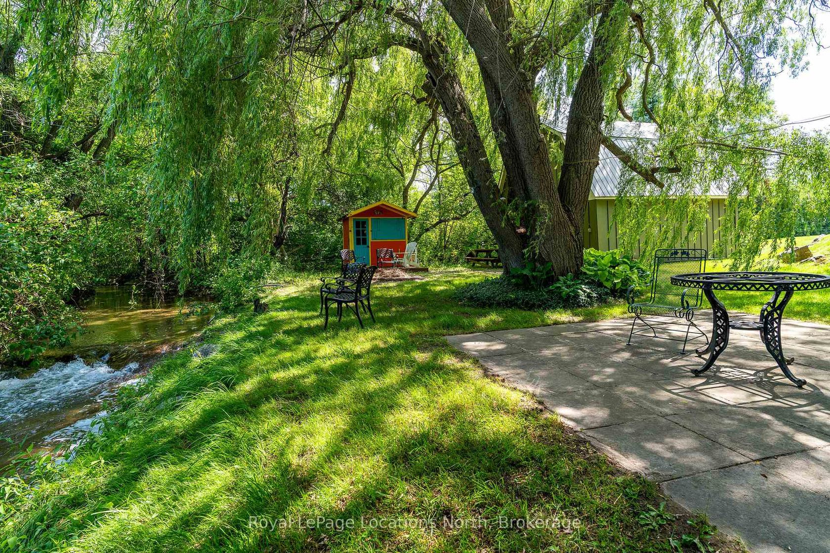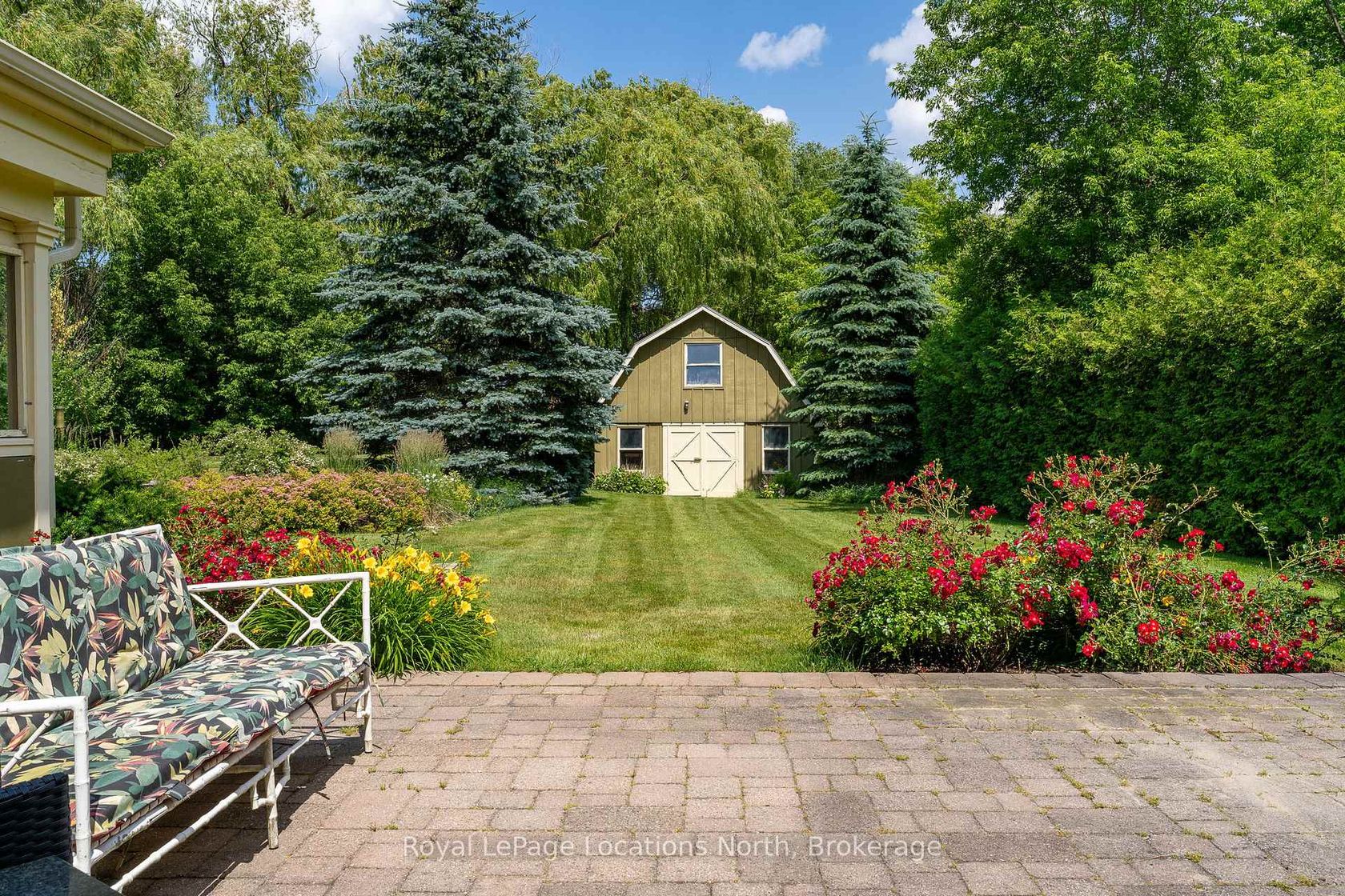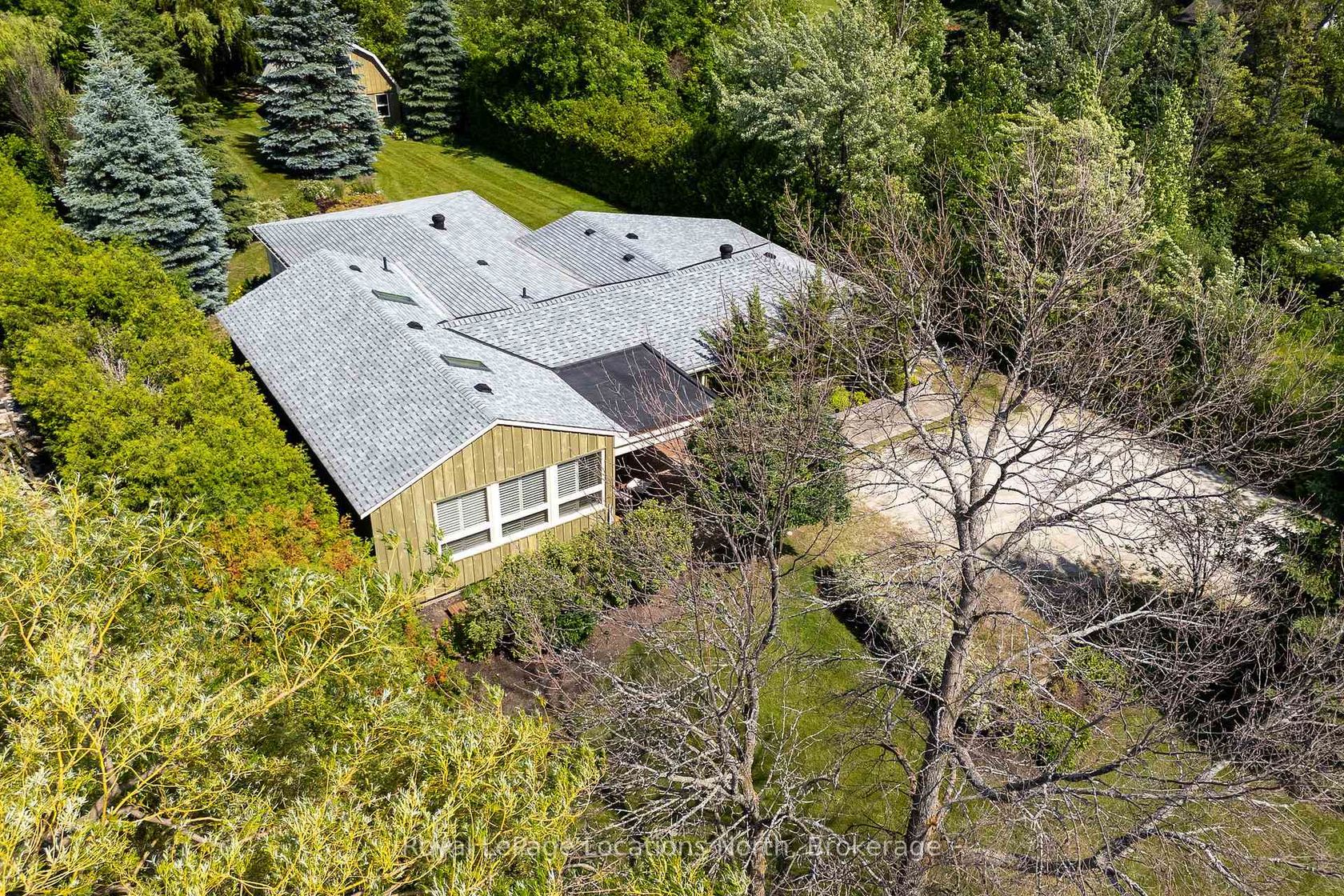 Don't miss this rare opportunity! Loved by the same family for 40 years, this 5-bedroom, 4-bathroom home is full of character and charm. The Great Room lives up to its name at 38 feet long, with soaring ceilings, skylights, and a cozy gas fireplace. Set on a deep, landscaped lot backing onto Silver Creek, you can enjoy evening cocktails while watching salmon and trout swim by. A two-story shed offers storage for all your toys...skiing, biking, hiking, or gardening. Just minutes from downtown Collingwood, Blue Mountain, and Osler Bluff, this home puts adventure and relaxation at your doorstep. More than a home, its a lifestyle! Being sold as is, where is with no representations or warranties, as the sellers have never lived in the property.