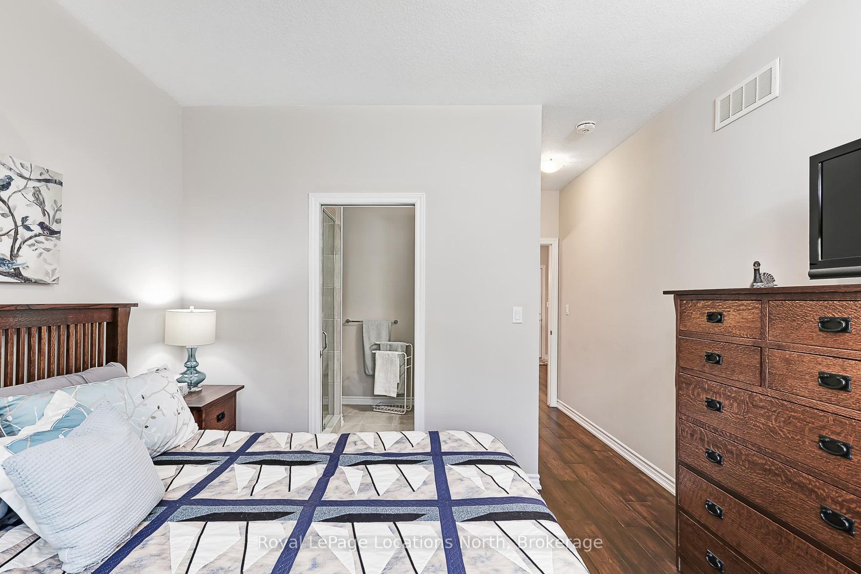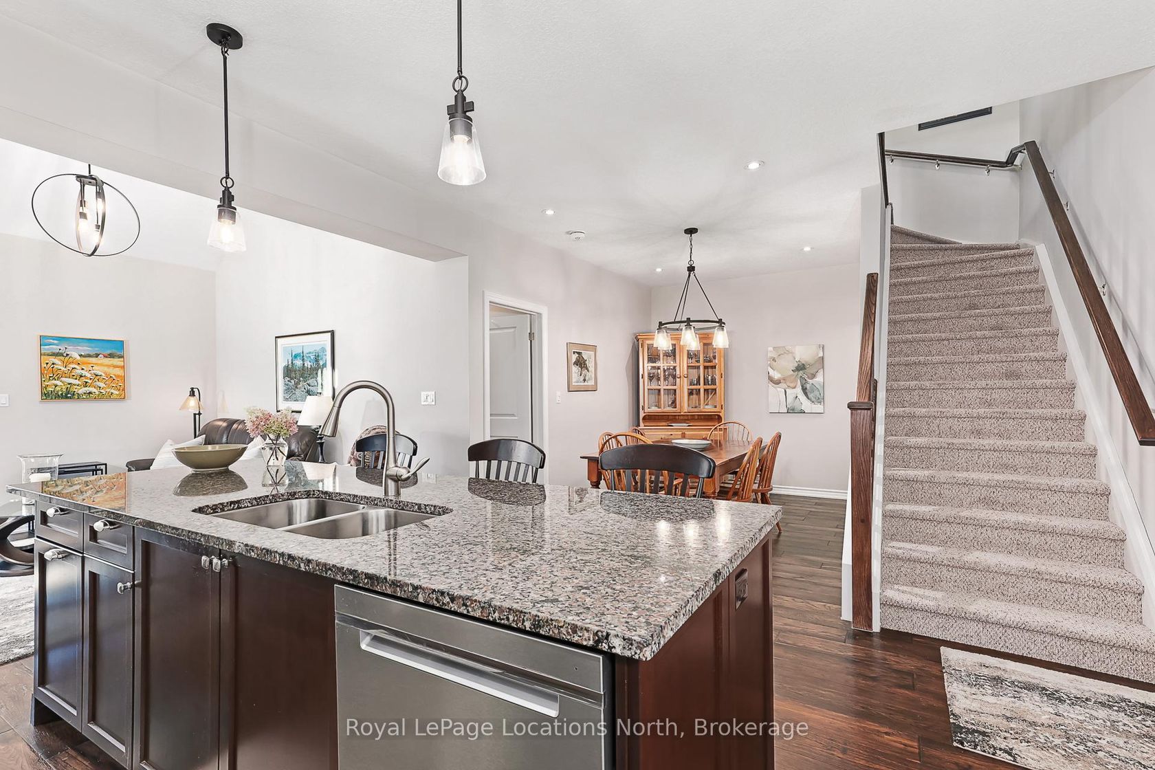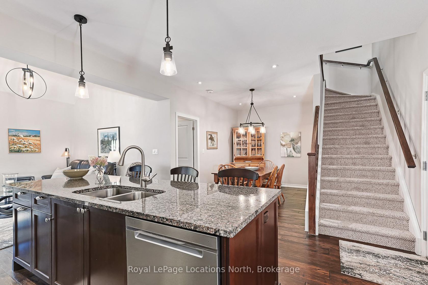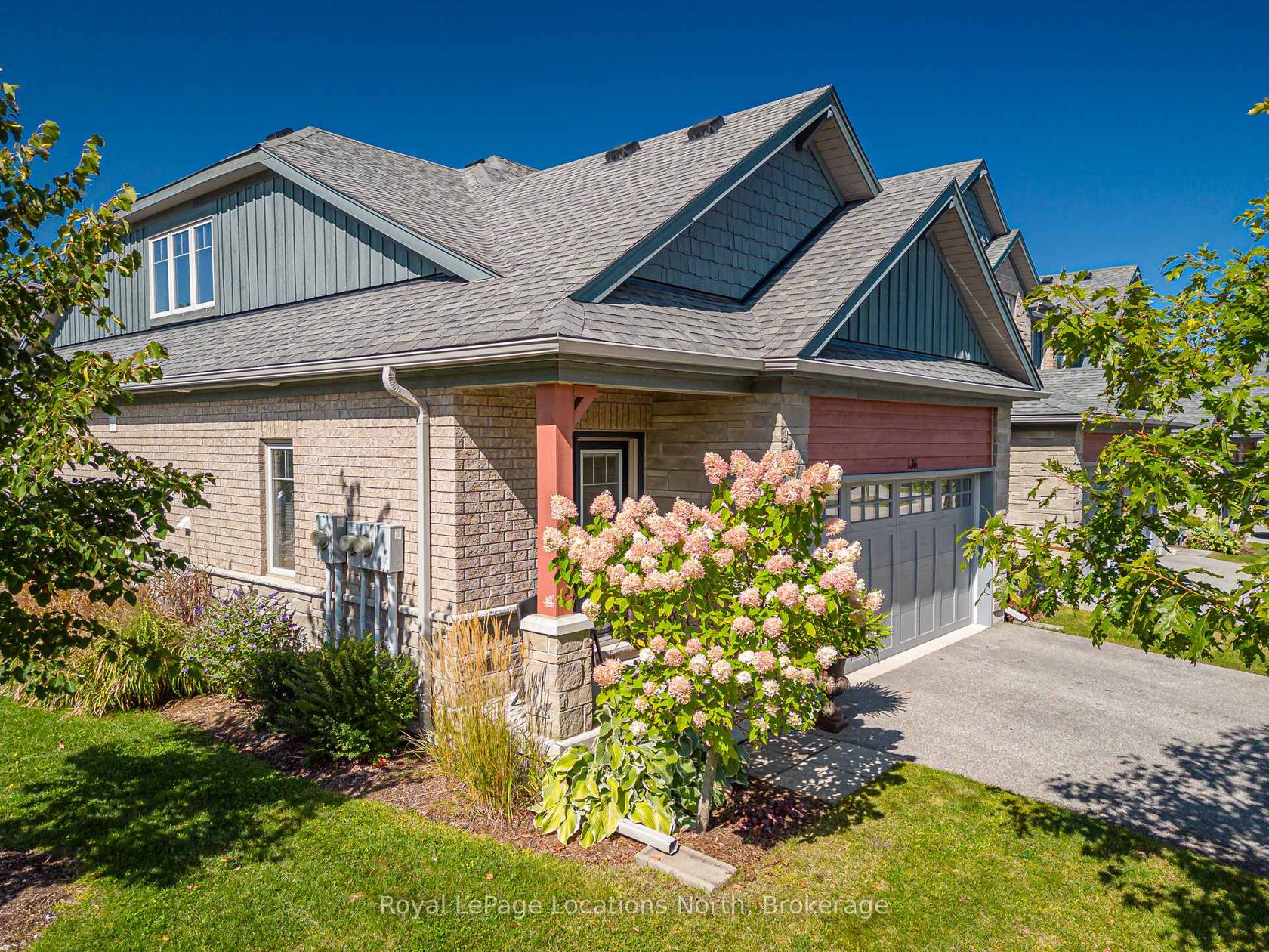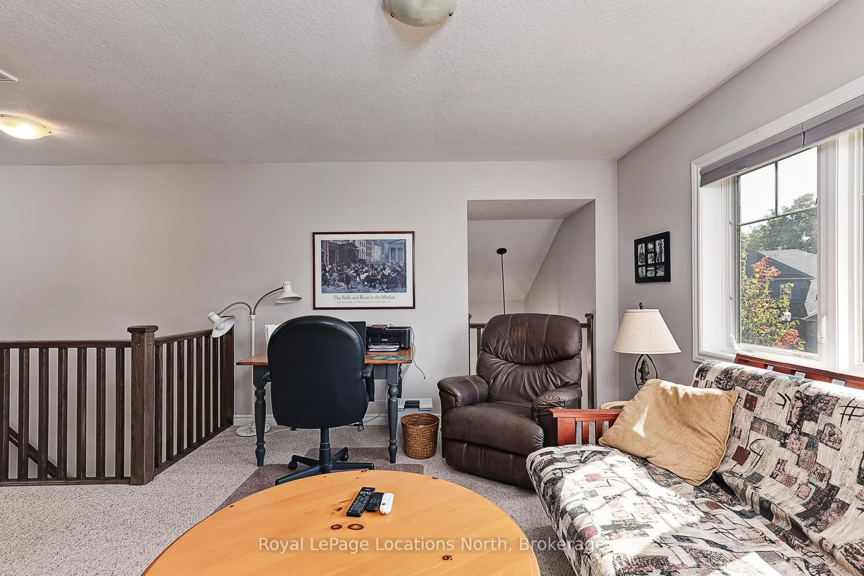 Welcome to 136 Conservation Way, Collingwood a beautifully upgraded end-unit bungaloft set within a quiet, friendly community designed for those who value both comfort and an active, recreational lifestyle. Step inside this tasteful, energy-efficient home and discover thoughtful upgrades throughout, including engineered wide plank floors and a modern kitchen with stainless steel appliances, granite countertops and a functional island. The inviting living room, complete with a cozy gas fireplace, opens onto a private patio with an electronic awning, the perfect spot for relaxing on warm summer days.The main floor primary bedroom offers a private retreat with a 3-piece ensuite, while the main floor also provides the convenience of a 2-piece bath and easy access to laundry. Upstairs, the versatile loft space is ideal as a family room or home office and an additional bedroom with a 4-piece bath ensures plenty of room for guests. The unfinished basement with oversized windows is ready for your personal design. Practical features include central air, central vac and a double garage with inside entry. This home is part of a welcoming community where residents enjoy access to a recreation centre featuring an outdoor pool, sauna and games room with billiards, air hockey, ping pong, darts and shuffleboard. Step outside to explore the nearby trail systems, ski hills, golf courses and waterfront that make Collingwood one of Ontario's most sought-after four-season playgrounds. Whether you are looking for a full-time residence or a weekend retreat, this Wanderer floor plan bungaloft combines modern living, a prime location and endless recreational opportunities.