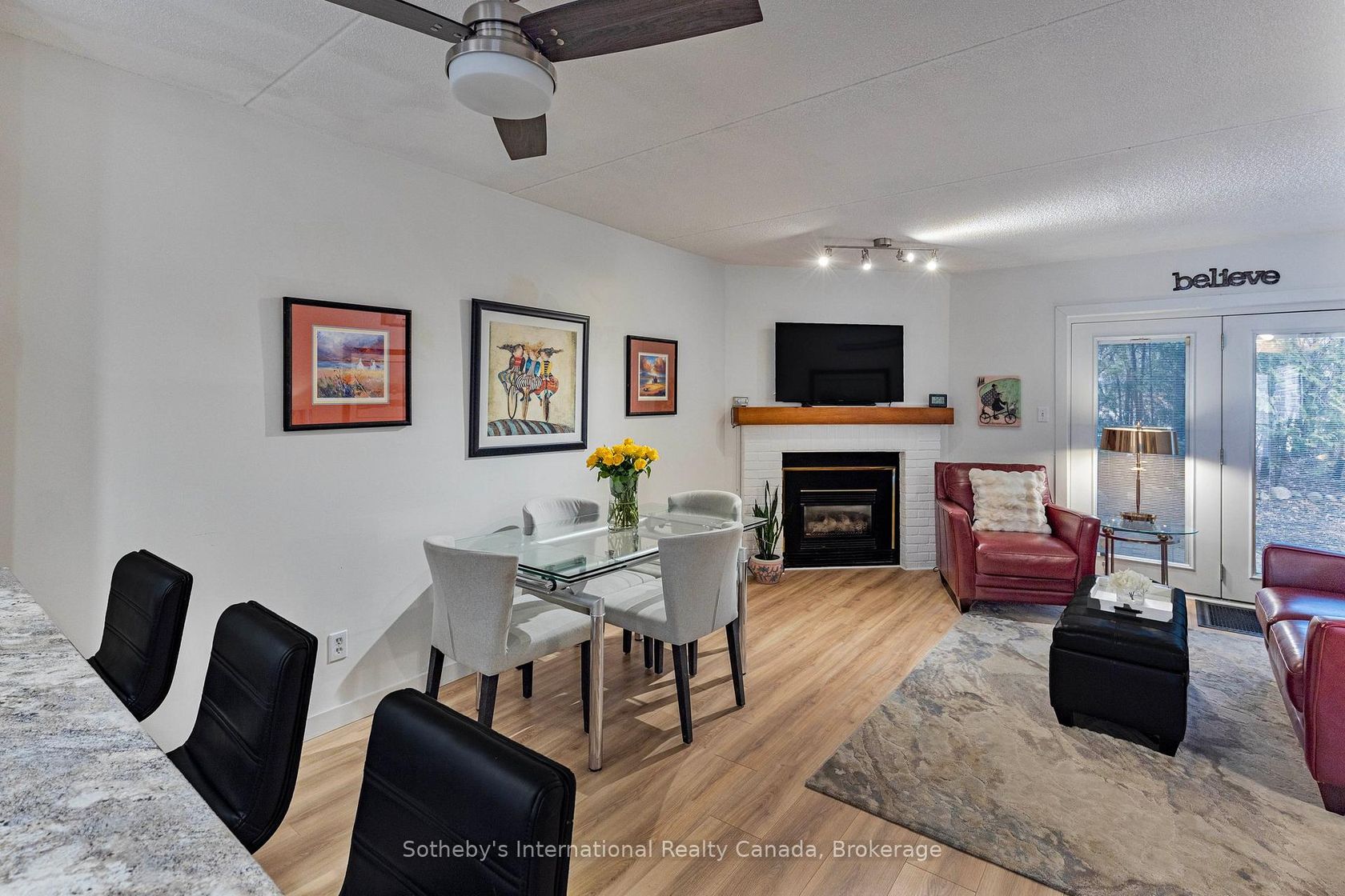 Fully Renovated ground floor 2 bedroom, 2 bathroom condo. Enjoy a short stroll to the shores Georgian Bay and the Collingwood Trail system. Walk or ride directly to Downtown Collingwood from your front door. Minutes away from area ski clubs and golf resorts and shopping. Features included beautiful new open plan kitchen cabinetry, counters and new flooring throughout the whole unit. Both bathrooms benefit from new cabinetry and floors. Baseboard heaters have been upgraded throughout the whole unit. New front door replaced in 2023. Freshly painted, this spacious condo offers an open plan concept featuring dining area and living space with cozy gas f/p and doors to private patio. This unit features a good sized second bedroom which could also double as an office/den. In unit laundry makes this an ideal full time home or fantastic weekend retreat with allocated parking bright outside front door.