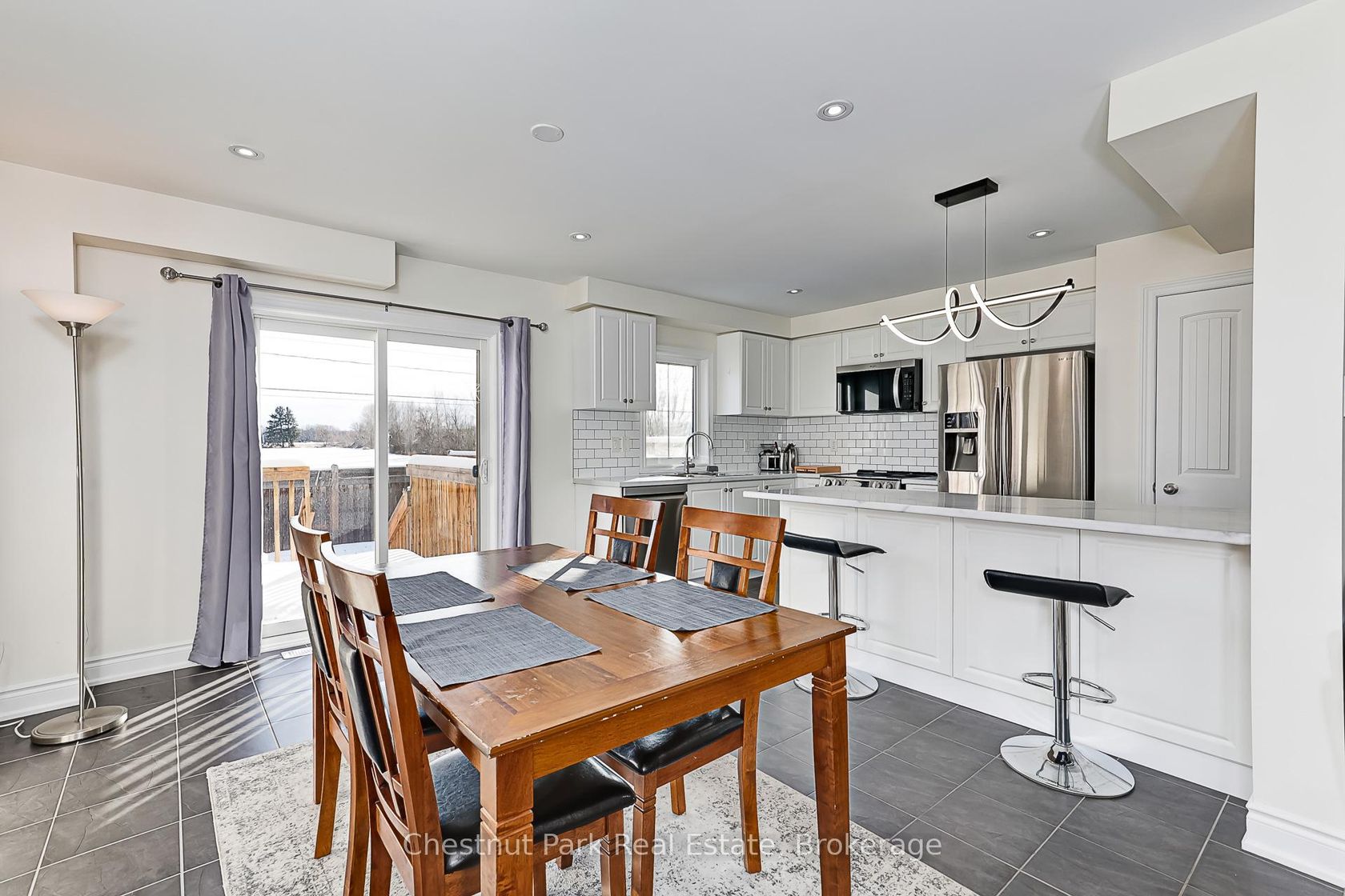 PRETTY RIVER ESTATES: A very popular location close to Collingwood and only a short drive to Blue Mountain and The Village. This freshly painted end semi offers 3 Beds and 3 Baths, over 1,700 finished sq ft of living space that is bright and welcoming. Open Concept Kitchen/Living/Dining with majority of stainless appliances being brand new together with an updated Kitchen comprising new centre island countertop & light fixture. A cozy gas fireplace makes the living space cozy for those cooler Winter evenings. Staircase to 2nd floor where double doors open into the Primary bedroom, with double doors and a spacious walk-in closet and 4PC en-suite with new vanity. Far reaching views across open countryside. A further 2 bedrooms with another 4PC bathroom complete with new vanity and a large laundry room complete the 2nd floor. A large unfinished basement awaits your personal touch to finish how you wish. The rear garden has a new fence and lawn to savour sultry Summer evenings. Enjoy everything this wonderful property and spectacular 4 Season area has to offer in beautiful Southern Georgian Bay. Some photos have been virtually staged.