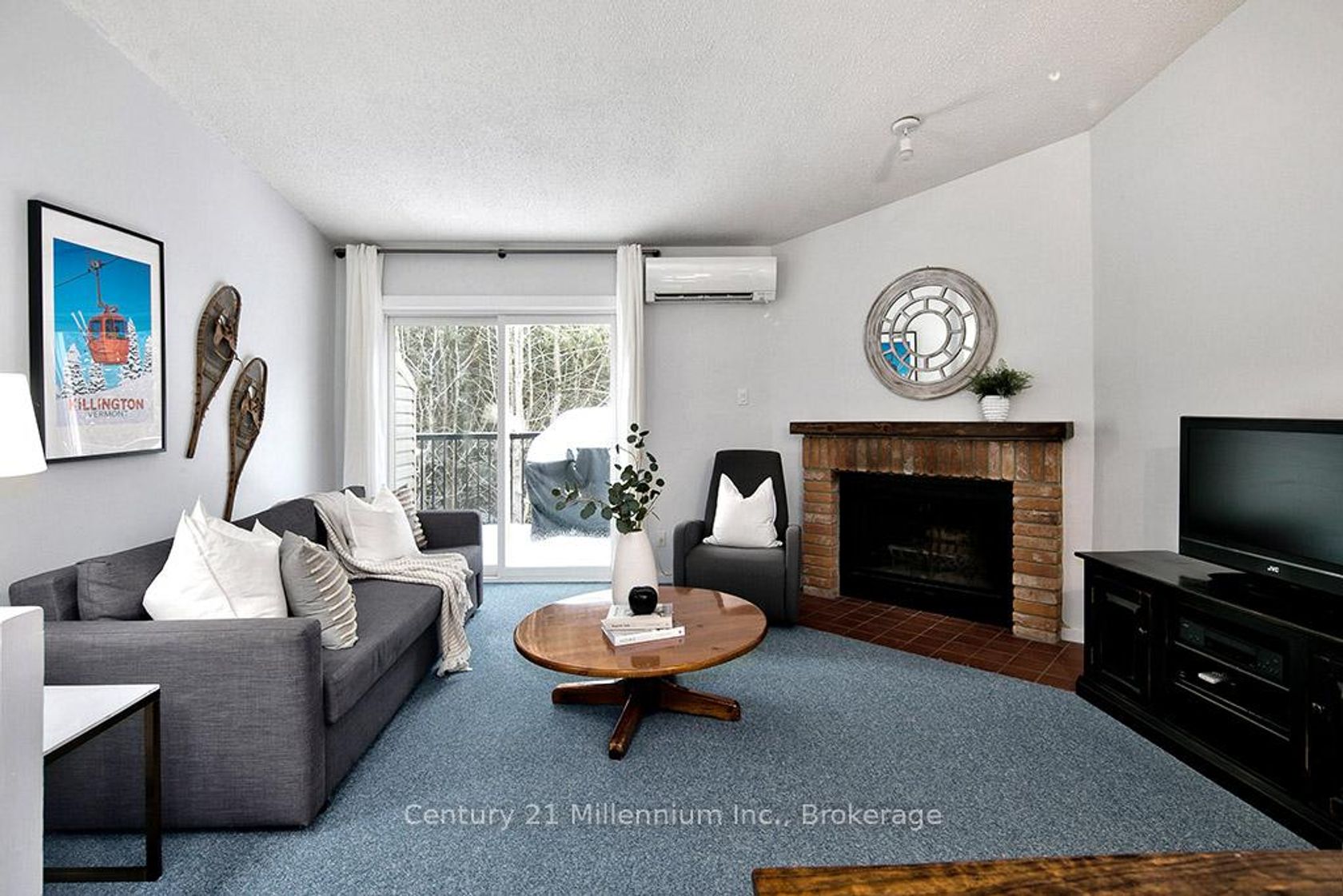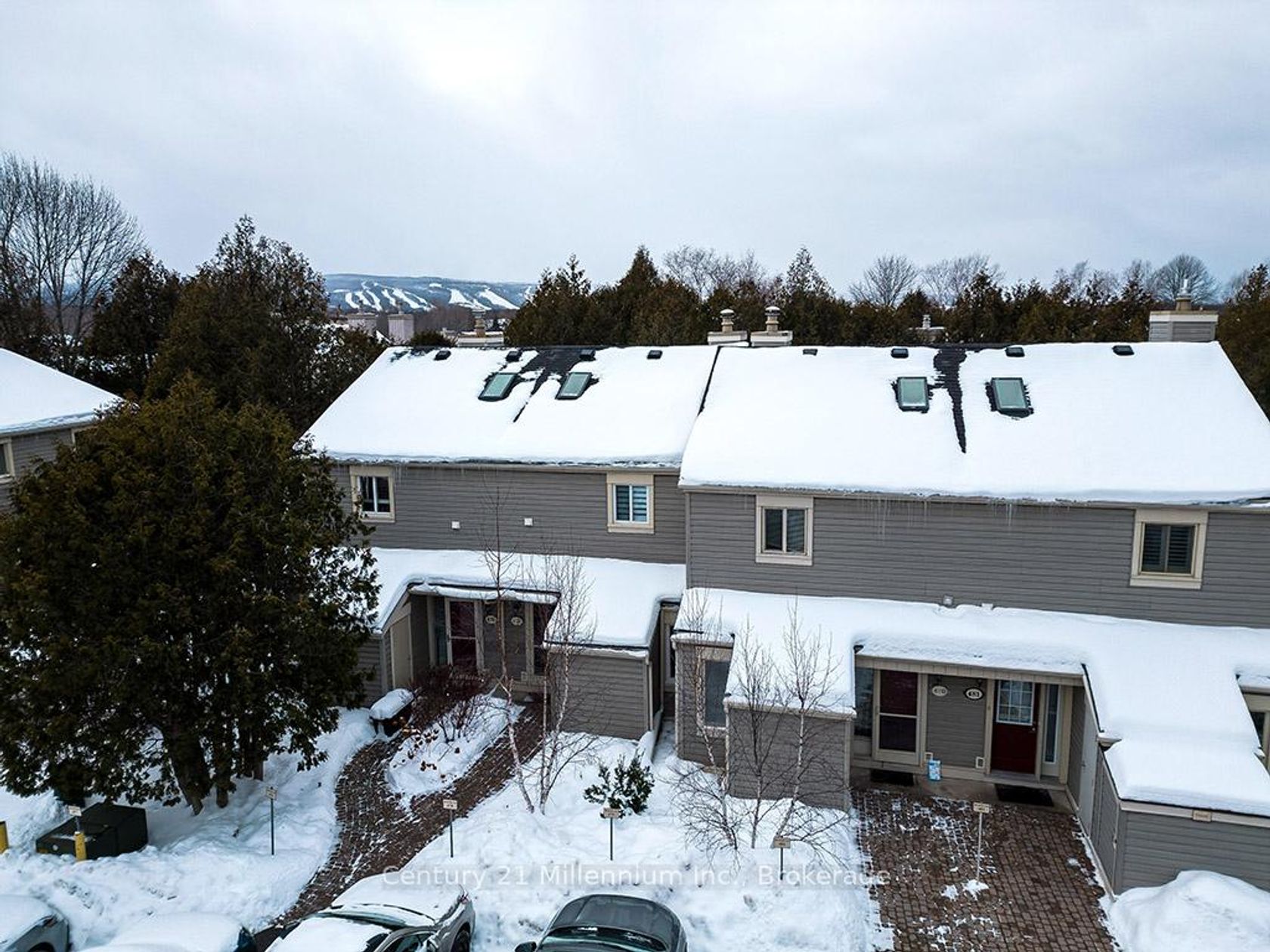 The perfect home or getaway in Collingwood - Ontario's Four Season playground. This remarkable condo townhome is located in Living Stone Community (formerly Cranberry) - close to waterfront, trails, golf, beaches and ski hills. Enjoy a reverse floor plan with a bright and open upper main floor - featuring vaulted ceilings with a sky light, a cozy wood burning fireplace, and a large private balcony backing onto mature trees. The ground floor offers two sizeable bedrooms and two updated four-piece bathrooms with a recently installed walkout to your private deck from the primary bedroom. Ample storage is available under the stairs and in your exterior personal shed. Control your temperature efficiently with 2 recently installed ductless cooling and heat pump systems - one on each level, plus baseboard heaters for backup. A rare opportunity for a lovingly maintained home with reasonable condo fees, a well managed community, visitor parking, and beautiful, mature trees surrounding the property. Available partially furnished. Your Collingwood Lifestyle awaits!