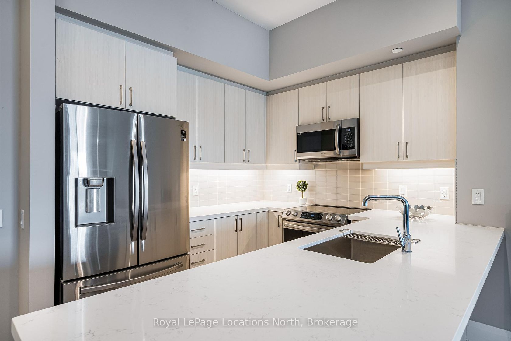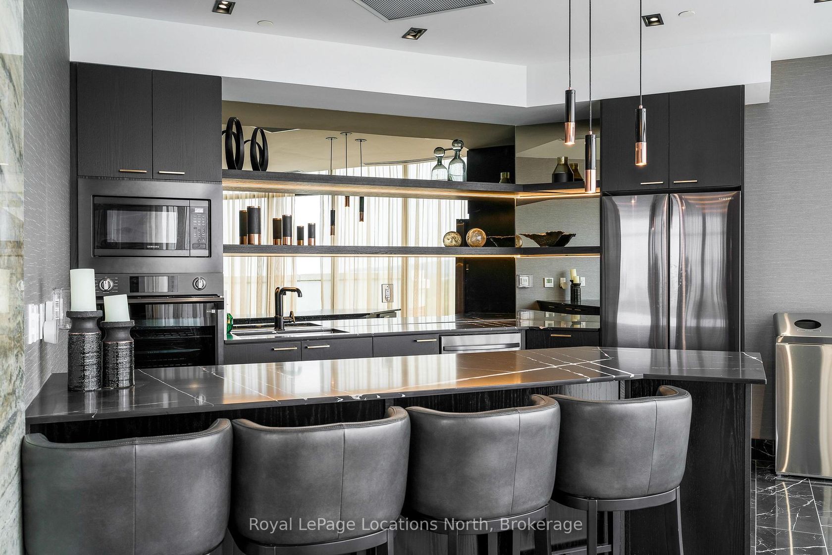 Experience refined living at Monaco, downtown Collingwood's most coveted address. This beautifully appointed "Beatrice" model offers 1,150 sq. ft. of thoughtfully designed space, featuring 10-foot ceilings and an open-concept layout filled with natural light. This particular unit stands out with its generous 226 sq. ft. private terrace spanning the full width of the condo, an incredible extension of your living space and the perfect spot for summer evenings, morning coffee, or entertaining friends. Inside, you'll find two spacious bedrooms plus a versatile flex space ideal for a home office or welcoming entry/mudroom. The primary suite offers a spa-inspired ensuite complete with a walk-in glass shower, double vanities and walk-in closets. The second bedroom is equipped with a built-in Murphy bed and enjoys access to its own private bathroom, perfect for guests. The kitchen is stylish and functional, featuring quartz countertops, ceramic tile backsplash, stainless steel appliances and a large island that connects to the living area, ideal for hosting and everyday living. Residents of Monaco enjoy exceptional amenities, including a stunning rooftop terrace with waterfall and fire pit, alfresco dining area with BBQs, an indoor social lounge with bar and a fitness centre overlooking Blue Mountain. Additional features include secure FOB entry, underground parking with two dedicated spaces, a large storage locker, Wi-Fi-enabled common areas and a pet-friendly atmosphere. With direct access to Collingwood's vibrant main street, you're just steps from restaurants, shops and the waterfront. The on-site upscale market and café add another layer of convenience and community. This is effortless luxury living in the heart of Collingwood where lifestyle truly meets location.