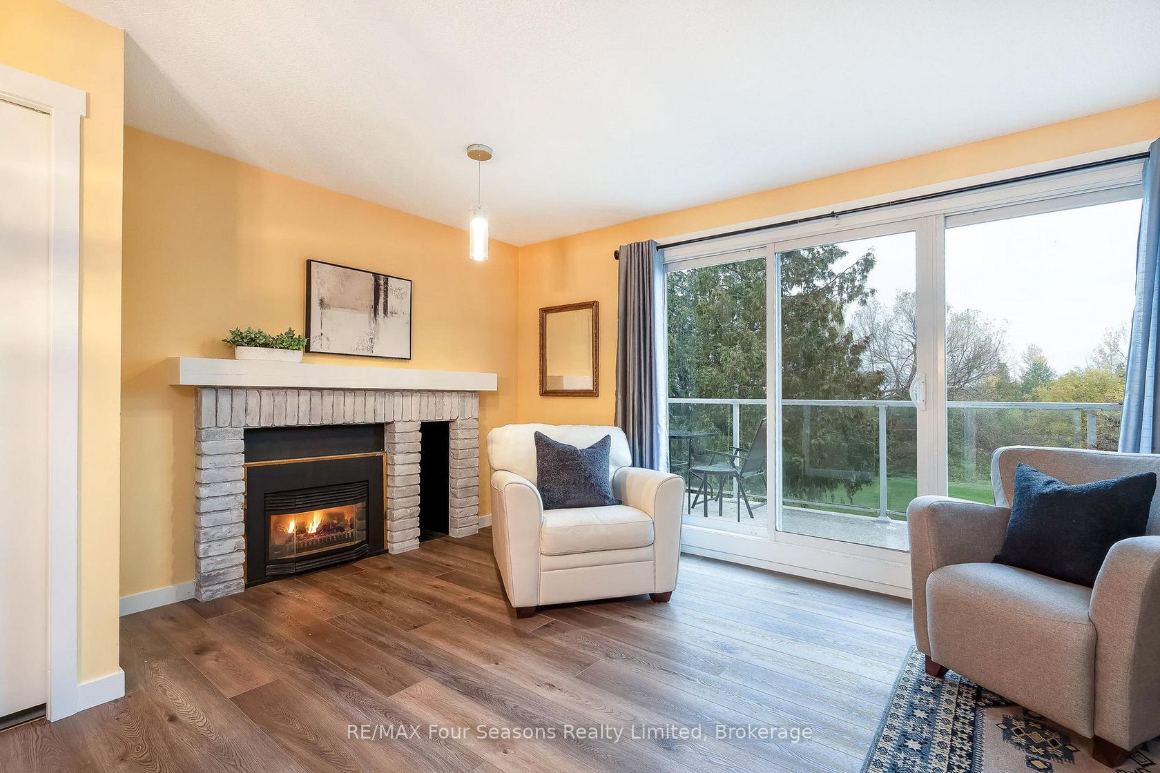 Georgian Bay Waterfront Corner/ End Unit Condo! Welcome to your dream waterfront retreat! This beautifully updated 3-bedroom, 2-bathroom condo offers breathtaking views of Georgian Bay with private beach access~ the perfect blend of comfort, style, and serenity. Step inside to a bright, open-concept living, dining, and kitchen area designed to capture natural light and showcase stunning waterfront vistas. Enjoy cozy evenings by the gas fireplace or step out onto one of two private balconies that open directly onto tranquil green space/ escarpment~ Stunning Sunrises and Sunsets ~ideal for peaceful relaxation or entertaining. The spacious, chic modern kitchen features~ luxury cabinetry, countertops, electric fireplace and modern finishes throughout. Major exterior upgrades in 2024 include new siding, roof, and insulation, ensuring long-term comfort and efficiency. Tucked away in a quiet corner of the complex, this unit offers exceptional privacy while being just minutes from historic downtown Collingwood and everything the region has to offer: Blue Mountain Village Championship golf courses, Scenic trails, Spas, Dining, Shopping, and Cultural Events. Embrace a four-season lifestyle on the shores of Southern Georgian Bay *Dedicated Bike/Kayak Storage. Condo fees include: Bell Fibe Better TV with Crave1.5 GB unlimited internet - ideal for remote work, streaming, and staying connected. Discover the magic of Georgian Bay living ~where every day feels like a getaway!