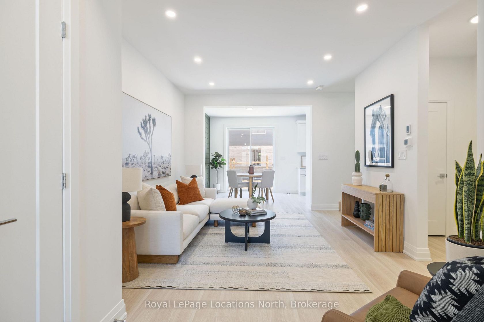 Step into this brand-new, never-lived-in townhouse by award-winning builder, Sunvale Homes, thoughtfully designed with organic textures and an emphasis on light, warmth, and natural materials. With its west-facing backyard, the home glows with golden-hour light, creating a serene backdrop for everyday living. The main floor combines functionality with style, offering an airy open layout, clean architectural lines, and natural wood accents. The kitchen is finished with quartz countertops, stainless steel appliances, and a soft neutral palette that feels both modern and grounded. The dining area with green shiplap wall, flows effortlessly into the spacious living room, creating the perfect space for gathering and entertaining. Upstairs, a custom staircase in warm white oak stain leads to a thoughtfully planned second level. The primary suite is a calming retreat, featuring a sunlit bedroom, walk-in closet, and spa-inspired ensuite with a double white oak vanity, quartz counters, and a glass-enclosed shower. Two additional bedrooms, a chic 4-piece bath, and convenient upper-level laundry complete the floor. With its organic-inspired aesthetic, abundant natural light, and elevated finishes, this home offers a fresh take on luxury living. Sod, fenced backyard, garden package and paved driveway included. Price does not include HST. Buyers who qualify under the government rebate program may be eligible for a full HST rebate. Purchasers must verify their eligibility directly with their own legal or financial advisors.
