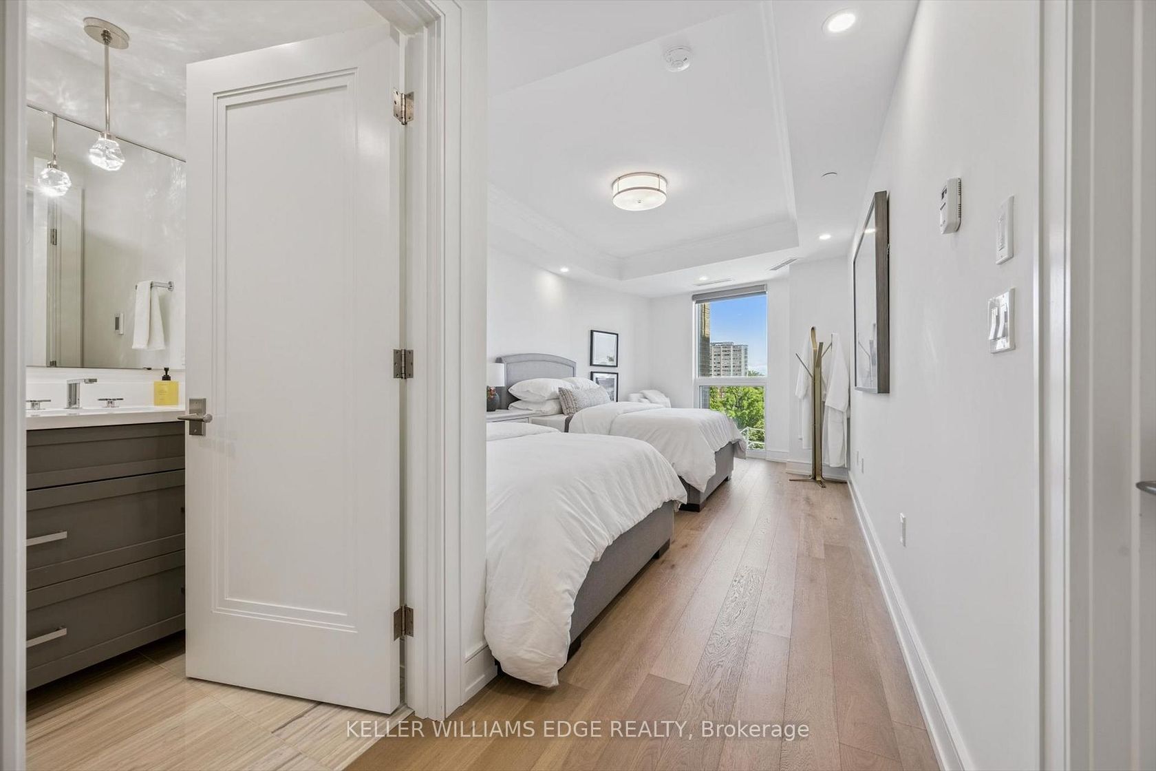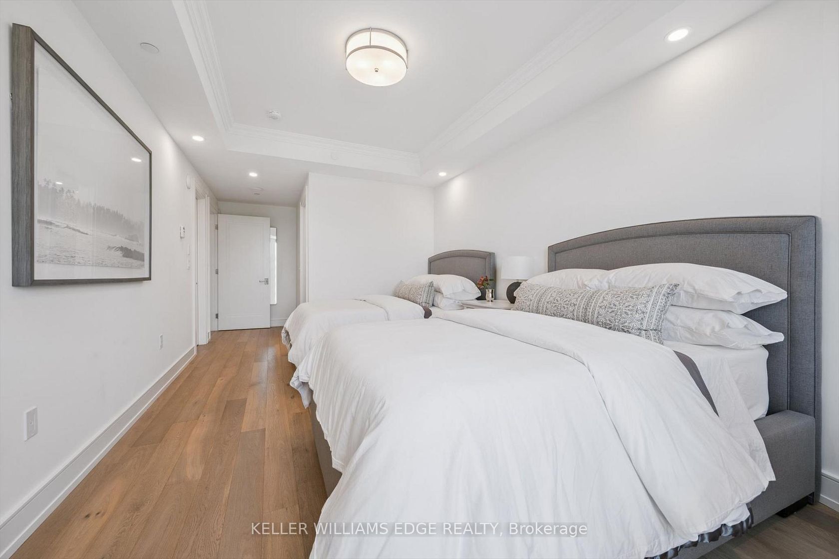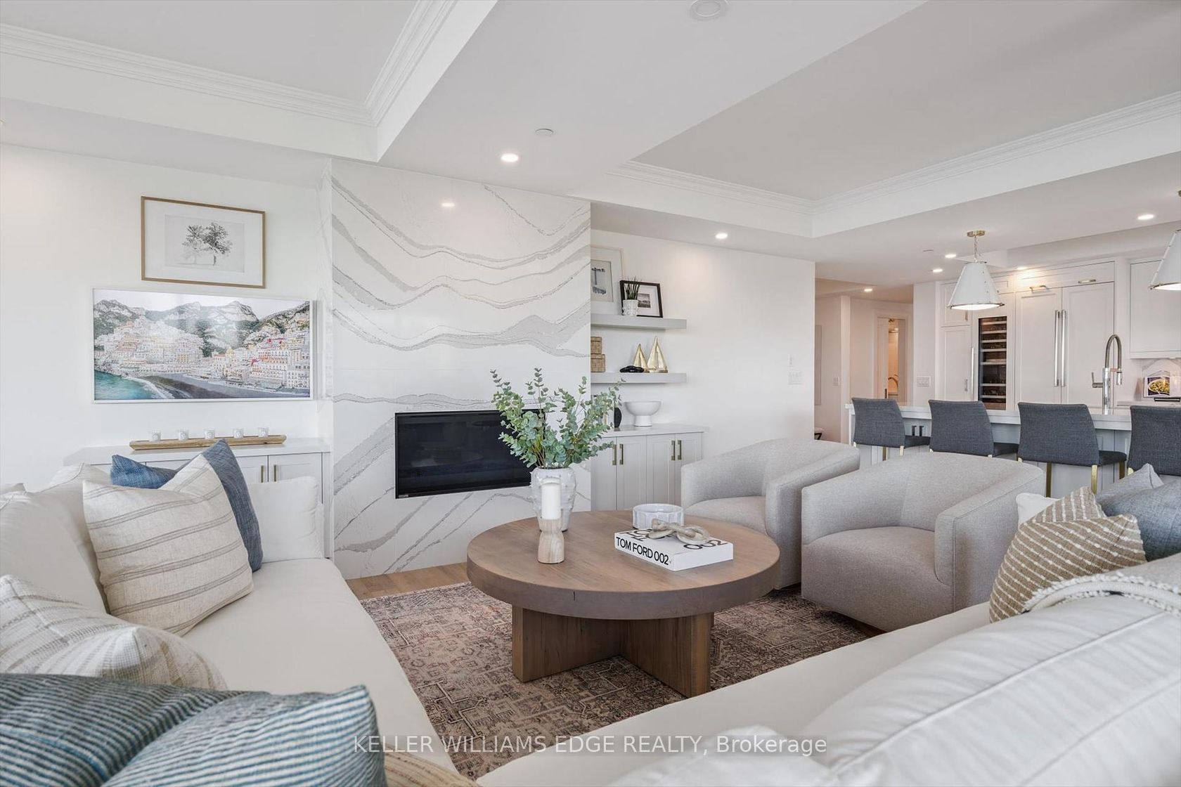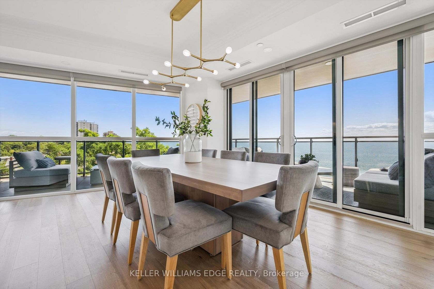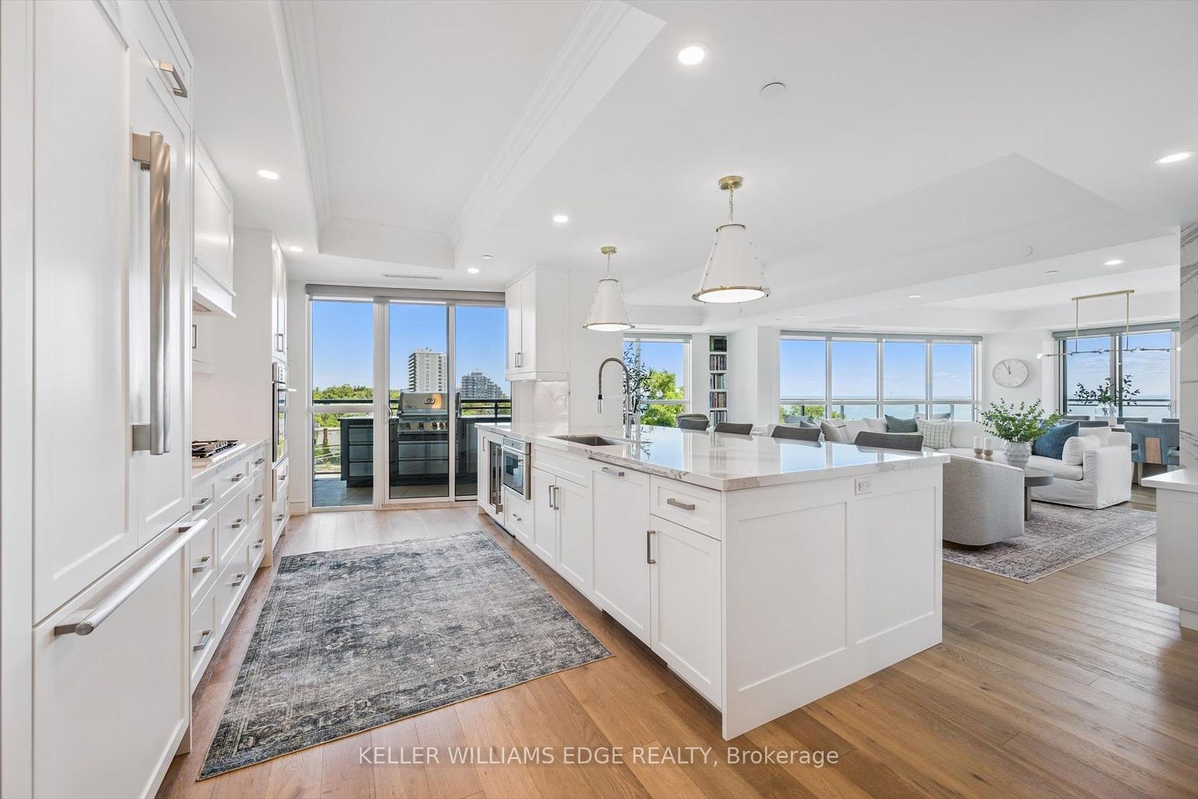 Welcome to Suite 508 at the Bridgewater Residences, where luxury meets lakeside tranquility at one of Burlingtons most prestigious waterfront addresses.This southeast corner suite has 2,200 sq ft of thoughtfully curated living space, complemented by 2 expansive balconies adding another 493 sq ft. Enjoy sweeping water views from every angle. Step inside to discover a beautifully appointed 2-bed+den home with 3 elegant baths, expertly designed with high-end finishes and upgrades throughout. Soaring floor-to-ceiling windows fill the space with natural light, drawing attention to the open-concept layout centred around a cozy gas fireplace. The chef-inspired kitchen is a true showstopper, boasting Thermador appliances, including wine/bev fridge, Cambria quartz island, and custom cabinetry, ideal for seamless entertaining. Retreat to the primary suite for a true sense of indulgence, where youll wake up to breathtaking panoramic views of Lake Ontario and step directly onto the balcony to start your day.Unwind in the spa-inspired ensuite featuring oversized glass shower, soaker tub and high-end finishes. The second bedroom includes its own ensuite, while the separate den offers flex space for work, guests, or a third bedroom. Full laundry room & stylish powder room complete this well-appointed suite.Savour the beauty of waterfront living, an exceptional setting for morning coffee, al fresco dining, or evening sunsets.As a resident of Bridgewater, youll enjoy access to exceptional amenities, including rooftop BBQ terrace, fitness centre, party room, billiards room & exclusive privileges at The Pearle Hotel & Spa with its own gym and luxury indoor pool. Suite includes two premium accessible parking spots next to elevator and 3 storage lockers. Just steps from the lakefront, Spencer Smith Park, Waterfront Trail, shops, restaurants, and downtown Burlingtons cultural scene. An incredible chance to enjoy waterfront living at its best!