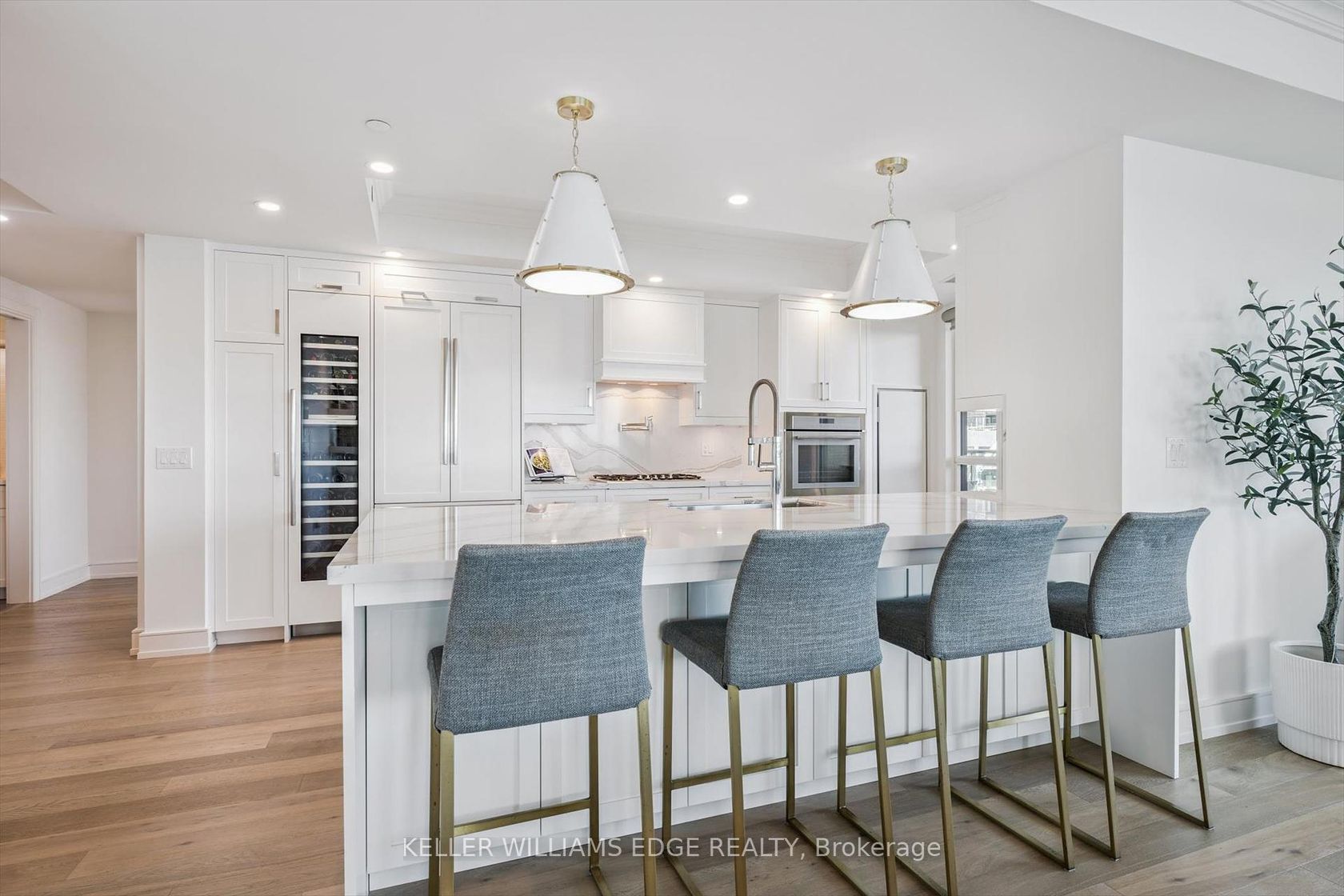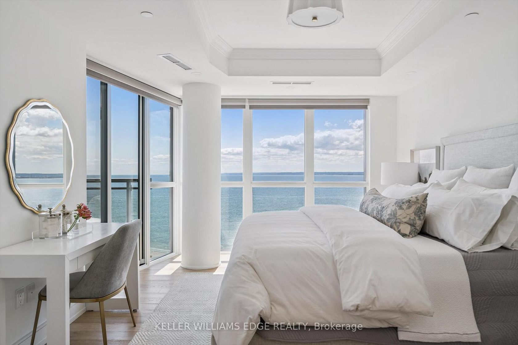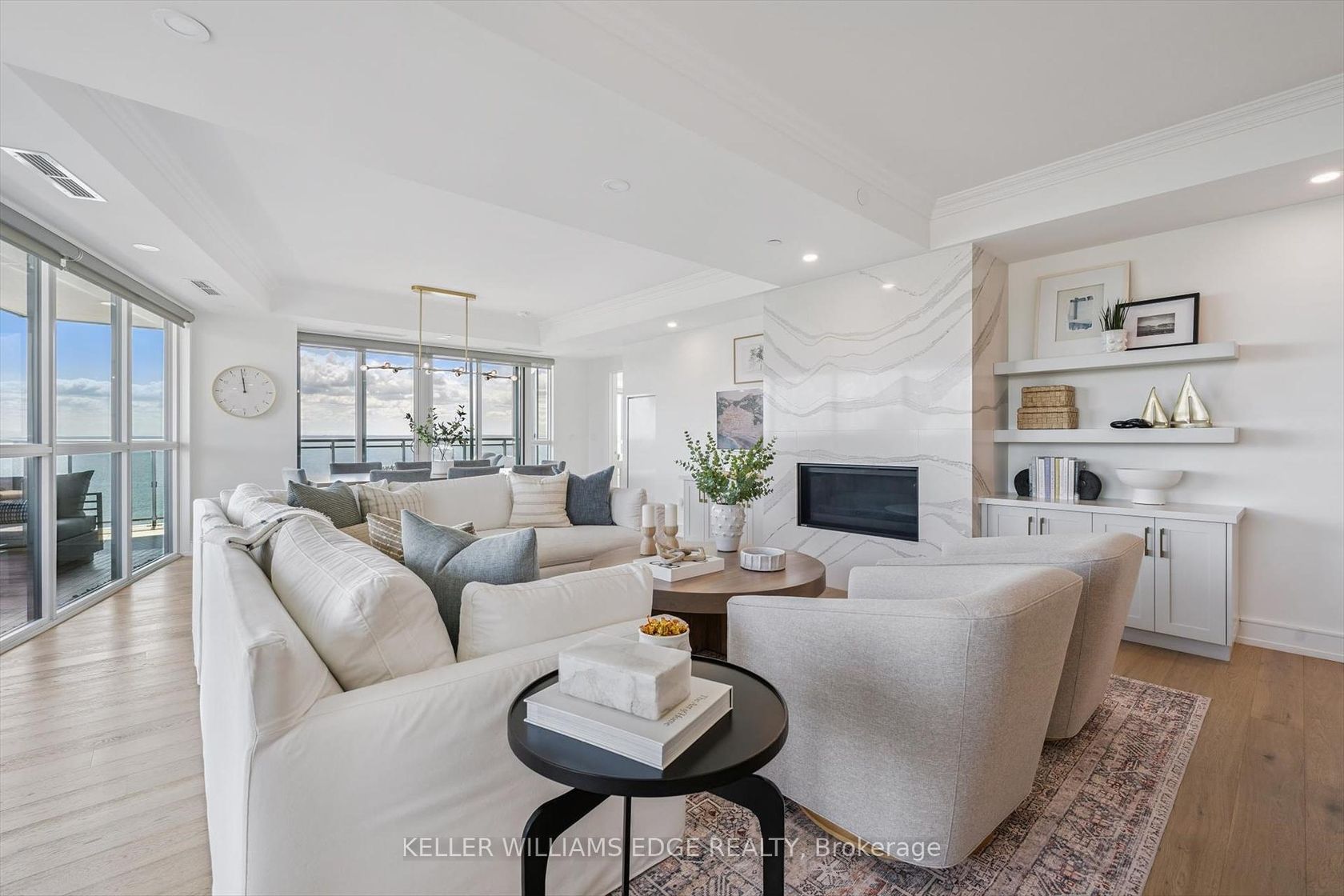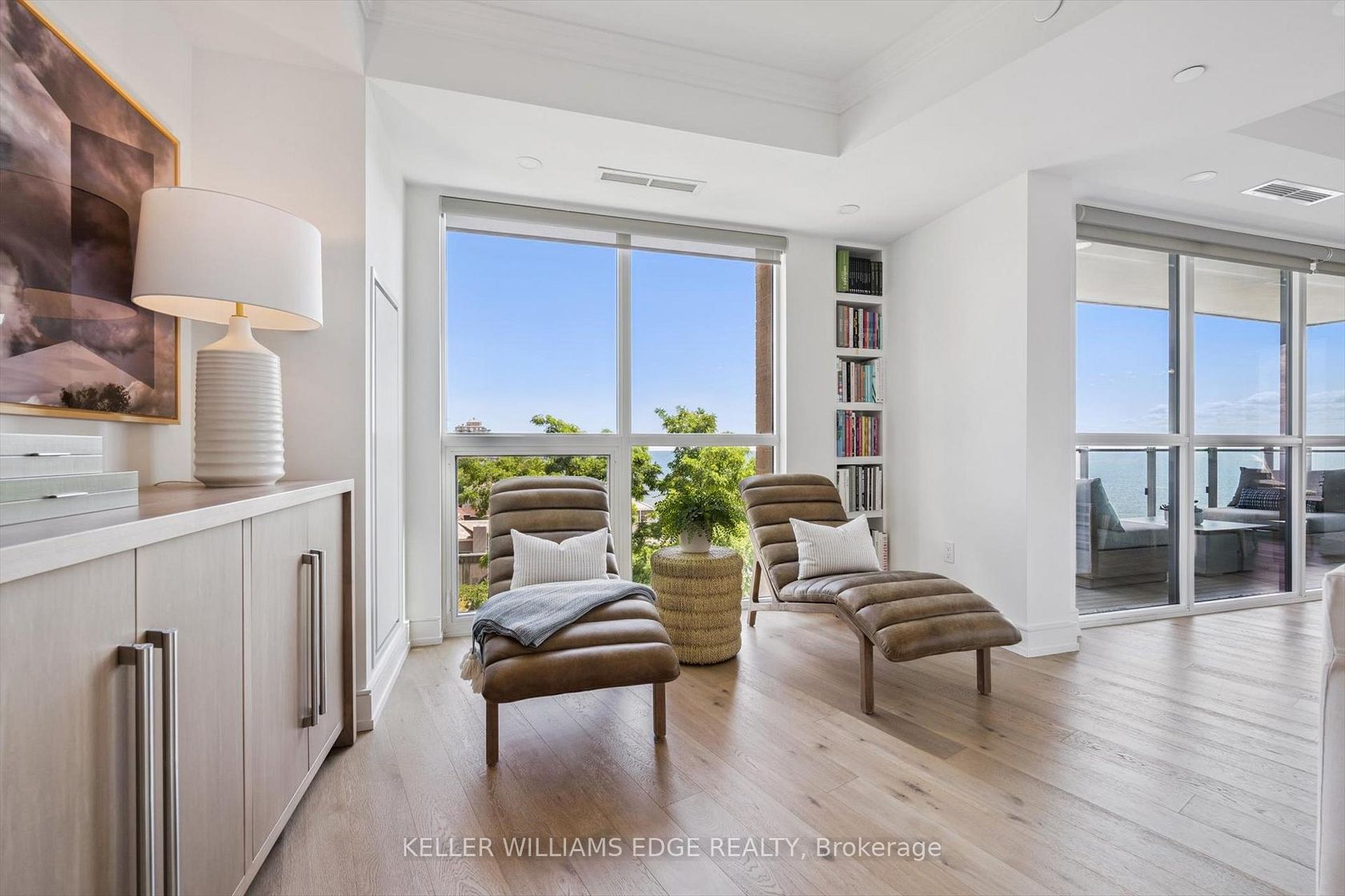 Welcome to Suite 508 at the Bridgewater Residences, where luxury meets lakeside tranquility at one of Burlingtons most prestigious waterfront addresses.This southeast corner suite has 2,200 sq ft of thoughtfully curated living space, complemented by 2 expansive balconies adding another 493 sq ft. Enjoy sweeping water views from every angle. Step inside to discover a beautifully appointed 2-bed+den home with 3 elegant baths, expertly designed with high-end finishes and upgrades throughout. Soaring floor-to-ceiling windows fill the space with natural light, drawing attention to the open-concept layout centred around a cozy gas fireplace. The chef-inspired kitchen is a true showstopper, boasting Thermador appliances, including wine/bev fridge, Cambria quartz island, and custom cabinetry, ideal for seamless entertaining. Retreat to the primary suite for a true sense of indulgence, where youll wake up to breathtaking panoramic views of Lake Ontario and step directly onto the balcony to start your day.Unwind in the spa-inspired ensuite featuring oversized glass shower, soaker tub and high-end finishes. The second bedroom includes its own ensuite, while the separate den offers flex space for work, guests, or a third bedroom. Full laundry room & stylish powder room complete this well-appointed suite.Savour the beauty of waterfront living, an exceptional setting for morning coffee, al fresco dining, or evening sunsets.As a resident of Bridgewater, youll enjoy access to exceptional amenities, including rooftop BBQ terrace, fitness centre, party room, billiards room & exclusive privileges at The Pearle Hotel & Spa with its own gym and luxury indoor pool. Suite includes two premium accessible parking spots next to elevator and 3 storage lockers. Just steps from the lakefront, Spencer Smith Park, Waterfront Trail, shops, restaurants, and downtown Burlingtons cultural scene. An incredible chance to enjoy waterfront living at its best!