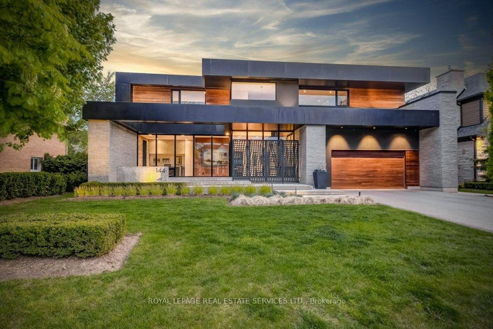 Welcome home to 144 Sparling Court, a showstopping custom residence nestled on a quiet cul-de-sac in Southwest Oakville. Inspired by mid-century modern architecture and the principles of Feng Shui, this thoughtfully designed home blends glass, steel, wood, and natural stone to create a modern masterpiece with over 6,300 sq. ft. of living space. Every inch of this home is curated for luxury and functionality. The dramatic front entry features a heated walkway, reflecting pond with waterfall, and a 9.5 industrial glass door. Inside, the two-storey foyer showcases a natural stone feature wall, hydronic heated floors, and floating staircases with floor-to-ceiling glass panels.The main level offers a sunken great room with a 5.5 ft gas fireplace and 16 ft Hearth, a custom kitchen with Dekton counters, premium built-in appliances, and an oversized island with waterfall edge. Two Massive sliding walls open completely to a South Beach-inspired backyard oasis with a saltwater pool, multiple decks, and two Tucci umbrellas-perfect for entertaining. Additional highlights include a Zebra Teak feature wall with hidden powder room and glass wine room, Control4 home automation, and a dedicated office with custom cabinetry and views of the reflecting pond with calming waterfall feature. The mudroom/paw spa features a pet shower, ample storage, and garage access.Upstairs, you'll find 4 spacious bedrooms with built-ins, including a luxurious primary suite with walk-in closet and spa-like ensuite. The lower level includes a theatre lounge, fitness room, wet bar, and ample storage.Located just a block from Appleby College and the lake, this home redefines modern living.
