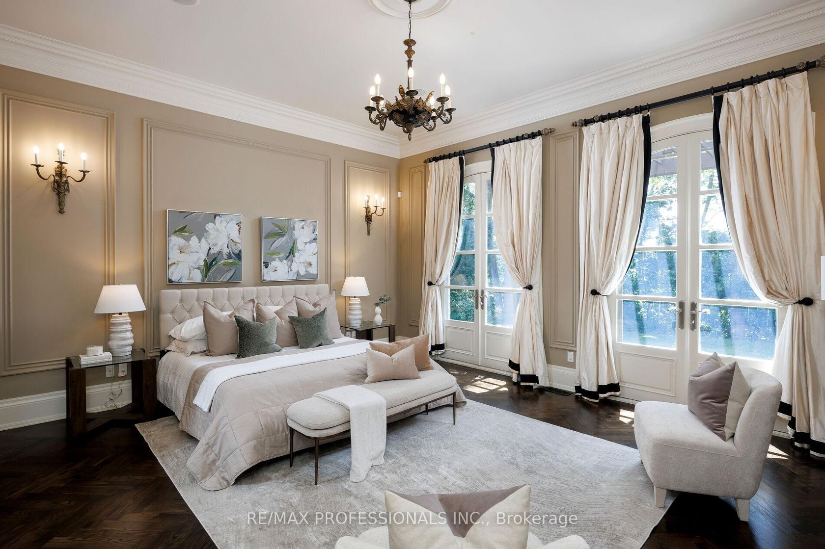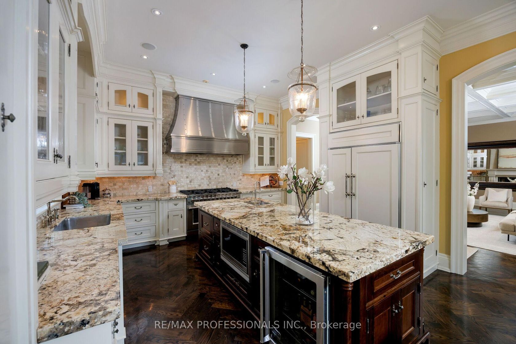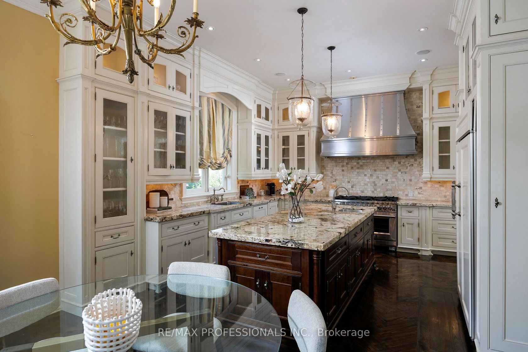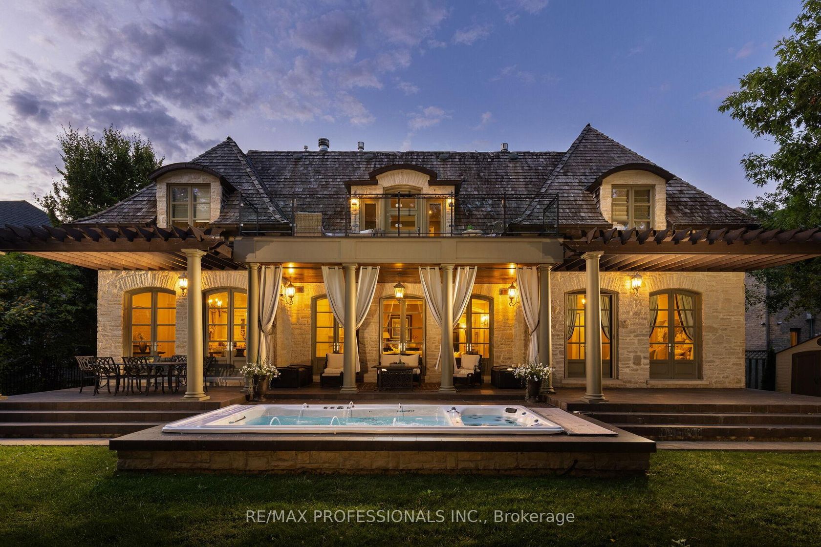 A truly no-expense-spared custom home on the Mimico Creek Ravine. Welcome to Fifty Six Ravenscrest Drive. With a commanding, solid stone exterior, atop a wide ravine lot, the curb appeal is undeniable. Enter an elegant interior - soaring double-height foyer, solid oak herringbone floors, and grand principal rooms. Stunning chef's gourmet kitchen. This home is designed with the future in mind, featuring two luxurious primary retreats, one on the main floor and one on the second level, along with well-appointed secondary bedrooms. The backyard is intimate & totally private, with ample ravine frontage, seven main-floor walkouts open to a gorgeous pillared terrace, and a Michael Phelps swim spa with a hot tub - perfect for low-maintenance, year-round use. Impressive French Country Chateau architecture. Priced well below replacement cost!