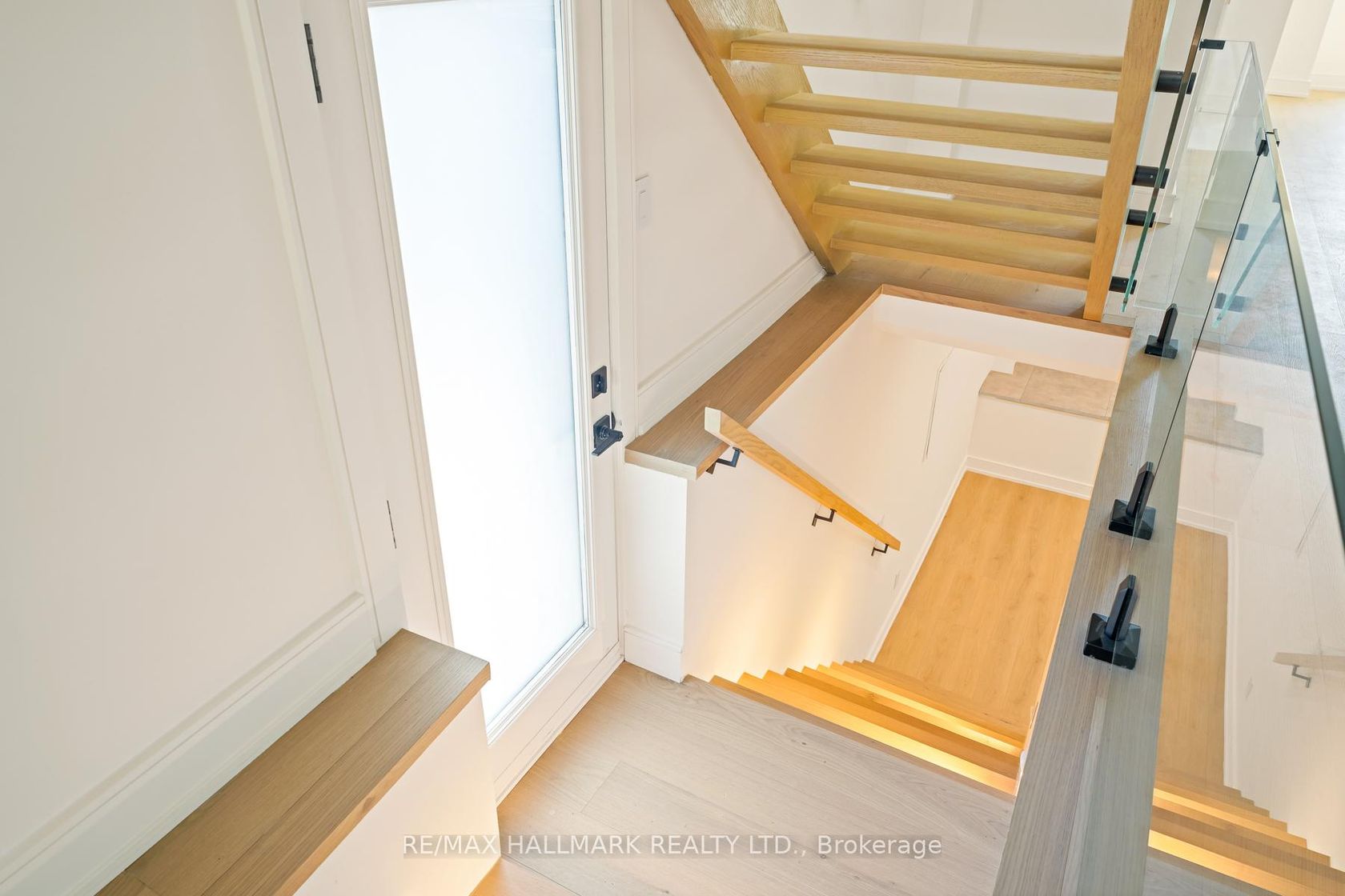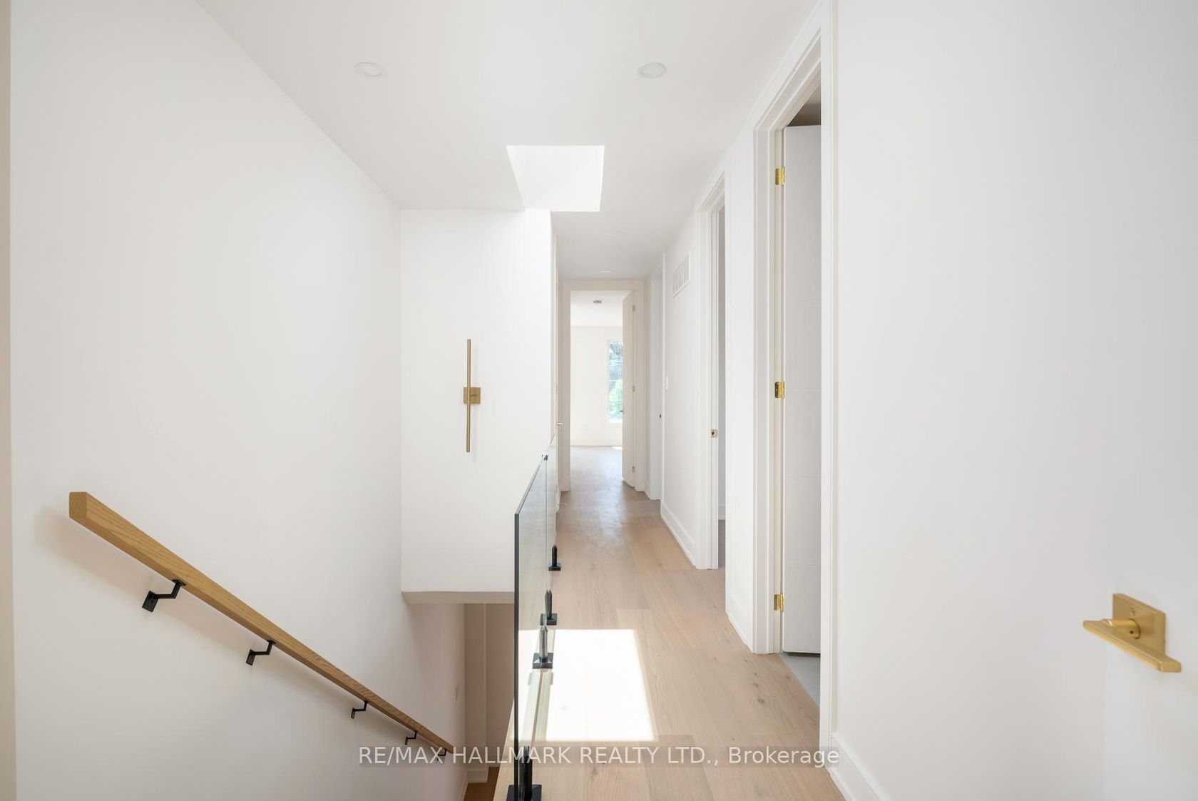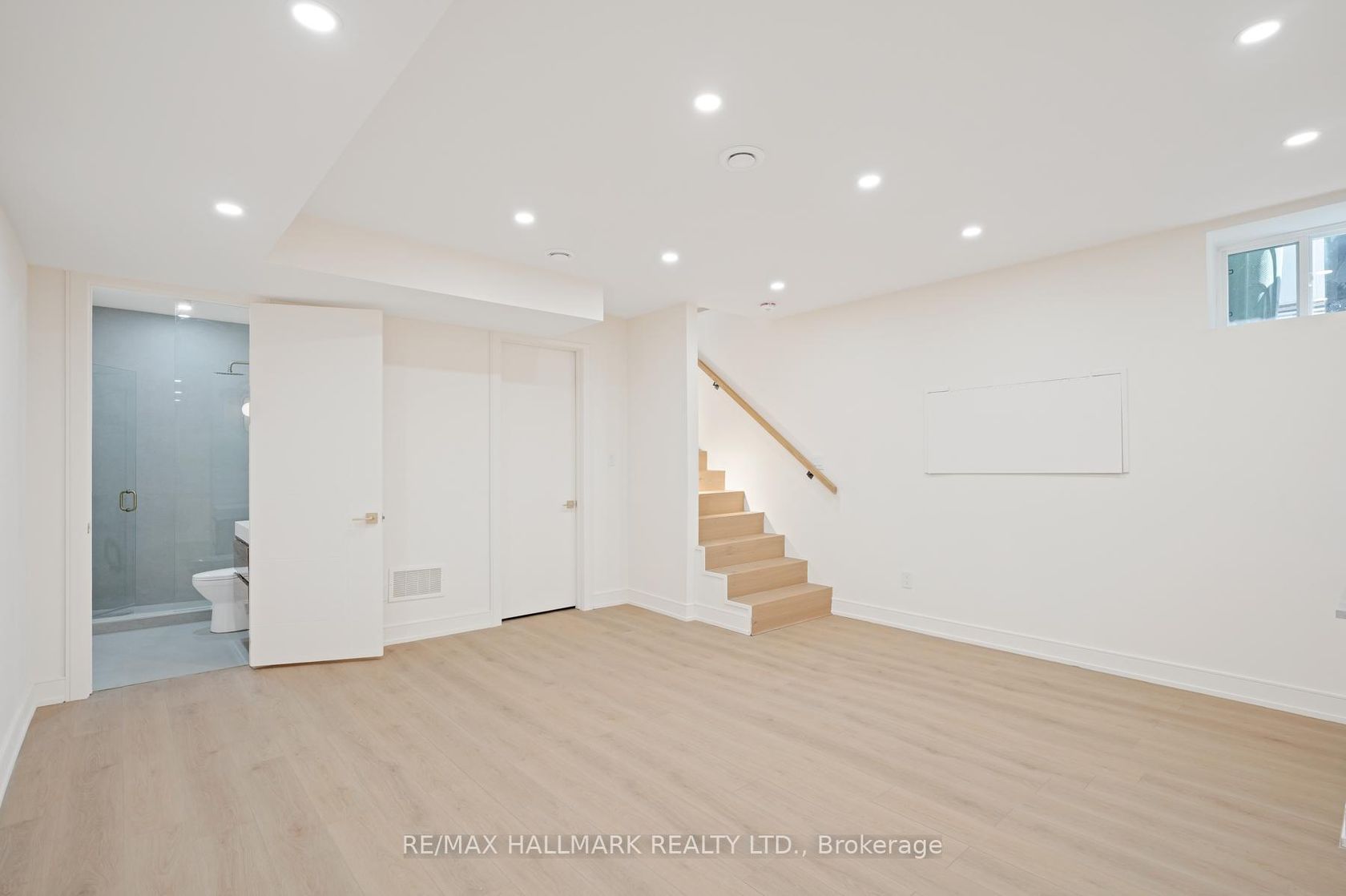 Stunning and extensively upgraded top-to-bottom, 2-storey home in an unbeatable location featuring 4 beds and 4.5 baths. This exquisite home offers luxurious modern living, combining sophisticated design with high-end finishes in every corner. Step into a welcoming foyer with a built-in closet and tile flooring. The open-concept main floor is filled with natural light, highlighted by a massive floor-to-ceiling window in the living room and gorgeous gold crystal lighting fixtures in both the living and dining areas. Rich engineering hardwood floors, pot lights, and a sleek glass staircase add contemporary elegance throughout. The kitchen features a centre island, stainless steel appliances, Quartz countertops and backsplash, plenty of cupboards, and under-cabinet lighting. The cozy family room boasts a Quartz wall with a built-in fireplace, custom shelving, and wall-to-wall glass doors that open to a private, fenced backyard with a deck. A convenient powder room completes the main level. Upstairs, open riser stairs and two skylights illuminate the hallway. This floor offers 4 bedrooms, 3 stylish bathrooms, and a dedicated laundry room that includes a stackable washer and dryer, a sink, tile flooring, and ample lighting. The primary bedroom is a true retreat with floor-to-ceiling sliding doors to a balcony with turf and glass railing, custom lighting, a walk-in closet, and a spa-like 5-piece ensuite. A second bedroom offers a private 3-piece ensuite, walk-in closet, and beautiful double windows. The high-ceiling basement features a spacious recreation room with pot lights and a 3-piece bathroom. A side entrance enhances accessibility and functionality. Equipped with exterior security cameras for peace of mind, this home blends style, space, and smart design. Close to schools, parks, short ride to the beach, GO Station, Public Transit, and Gardiner Express for easy commute.