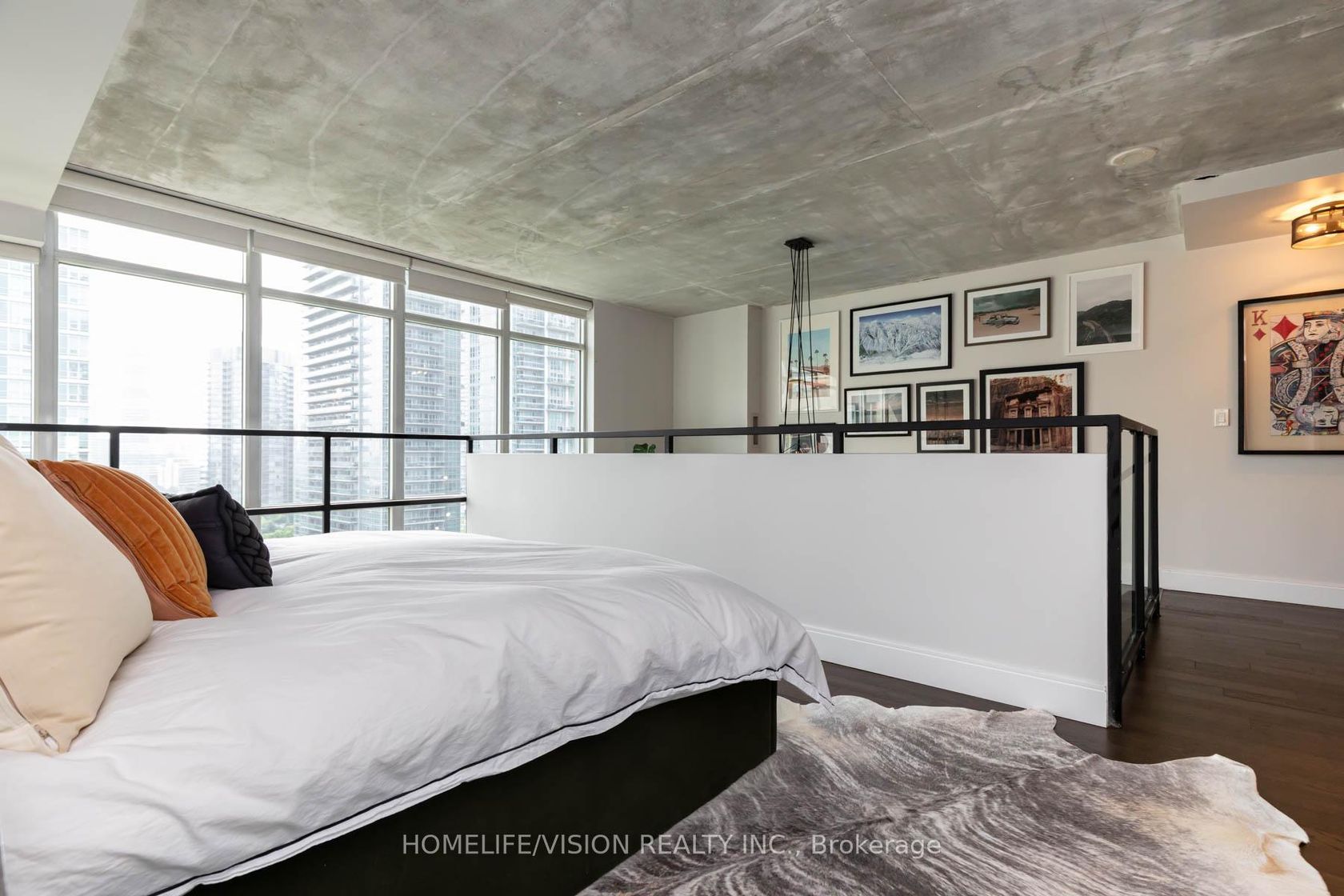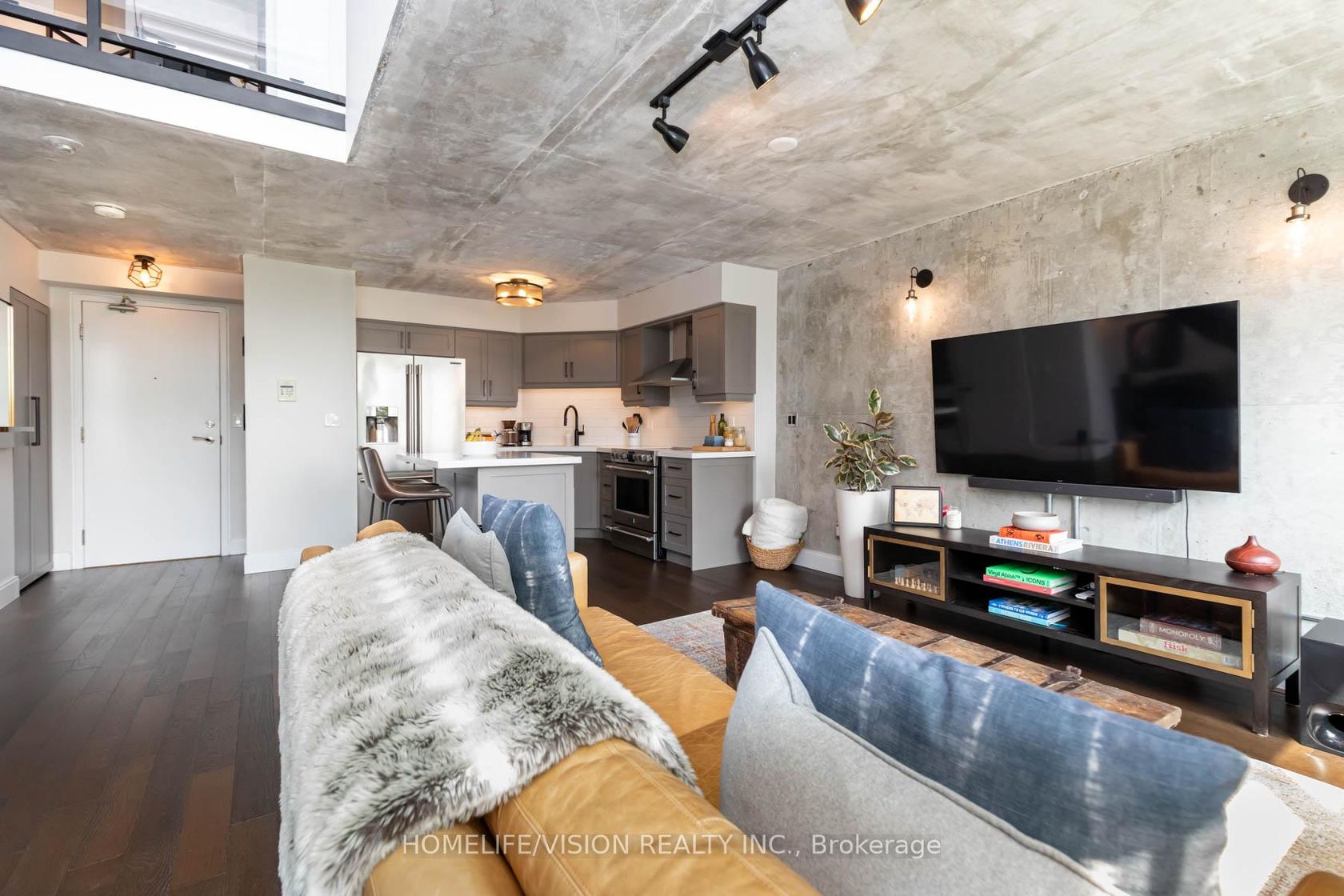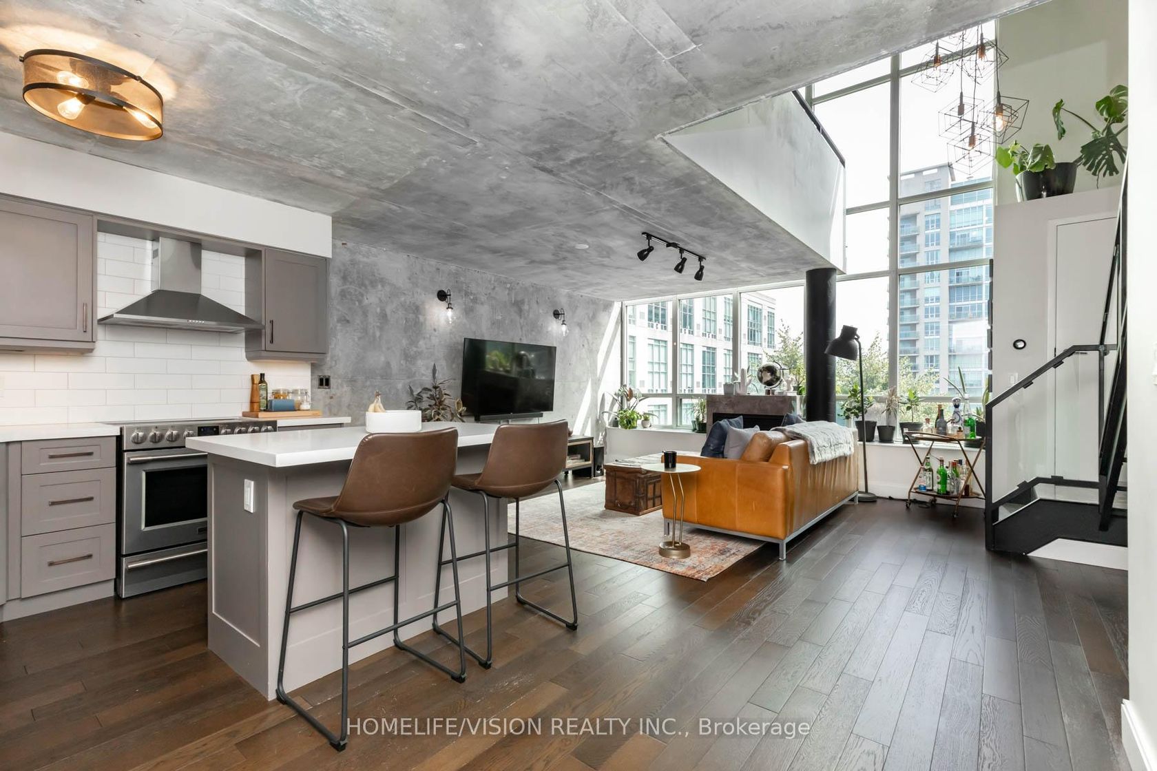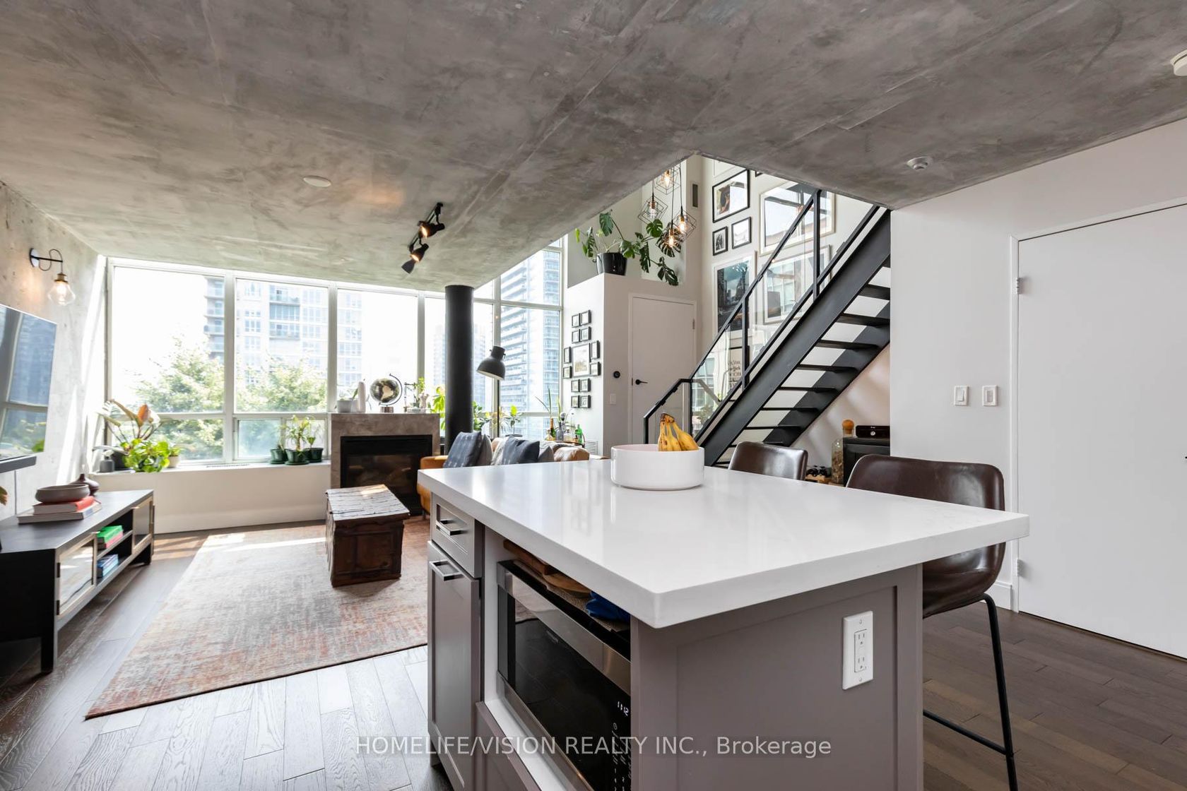 Welcome to 250 Manitoba St- Mystic Pointe! This completely renovated 2 level loft features high quality finishes and design. With approx. 950SF spread over two floors, soaring 17 foot exposed concrete ceilings from the main floor and gorgeous floor to ceiling windows allowing the loft to be flooded with natural light - this loft is truly spectacular and unique! This residence also features wide plank hardwood floors, powder room on main level, gas fireplace, modern kitchen with quartz counter tops and quartz kitchen island, custom roller blinds, spa like master ensuite(11' x 5'5') featuring an enclosed glass shower and a Turkish bath, gorgeous custom walk-in closet( 10' x 5') with custom organizers, motorized blinds, a large den perfect for an office, nursery or 2nd bedroom conversion, stylish designer light fixtures and wall sconces & Much More! Mystic Pointe building amenities include a gym, squash court, sauna, rooftop garden and a party room Located 15 Minutes to downtown, will make an easy commute into work or for a night on the town! Steps to the Lake, parks, transit/Go, trails, shops, cafes, grocery stores, Humber Bay Shores & much more! Parking and Locker Included!