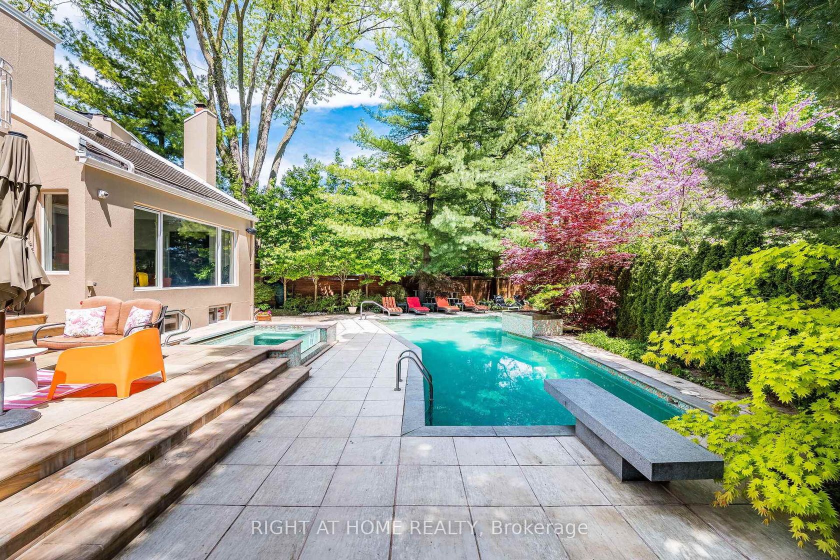 Discover This Hidden Gem Perfectly Situated In One Of The Most Central And Sought-After Areas Where Convenience Meets Tranquility. Tucked Away On A Quiet, Private Street Surrounded By Mature Trees, This Home Offers The Feeling Of Living In Your Own Private Park, Yet You Are Just Minutes From Everything. Enjoy The Best Of Both Worlds: Urban Convenience With Suburban Serenity.A Rare Opportunity To Own A Custom-Built Home That Seamlessly Blends Architectural Sophistication (Property Designed By The Famous Architect Rocco Maragna), Privacy, And Resort-Style Living. Nestled On An Ultra-Private, Professionally Landscaped Court Lot This 7,500 Sqf. Living Space Estate Offers An Unparalleled Lifestyle In One Of The Citys Most Sought-After Enclaves.Surrounded By Mature Trees And Lush Gardens, The Exterior Showcases Premium Stucco (2024), Upgraded Windows (2020), Roof Shingles (2024),An Extra-Long Drive Leads To A Spacious Attached Double Garage Featuring Epoxy Flooring.The Backyard Is A True Oasis, Redefining An Outdoor Oversized Luxury Pool, A Tranquil Waterfall And An Award-Winning Gib-San Hot Tub. Entertain Effortlessly On Elegant Stone Patios With Low-Maintenance Artificial Turf And Two Built-In Gas BBQs (Lynx) Enhancing The Outdoor Experience.Inside, The Interior Is Finished To The Highest Standard With Custom Hardwood Floors, Oversized Porcelain Tiles Imported From Europe, Walnut Refined Elegance Meets Modern Comfort Italian Doors, A Striking Glass-Panel Staircase, Ambient Lighting And A Fully Monitored Security System. Grand Living Areas And Spa-Inspired Bathrooms Offer Exceptional Comfort, While The Upper Level Hosts Four Luxurious Bedrooms (Double Master Suites), An Elevator Conveniently Connects All Three Levels Ensuring Accessibility For Years To Come.The Original Bedroom On The First Level Is Currently Being Used As The Main Office. It's Located Near Top-Rated Schools And Just Minutes From The Prestigious St. Georges Golf And Country Club.