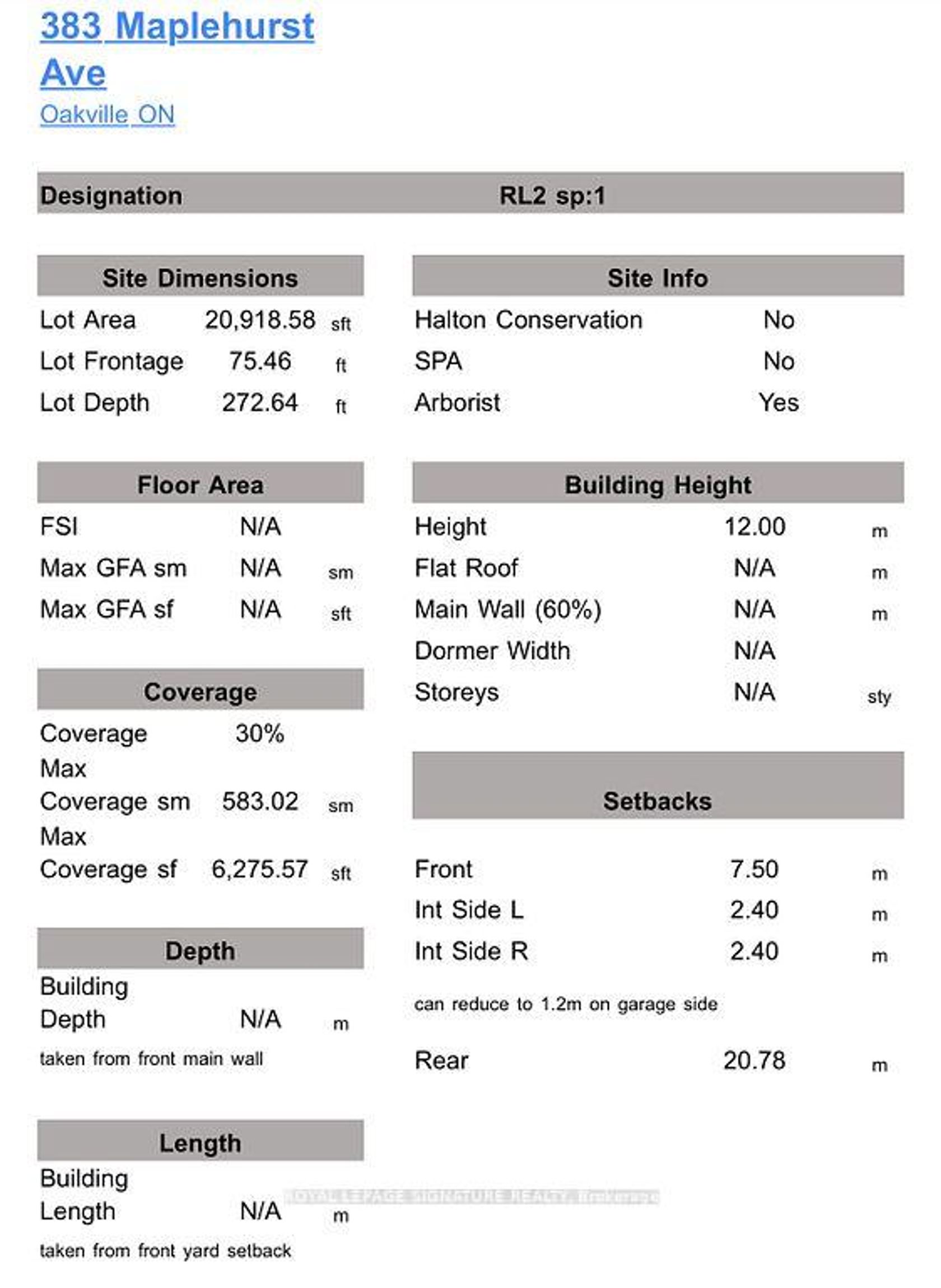 Welcome to 383 Maplehurst Avenue an exceptional opportunity in one of Oakville's most prestigious neighbourhoods. Set on a generous 75 x 272 ft lot, this property offers incredible potential for those looking to build a custom luxury home or undertake a full-scale renovation tailored to their vision. The property is zoned SP1, allowing for up to 3 storeys and a maximum height of 12 meters, with no restriction on above-grade square footage for a single-family home, providing exceptional flexibility to design a custom residence perfectly suited to this expansive lot. The depth and width of the property offer ample space for luxurious outdoor amenities such as a pool, cabana, or extensive landscaping, creating the ultimate private retreat. Surrounded by mature trees and luxury residences, 383 Maplehurst represents a truly unique canvas in a coveted pocket of South Oakville. Situated just steps from the lake, and minutes from downtown Oakville, the location offers both prestige and convenience. Top-ranked public and private schools, beautiful parks, and easy access to major highways further enhance the appeal of this property. Whether you are an end-user envisioning your forever home, a builder looking for a showpiece project, or an investor seeking premium land value, this is a rare opportunity not to be missed.
