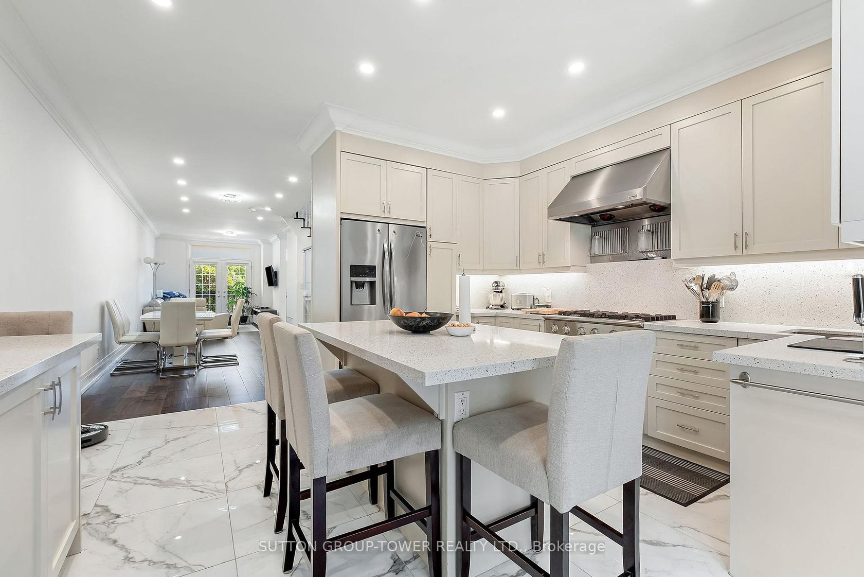 Fully renovated, worry-free townhouse in Scarlett Gables. This 4-bedroom, 3-bathroom home exudes luxury from top to bottom, with high-end finishes and an open, light-filled layout designed for modern living. Open-concept main floor with living and dining spaces flowing into a chefs dream kitchen.Custom kitchen equipped with top-of-the-line appliances, pot lighting throughout, and pristine finishes, Walkout to a private covered patio with a BBQ oasis perfect for outdoor entertaining. Primary bedroom with built-in closets and a luxurious 6-piece ensuite, including heated floors. Second floor laundry for convenience, plus a versatile office that can be converted to a bedroom. Bright third floor featuring two spacious bedrooms with walk-in closets and a fully renovated bathroom; skylight adds natural light. Lower level recreation room with gas fireplace, abundant storage, and direct access to two private car garages. Worry-free living with extensive renovations and luxury touches throughout, Lifestyle and location: No grass cutting or exterior maintenance to worry about. Thoughtful finishes, modern fixtures, and a cohesive design palette, Ample storage, functional spaces, and flexible rooms to fit your needs. This townhouse offers turnkey luxury, comfort, and convenience in a sought-after community with top ranked elementary and secondary schools. Ideally positioned with seamless steps to the future LRT and a quick, convenient commute to city and highway access, this property offers unmatched connectivity. Near four major highways 427, 401, 27, and QEW/Gardiner your daily travels will be effortless. The Humber River Trail is Across The Street, and the stunning James Gardens are just steps away, providing endless opportunities for outdoor enjoyment and serene weekend strolls. This is more than a home; it's a lifestyle where easy commutes, scenic beauty, and modern accessibility come together in perfect harmony. You'll love where you live.