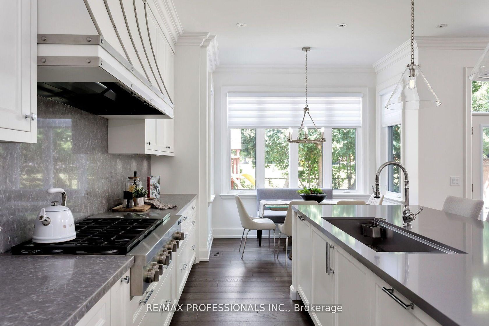 An unparalleled blend of luxury & design in one of Etobicoke's most desirable, family-friendly neighbourhoods. Built in 2019 by award winning Kingsway Custom Homes and designed by highly sought after Justine Soler this residence exhibits quality & taste from the moment you step through the door. Large windows throughout fill the home with plenty of natural light. The custom Cameo kitchen is an entertainer's dream featuring a six burner gas range with custom deigned hood, integrated Jenn-Air and Miele appliances, servery with both beverage and wine fridges & walk-in pantry. The kitchen is elegantly combined with family room warmed by a gas fireplace, a bright breakfast nook and walkout to the backyard. Upstairs, the principal bedroom features vaulted ceiling, a walk-through closet to a spa-like ensuite featuring a deep soaker tub, walk-in shower, water closet, dual vanities, and heated floors. Additional bedrooms share a Jack & Jill or have a dedicated ensuite and custom closet built-ins. Second floor laundry for added convenience. The versatile basement expands the living area, providing a flexible and comfortable family sanctuary with three piece bathroom, kitchen and second laundry. Two separate rooms perfect for nanny suite, home gym or office. Located within the highly coveted Wedgewood School District. Close to parks, shops, and plenty of amenities. Easy access to downtown via transit or highway. A very special home from top to bottom.