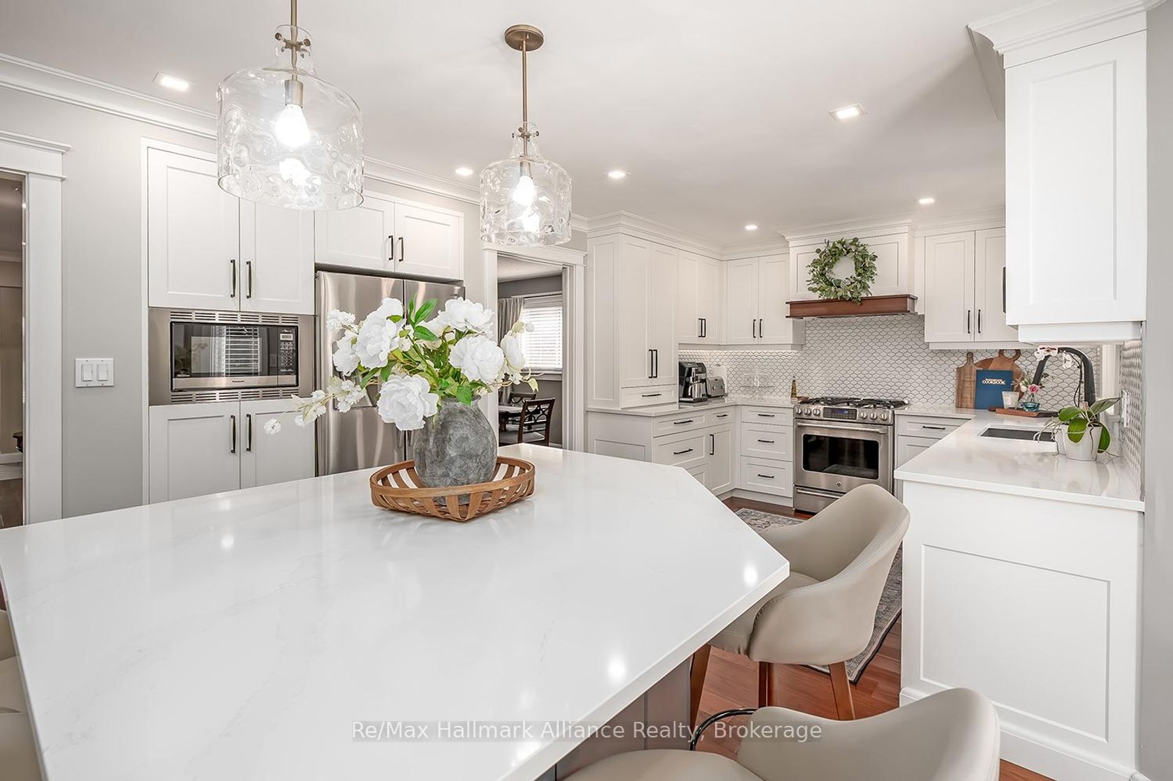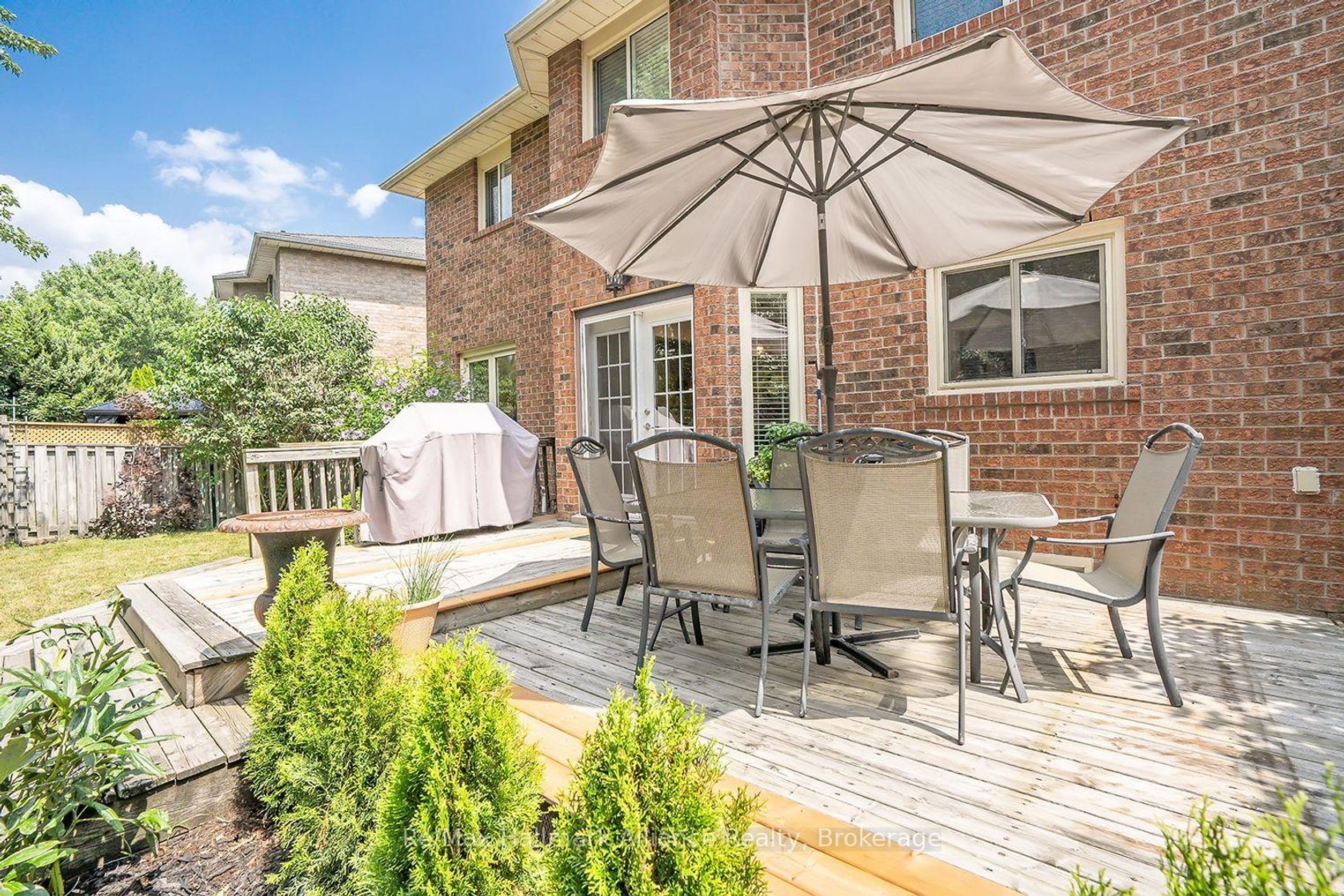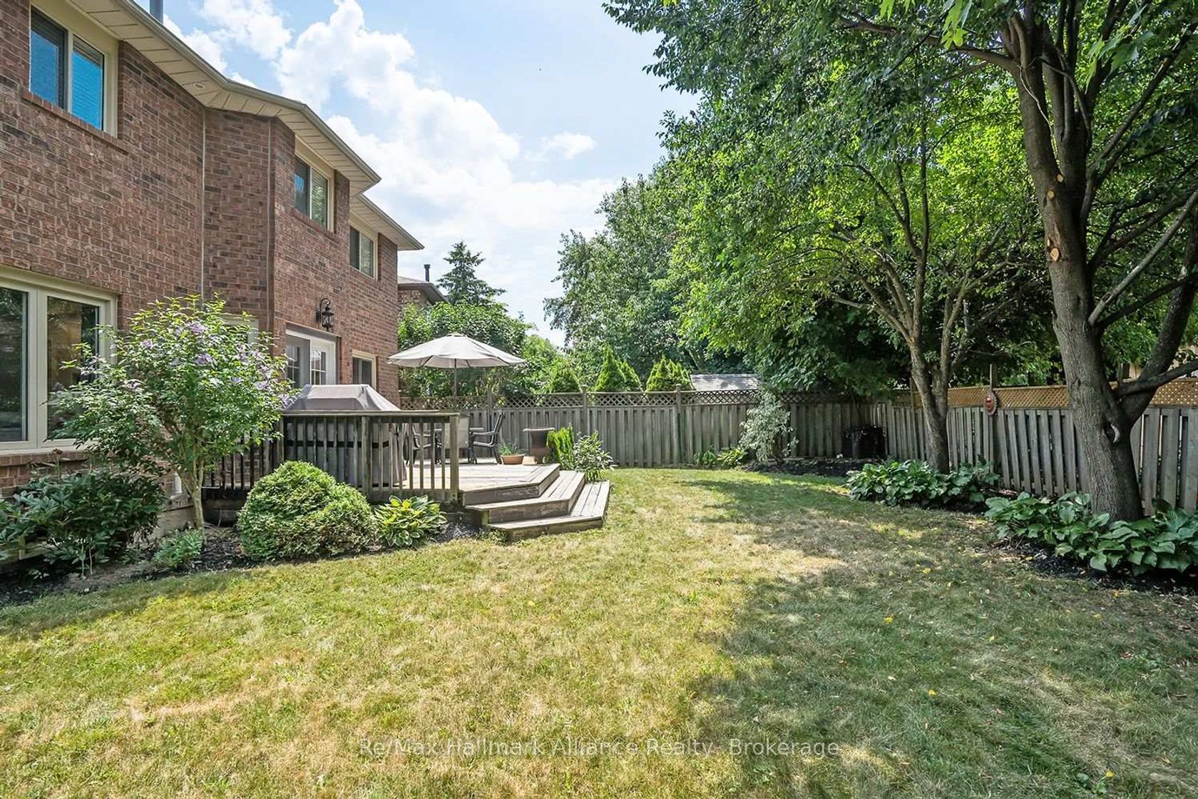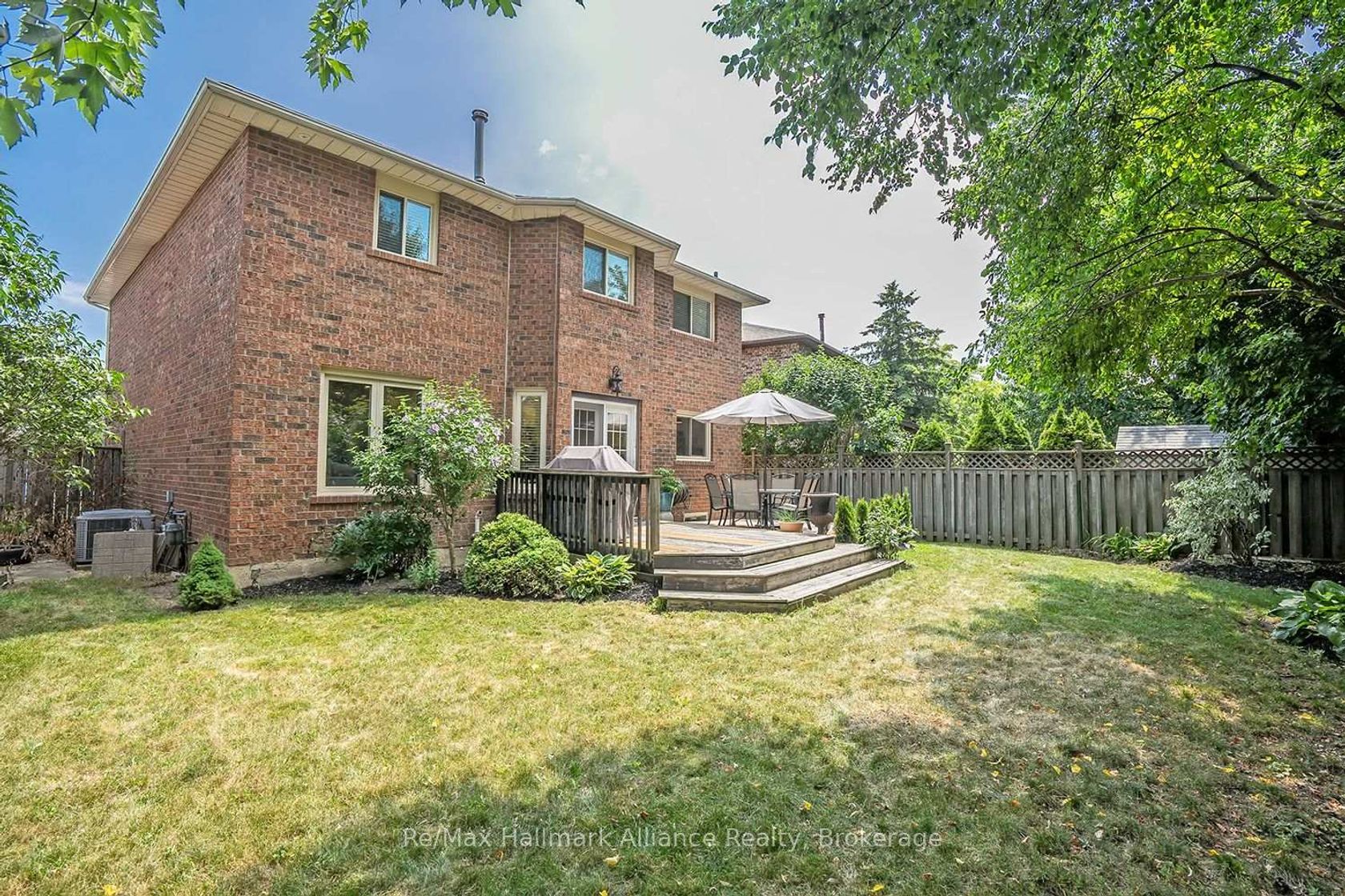 Tucked away on a quiet cul-de-sac in a coveted French Immersion school zone, this beautifully maintained 4-bedroom, 2.5-bath home offers 2,539 sq ft of above-grade living space and exudes pride of ownership both inside and out. Surrounded by mature trees and lush gardens, the private setting offers a peaceful retreat just minutes from everyday amenities. Inside, the carpet-free layout features rich hardwood floors and a striking circular staircase with wrought iron pickets, all bathed in natural light from a power-vented skylight with rain sensor above. The updated eat-in kitchen is a true show stopper quartz counters, undermount cabinet lighting, coffee station, stainless steel built-in appliances, and a large breakfast island with an abundance of storage. French doors lead to a formal dining room, ideal for entertaining, while the open-concept family room includes pot lights and a cozy wood-burning fireplace. A flexible main floor space can be used as a formal living room or home office. The main floor laundry room includes a stainless steel sink and inside access to the garage. Upstairs, the spacious primary bedroom features a 5-piece ensuite with a step-up soaker tub and separate shower. Three additional bedrooms are filled with natural light and share an updated 3-piece bathroom with a large walk-in shower. Step outside to a large, fenced backyard oasis complete with a wood deck, manicured gardens, and mature trees that provide exceptional privacy perfect for relaxing or entertaining. A rare opportunity to own a warm, inviting home in an ideal family friendly location walking distance to Lisgar Go train Station. The basement may be unfinished but the potential of a basement apartment is there, creating additional income.