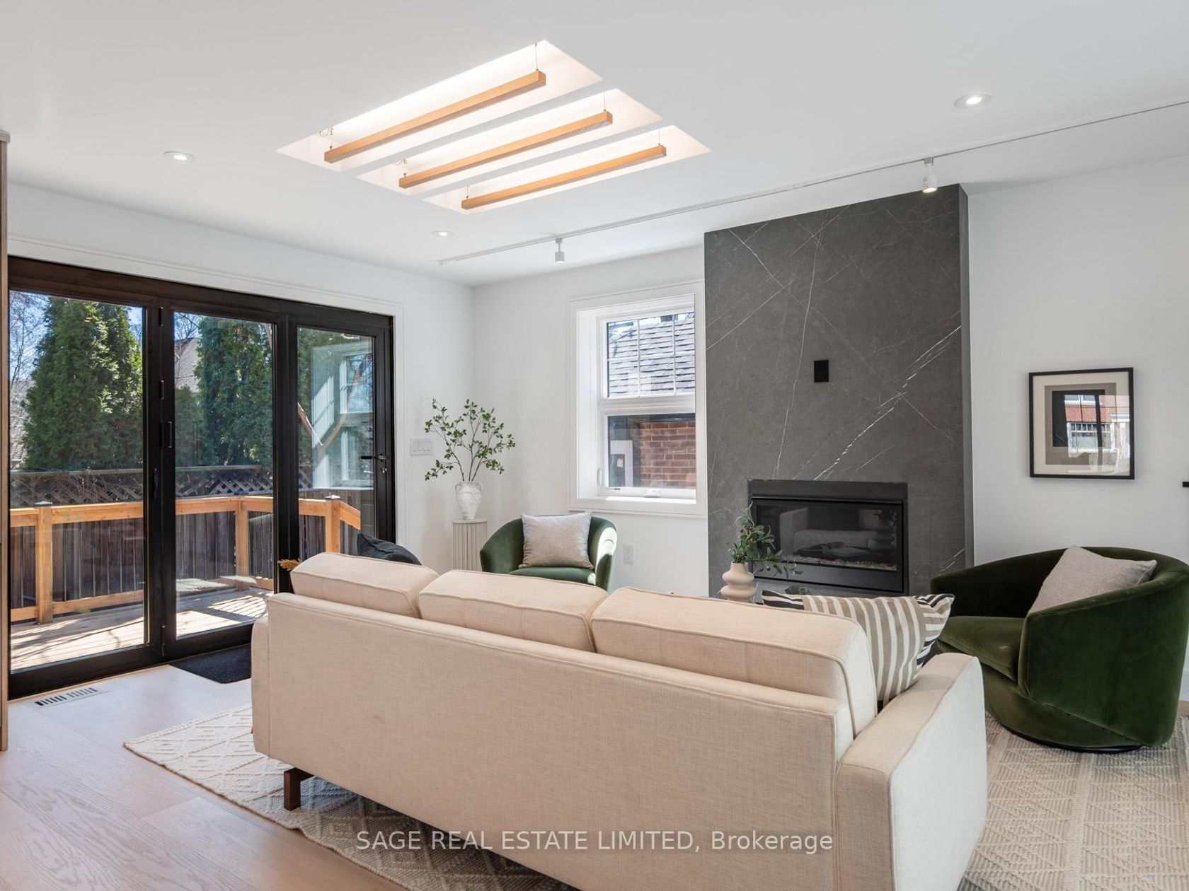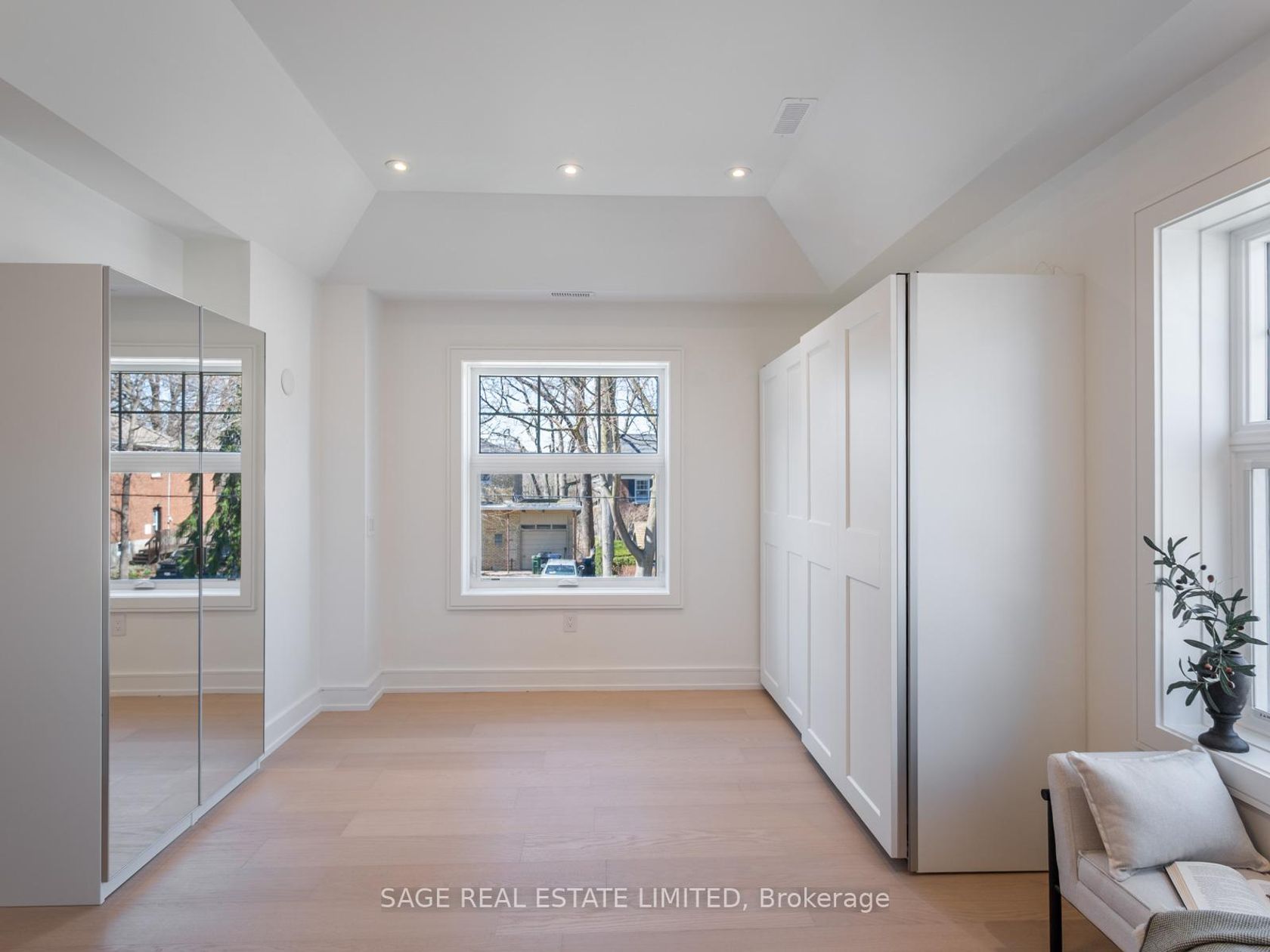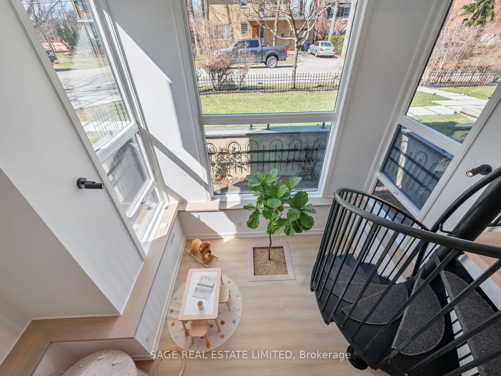 Situated on a tree-lined street near Mimico Creek, this custom residence in prestigious Sunnylea was designed and built by an architect for his own family. With a newly completed major renovation, the home offers over 4,300 sq. ft. of refined living space across 4+1 bedrooms and 5 bathrooms, combining architectural sophistication with advanced energy performance.Two zoned, independent Energy Star-rated HVAC systemsserving bedrooms and living areaswork alongside foam insulation, an airtight envelope, and smart thermostats to optimize comfort and reduce costs. All systems are new, including LED electrical, German plumbing, and a low-maintenance tankless water heater. The home is also prewired for a sauna. Bosch WiFi-enabled appliances, automated main-floor blinds, and a fully integrated irrigation and landscape lighting system complete the smart home features.The chefs kitchen showcases Spanish Cosentino quartz and custom millwork. A main-floor bedroom offers barrier-free accessibility and can flex as a private office. The primary suite features a 7-piece ensuite with heated floors, smart bidet, and rainfall + waterjet shower. Heated flooring continues into the family room. Dual laundry rooms on the second floor and lower level support multi-generational living.A custom spiral stair leads to a finished basement with nanny/in-law suite, indoor greenhouse, entertainment area, and a live tree feature. Outdoor living includes a 240 sq. ft. deck and 130 sq. ft. balcony. The garage includes new insulated doors/windows, 240V EV charging, and parking for 1 vehicle, with space for 2 more on the front parking pad.Built with brick and heavy-gauge aluminum siding for low maintenance. Zoned for Sunnylea Junior School and only a 10-min walk to Royal York subway and Bloor St.