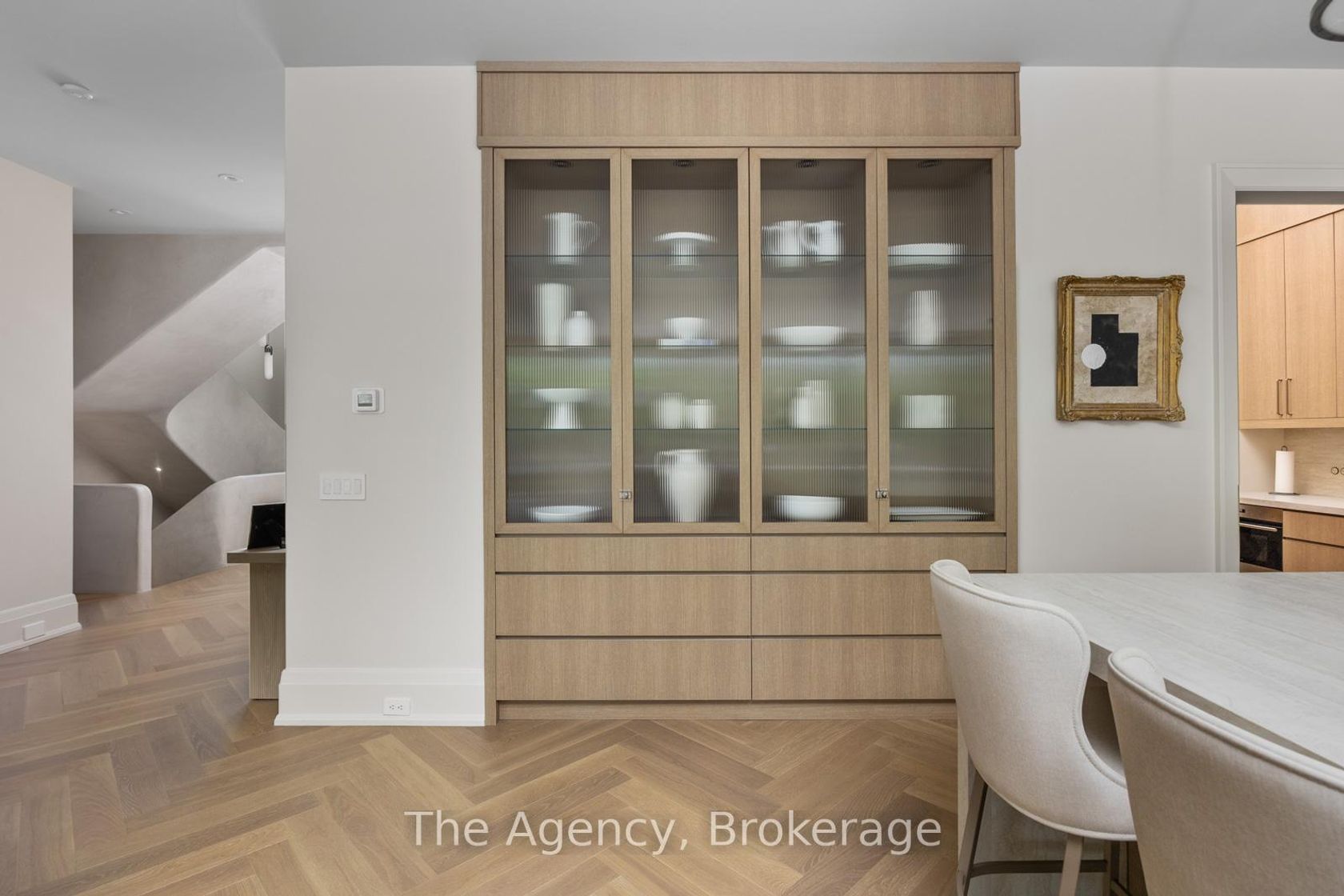 Welcome to 304 Pomona Avenue, a truly magnificent newly built home in Burlingtons highly coveted Roseland community. Step inside and youre greeted by an incredible hand-carved plaster staircase rising through all three levels thats perfectly paired with rift-cut white oak herringbone floors that set an elevated tone. A formal dining room makes a statement with decorative ceiling beams, a glass wine display, and a marble wet bar. The private library draws you in, finished with oak panelled walls and a reading nook with floor-to-ceiling corner windows that flood the room with natural light. The living room completes the main levels gathering spaces with its plaster fireplace, oak shelving with integrated lighting, and full in-ceiling speakers. At the heart of the home, the kitchen offers a large custom plaster hood, oversized waterfall island, porcelain counters, and top-tier appliances including a 60 Wolf double oven, Sub-Zero fridge and freezer, and Bosch dishwasher. Pantry storage with reeded glass cabinetry and a walk-through servery extends the workspace. Just beyond, the breakfast area opens to a beautiful and serene covered terrace with a built-in BBQ, outdoor fridge, fireplace, and cedar-lined ceilingoverlooking the saltwater pool and landscaped gardens. Upstairs, four bedrooms each include private ensuites. The primary suite features a spacious walk-in closet and a spa-like bath with dual vanities, soaker tub, heated floors, and oversized shower. A full laundry room with custom cabinetry completes this level. The lower level expands the living space with a second kitchen, home theatre, gym, fifth bedroom, full bath, and radiant heated floors. Outside, stone patios, mature landscaping, irrigation, and a hydrangea wall create a welcoming backdrop. With 4+1 bedrooms, 7 bathrooms, and over 6,000 sq. ft. of living space, this Roseland residence combines thoughtful design with everyday comfort. Move in and enjoy!