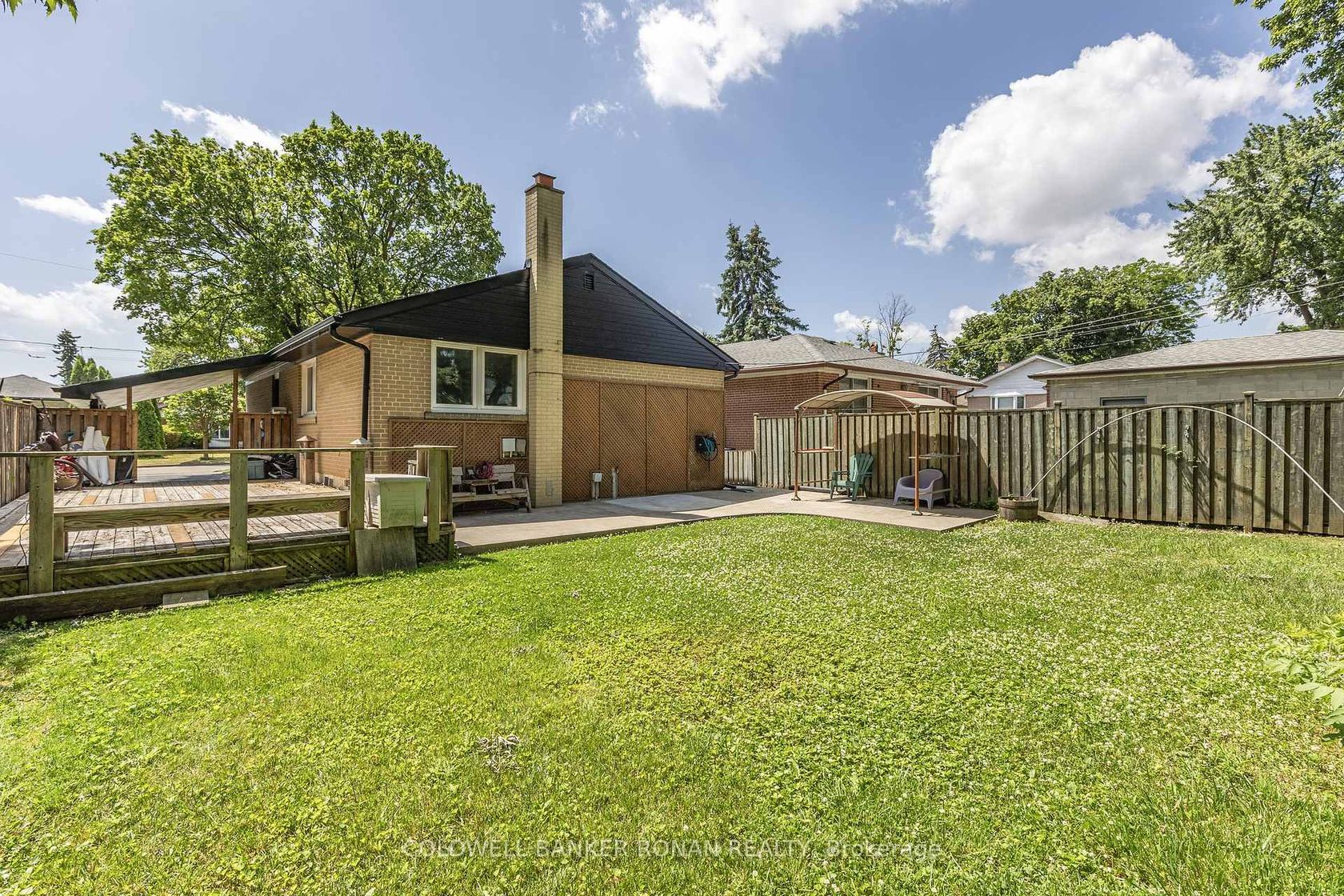 Stylishly Renovated Bungalow in Prime Etobicoke Location. Welcome to this beautifully updated bungalow located on a quiet, family-friendly crescent in one of Etobicoke most sought-after neighbourhoods. Enjoy the best of both worlds peaceful living with no through traffic, yet just steps from public transit and minutes to major highways, big box stores, and Pearson Airport (YYZ).The main level features gleaming hardwood floors and an open-concept living and dining area filled with natural light from large windows. The heart of the home is a show-stopping chefs kitchen, complete with a center island, cooktop stove, wine fridge, ample cabinetry, pot lights, and a walkout to the side yard perfect for entertaining. There are three spacious bedrooms on the main floor, two of which feature brand new broadloom. The renovated 4-piece bathroom offers a spa-like retreat with a separate tub and glass-enclosed shower. Downstairs, the fully finished lower level offers two additional bedrooms, including one with fresh paint, new carpet, and its own 3-piece ensuite ideal for guests or in-laws. Plus, there's a dedicated kids space currently set up as a hockey shooting room, easily convertible back to a rec room. A fireplace rough-in adds even more potential. Step outside to a private backyard oasis featuring a large deck, concrete patio, and garden shed. Bonus: hot tub wiring is already installed just bring your spa! This home offers the perfect blend of modern updates, thoughtful design, and unbeatable location. MOST RECENT UPGRADES: New roof, new siding, exterior stairs at side entrance, refinished driveway, new washing machine & dishwasher, new silgranite kitchen sink, Broadloom (2 upper level bedrooms, blue bedroom downstairs), repaired backyard deck, new concrete walkway at side of house, new hot water tank (rental) EXTRAS: Wired for outdoor hot tub, fireplace rough-in (basement), short walk to public transit. Close to schools, Costco, Downtown.