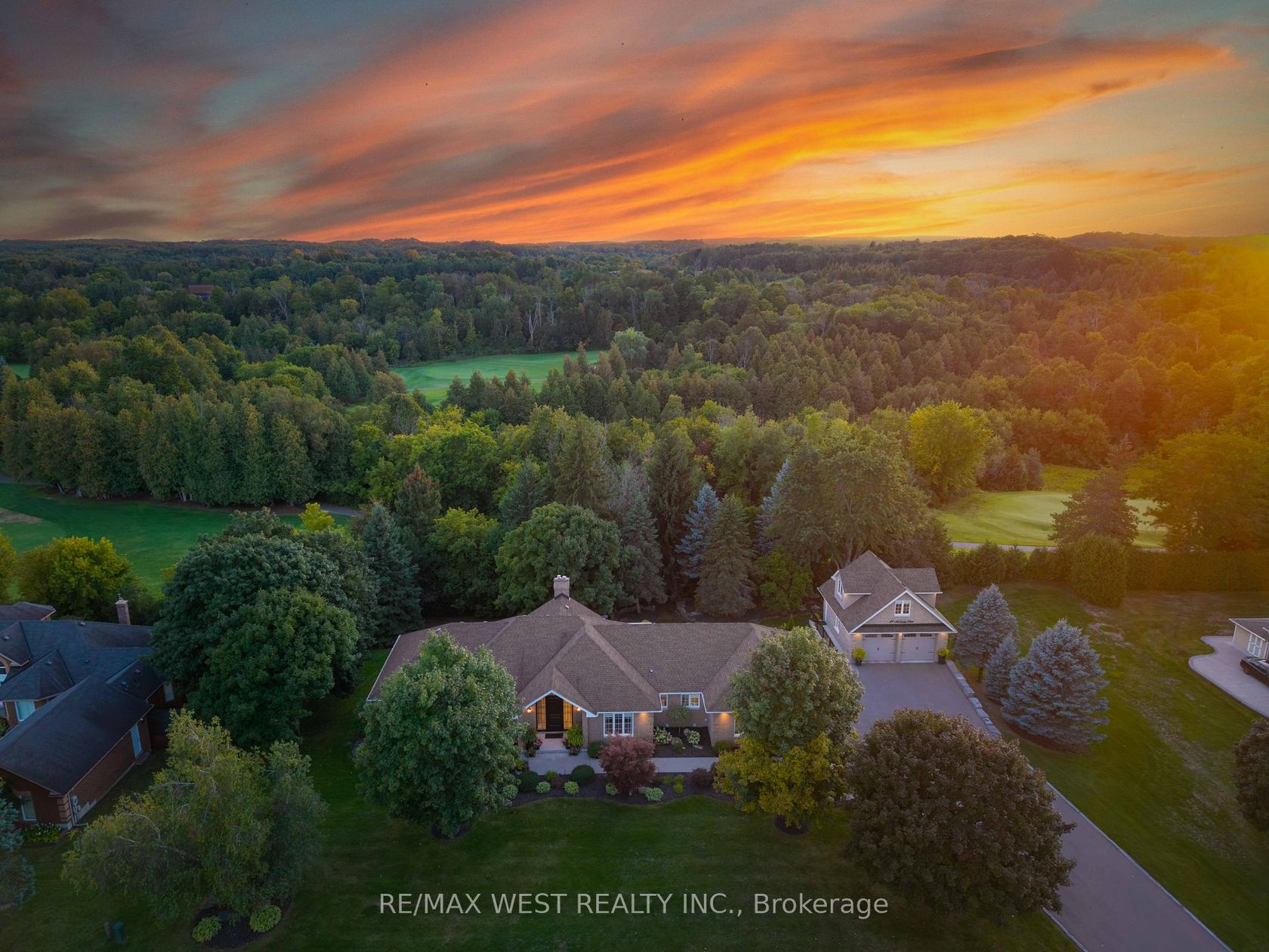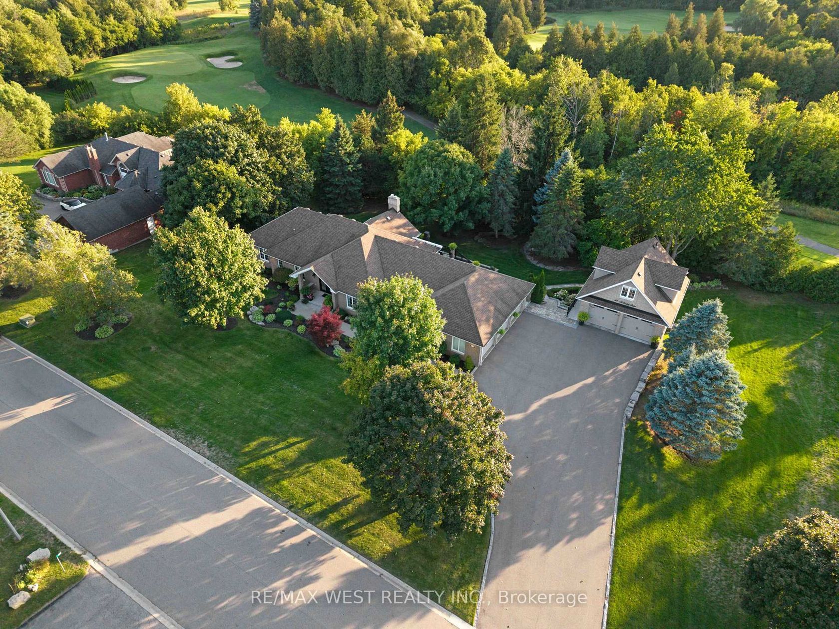 Exquisite Custom-Built Bungalow Nestled On The Prestigious Caledon Woods Golf Course, Showcasing Timeless Design And Refined Luxury Throughout. This Beautifully Renovated 3-Bedroom Residence Features Soaring Vaulted Ceilings, A Grand Foyer, And A Gourmet Chefs Kitchen Complete With Wolf 6-Burner Range, Double Oven, Sub-Zero Refrigerator, Quartz Countertops, And Heated Floors. The Elegant Great Room Impresses With Its Vaulted Ceiling, Gas Fireplace, Custom Millwork, And Expansive Windows Overlooking Lush Greenery. The Primary Suite Offers A Spa-Inspired 4-Pc Ensuite And Dual Walk-In Closets, While A Main-Floor Den And Laundry Add Convenience. The Fully Finished Walk-Out Lower Level Extends The Living Experience With Open Living Space, A Wet Bar, Home Gym, Office, 4pc Bathroom, Solarium with Heating & AC, Second Laundry, And Direct Access To A 3-Car Built-In Garage. Truly Exceptional, This Estate Offers Garage Parking For 10 Vehicles: A 3-Car Attached Garage, 3-Car Lower-Level Built-In, Plus A Detached 4-Car Garage With Loft Ideal For Additional Living Or Storage. Set Amidst Professionally Landscaped Grounds, This Residence Combines Elegance, Functionality, And Rare Distinction In One Of Caledon's Most Coveted Settings.