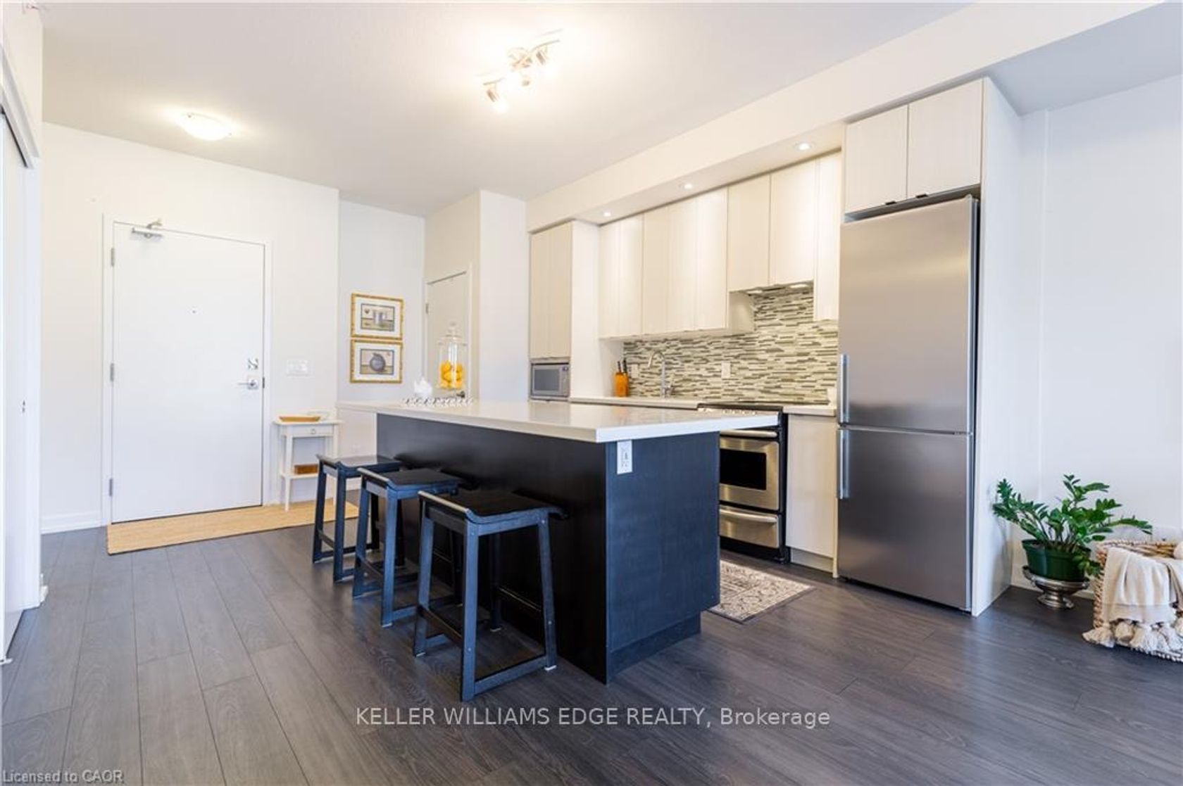 Trendy Jazz Building Boutique Condo Living. Welcome to the award-winning Jazz building by Branthaven Homes, a boutique condo in the heart of Aldershot that seamlessly combines style, comfort, and convenience. This bright and modern 1 bedroom plus den, 1 bathroom unit offers 646 sq. ft. of carpet-free living, thoughtfully designed with large windows that flood the space with natural light. The open concept layout features a sleek two-tone kitchen with quartz countertops, stainless steel appliances, and an oversized island providing both seating and prep space. In-suite laundry adds to the everyday convenience. The spacious bedroom is paired with a stylish 4-piece bathroom, while the versatile den is ideal as a home office. Sliding doors off the living area open to a covered balcony, the perfect spot for morning coffee or evening relaxation. This unit comes complete with underground parking and a locker for added convenience. Residents enjoy exceptional amenities, including a fully equipped fitness centre, yoga studio, party room with lounge, kitchen, billiards, foosball, cozy fireplace, and an outdoor patio with BBQ area, plus plenty of visitor parking. Ideally located just steps from the Royal Botanical Gardens, LaSalle Park, Burlington Golf and Country Club, lake, schools, trails, shopping, and restaurants, and only minutes to the QEW, 403, 407, and Aldershot GO Station. A perfect choice for first time buyers, young professionals, downsizers, or investors looking for a turnkey opportunity in one of Burlingtons most desirable communities.