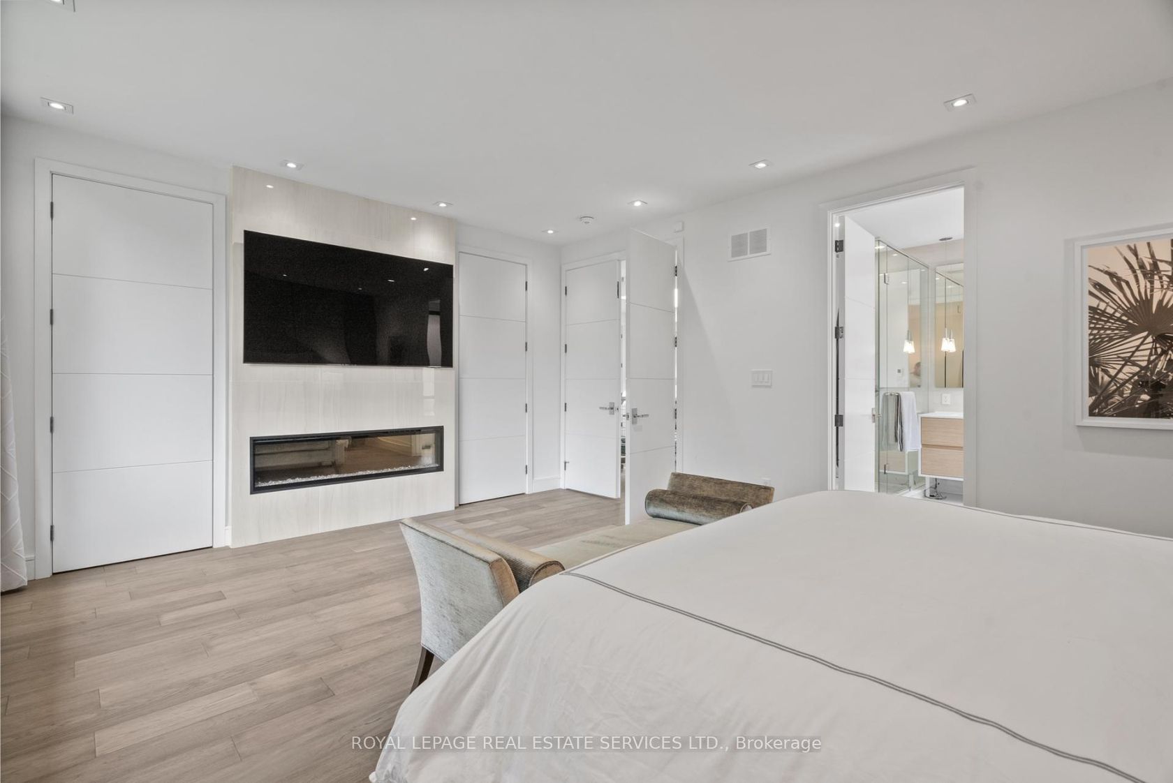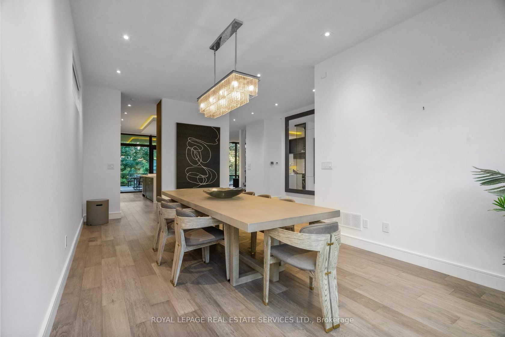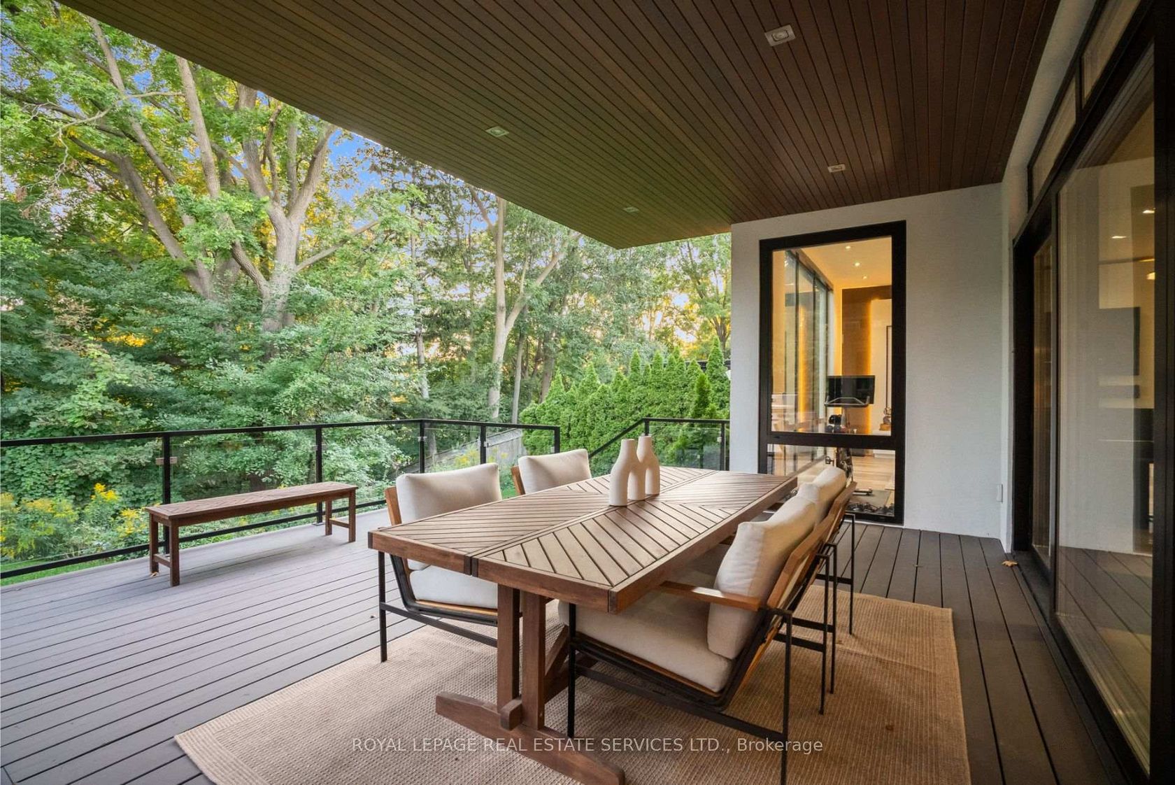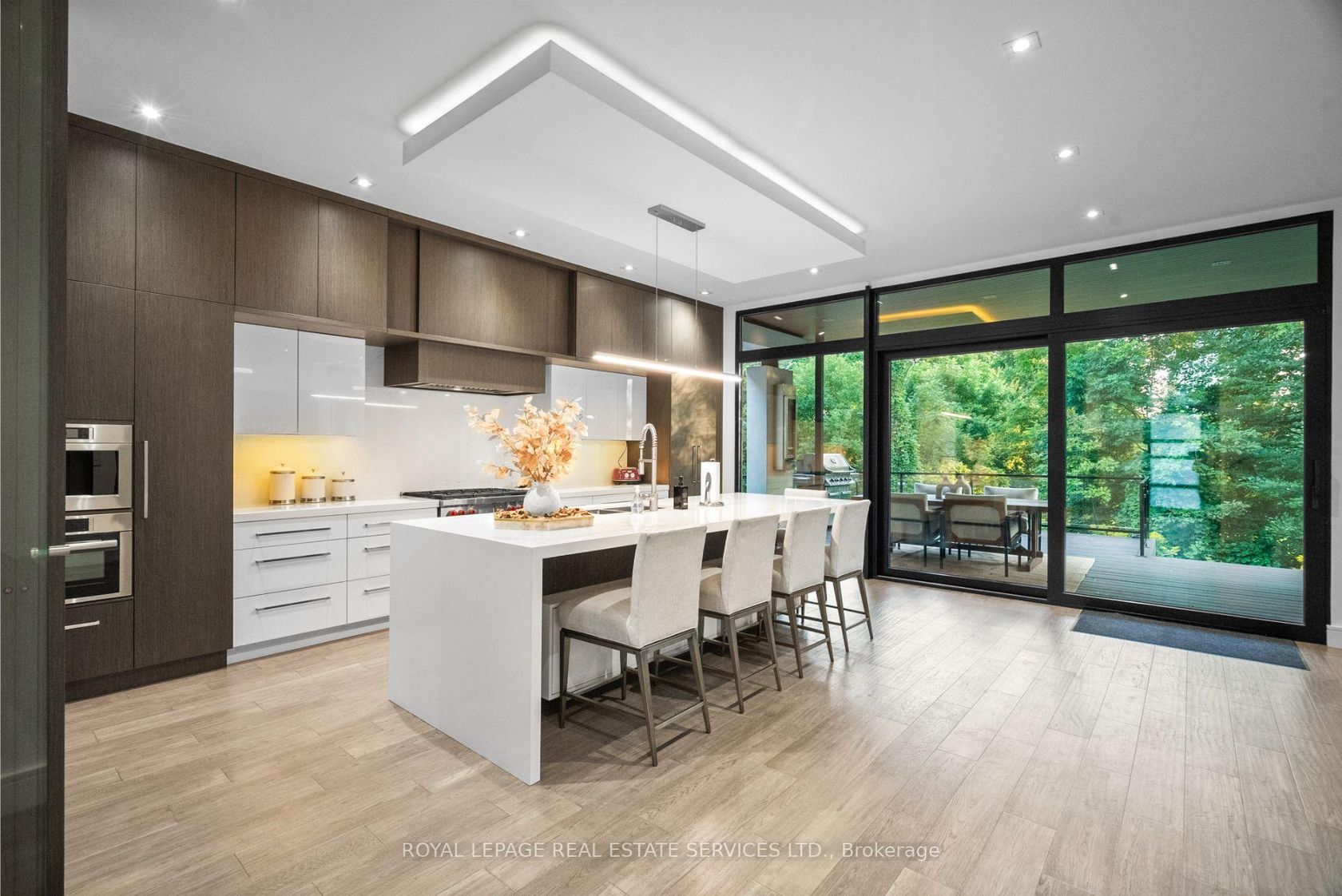 Stunning modern-contemporary custom residence in the heart of The Kingsway, offering an exceptional combination of design, scale, and location. Situated on a rare 54 x 199 ft ravine lot backing onto Tom Riley Park, this home provides a private and tranquil setting surrounded by mature greenery, while remaining just steps from transit, top-rated schools, and the vibrant shops and restaurants along Bloor Street. Spanning approximately 5,200 sqft of total living space, this 4+2 bedroom, 5 bathroom home showcases innovative architecture, premium finishes, and a highly functional layout across all levels. The main floor is anchored by a contemporary chefs kitchen with Caesarstone countertops and backsplash, Jenn-Air, Bosch, and Wolf appliances, a built-in coffee station, and custom wine display, seamlessly flowing into open concept living and dining spaces. Expansive glass doors connect to a covered 340 sqft patio with fireplace, perfect for year round entertaining. Upstairs, a skylit hallway leads to generously sized bedrooms, spa-like baths, and a 326 sqft upper terrace with ravine views, while the lower level offers a dedicated wine cellar, recreation room with fireplace, and state-of-the-art home theatre with 98" 4K screen and custom sound system. Additional highlights include multiple gas fireplaces (indoor and outdoor), heated basement floors, engineered hardwood throughout, illuminated stair features, dual laundry rooms, smart-home automation, and a private backyard oasis designed for relaxation. Rarely does a property of this calibre become available in such a prestigious and family-friendly neighbourhood.