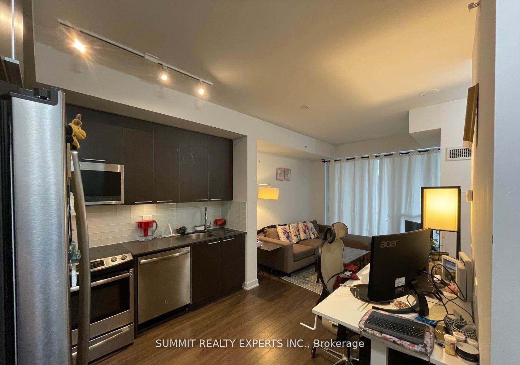 Discover modern urban living in this stylish one-bedroom, one-bath condo at 10 Park Lawn Road. This sunlit unit features an open-concept layout with sleek finishes, a contemporary kitchen with stainless steel appliances, and a spacious living area leading to a private balcony with stunning park views. The bedroom offers ample closet space, while the bathroom boasts modern fixtures and finishes. Enjoy premium amenities including a fitness center, rooftop terrace, pool, and concierge service. Located in a vibrant neighborhood, you're steps away from shops, dining, parks, and transit, making it the perfect city home. **** EXTRAS **** Underground Pkg & Storage Locker. Condo Equipped W Concierge & Security. * Built In Kitchen Appliances (Fridge, Stove W/ Hood, Dishwasher, Microwave, Washer/Dryer) All Elf's & Window Coverings Built In Kitchen Appliances (Fridge, Stove W/ Hood, Dishwasher), Microwave, Washer/Dryer, All Elf's & Window Coverings. L SHAPED BIG BALCONY EXCESS FROM FAMILY ROOM AND THE BEDROOM WITH SPECIAL FLOOR.