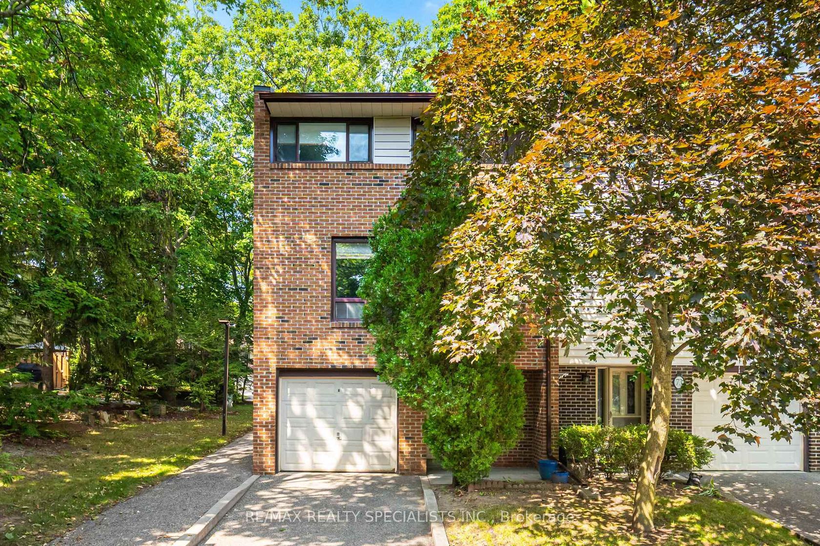 This spacious end-unit townhome is tucked into a quiet, tree-lined enclave in one of Mississaugas most convenient locations. With mature greenery, a covered portico entry, and visitor parking right in front, the home offers a private and welcoming feel from the moment you arrive. Inside, a bright foyer with a mirrored double closet sets the tone for the thoughtful layout. The living room is a true highlight, designed with soaring twelve-foot open-to-above ceilings, an arched entryway, and a walkout to a private patio surrounded by mature trees, creating the perfect setting for both relaxation and entertaining. Overlooking this space is a separate dining room, providing an elegant area for gatherings. The updated kitchen is equipped with stainless steel appliances, and its large front window fills the space with natural light, while a convenient laundry room adds everyday practicality. Upstairs, the primary bedroom offers his-and-hers closets and a large picture window, while two additional bedrooms provide plenty of space for family or guests. The full bathroom includes porcelain-tiled shower walls and bright vanity lighting. The finished basement extends the living space with a powder room and recreation room that can easily function as a home office, gym, or media area. With a single-car garage, driveway parking, and the privacy of an end-unit backing onto mature trees, the property combines comfort with convenience. This home places you steps from everyday essentials, including groceries, South Common Mall, and Sheridan Centre, while the University of Toronto Mississauga, Credit Valley Hospital, and Erin Mills Town Centre are only minutes away. Commuters will find quick connections to Highways 403, 407, and the QEW, with Clarkson GO Station just ten minutes from home. Families benefit from top-rated schools. Port Credits waterfront is a short drive away, offering lively restaurants, scenic marina views, and trails perfect for evening walks.