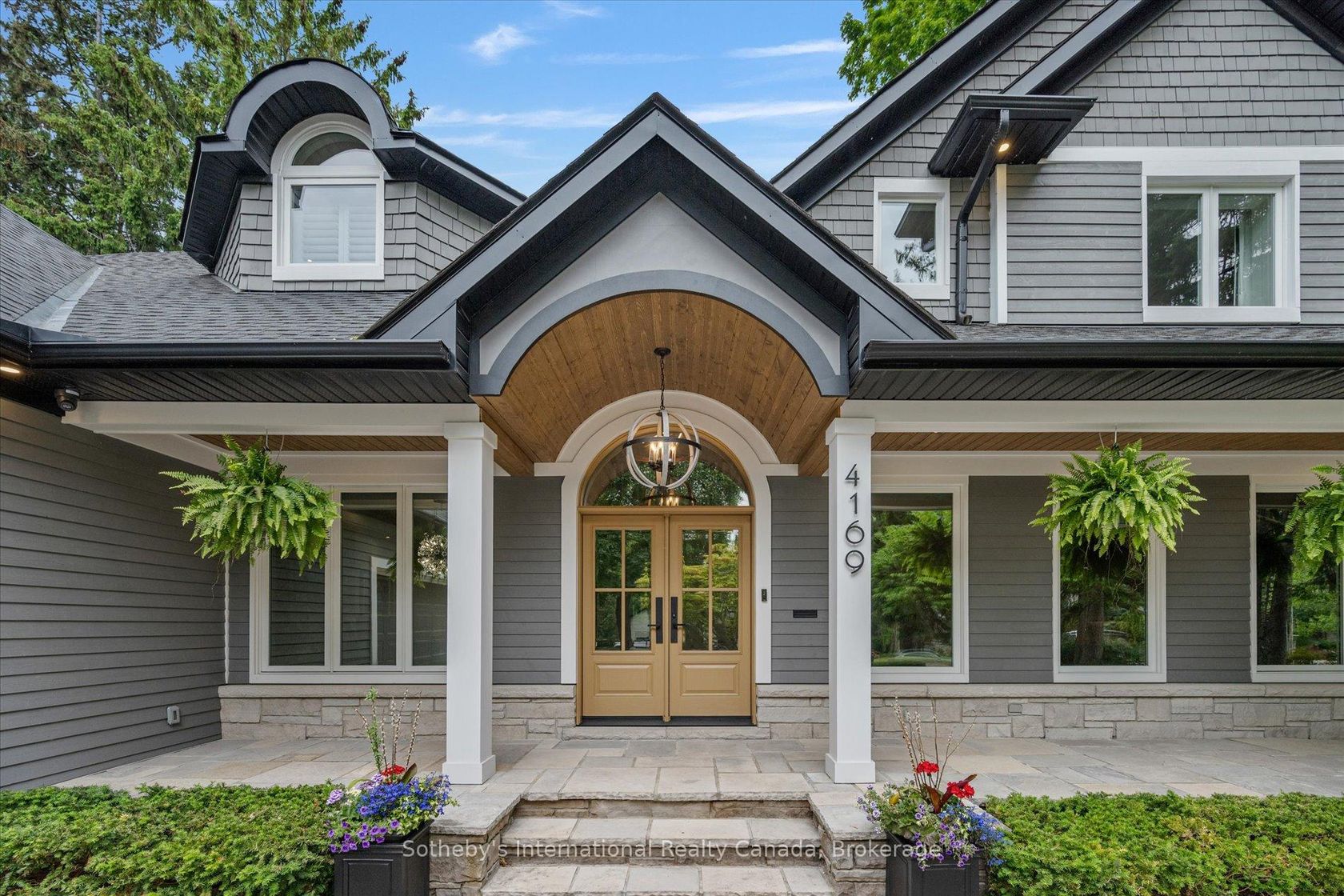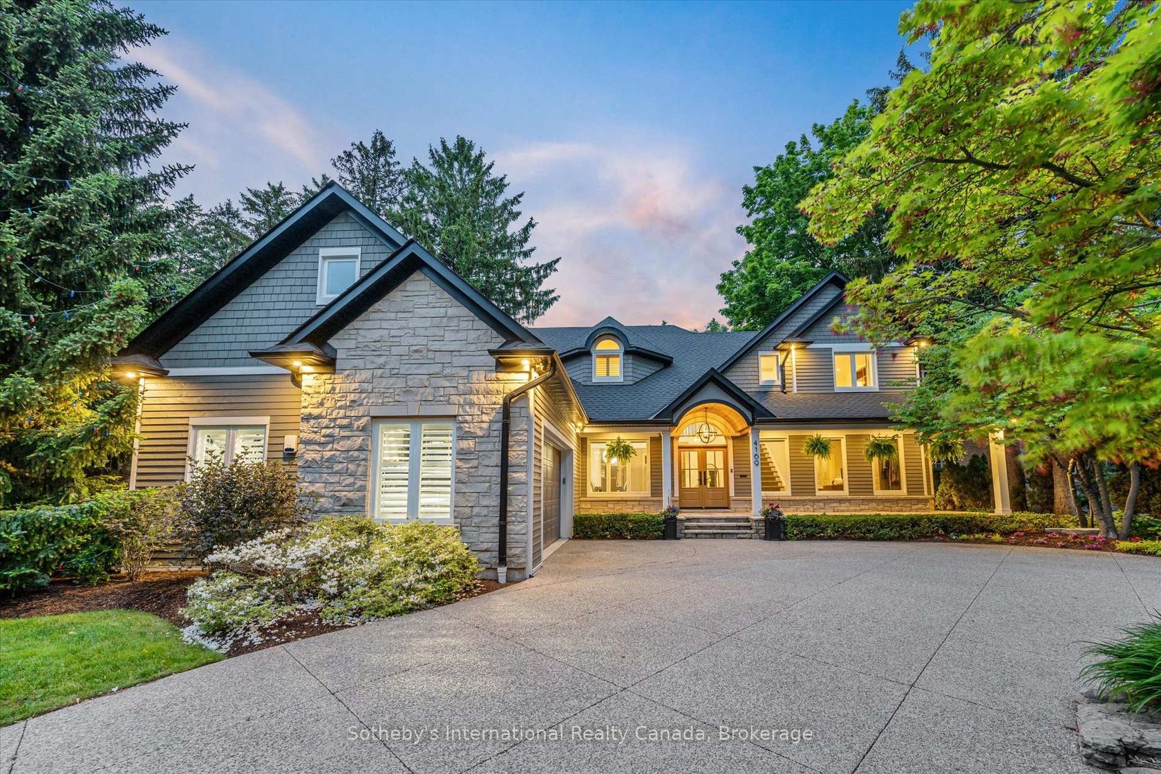 Timeless sophistication meets transitional design at this one of a kind property. Situated on a desirable half acre lot with gated backyard access to a private park in Burlington's coveted Shoreacres - this is a rare offering on prestigious Lakeshore Road. With 5+1 bedrooms, 4.5 bathrooms and nearly 7000 square feet of living space, this fully integrated smart home boasts the ideal floor plan with luxury amenities at every turn. Enter the grand two storey foyer to be greeted by a warm open concept living area. The great room is the heart of the home with soaring 18 vaulted ceilings and a stately 2 storey gas fireplace. The generous dining room is outfitted for a table of ten with built in speakers while the family room is encased in windows with cathedral ceilings and a second two storey gas fireplace.The chef's kitchen features top of the line integrated appliances, caesarstone quartz countertops, contemporary walnut trim, built in speakers and an island overlooking a built in wine cabinet, coffee bar, and an eat-in dining den. The main floor primary suite is an everyday retreat with a wall to wall window view of the lush backyard and a walkout to the terrace. The spa-like 5 piece ensuite includes a freestanding tub, walk-in shower, double vanity and built-in speakers, plus dual walk-in closets and a dressing room/office - a former bedroom. Upstairs there are three more bedrooms, one a private suite and the others with a shared ensuite. The lower level is a dream with a theatre room, lounge with wet bar, billiards room, games room, gym with rubber flooring, plus a bedroom with a cedar closet and 3 piece semi-ensuite.The private resort-like backyard features a fiberglass pool with spa and waterfall, sport court, and gated access to Glen Afton Park- a no maintenance extension of your own backyard. Located mere steps to the Lake, plus easy access to downtown, the QEW and both GO stations. Live the life you've always dreamed of at 4169 Lakeshore Road.