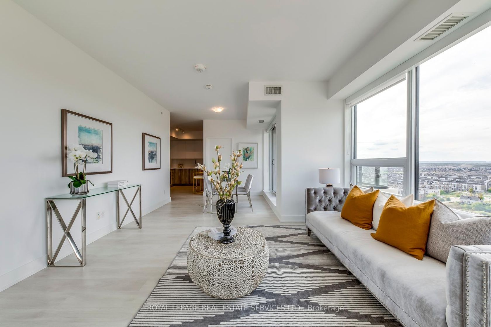 Priced to Sell! Discover breathtaking, unobstructed views of the pond, CN Tower, and Lake Ontario from this stunning 966 sq. ft. two-bedroom, two-bathroom corner suite at Oak & Co., a modern residence built just 3 years ago in the heart of North Oakville. This bright and spacious home showcases floor-to-ceiling windows, luxurious finishes, and an open-concept layout ideal for both daily living and entertaining. Step onto your private balcony and take in the panoramic skyline and water views. The sleek, upgraded kitchen is a chefs delight with granite countertops, a stylish backsplash, and premium stainless steel appliances. The primary suite offers a serene retreat with a beautifully appointed ensuite and generous closet space. Added convenience includes underground parking located close to the elevator, plus a private locker situated in the same area for easy access. Residents enjoy world-class amenities: a state-of-the-art fitness center, yoga studio, outdoor terrace, concierge service, visitor parking, and a stylish events lounge .Perfectly positioned in Oakville's vibrant Uptown Core, you're just steps to Walmart, Superstore, LCBO, banks, dining, and shopping. Highly rated schools, major highways (QEW/403/407), and GO Transit are minutes away, with Sheridan College just 5 minutes and UTM only 14 minutes by car. This is modern urban living at its finest, don't miss this incredible opportunity!