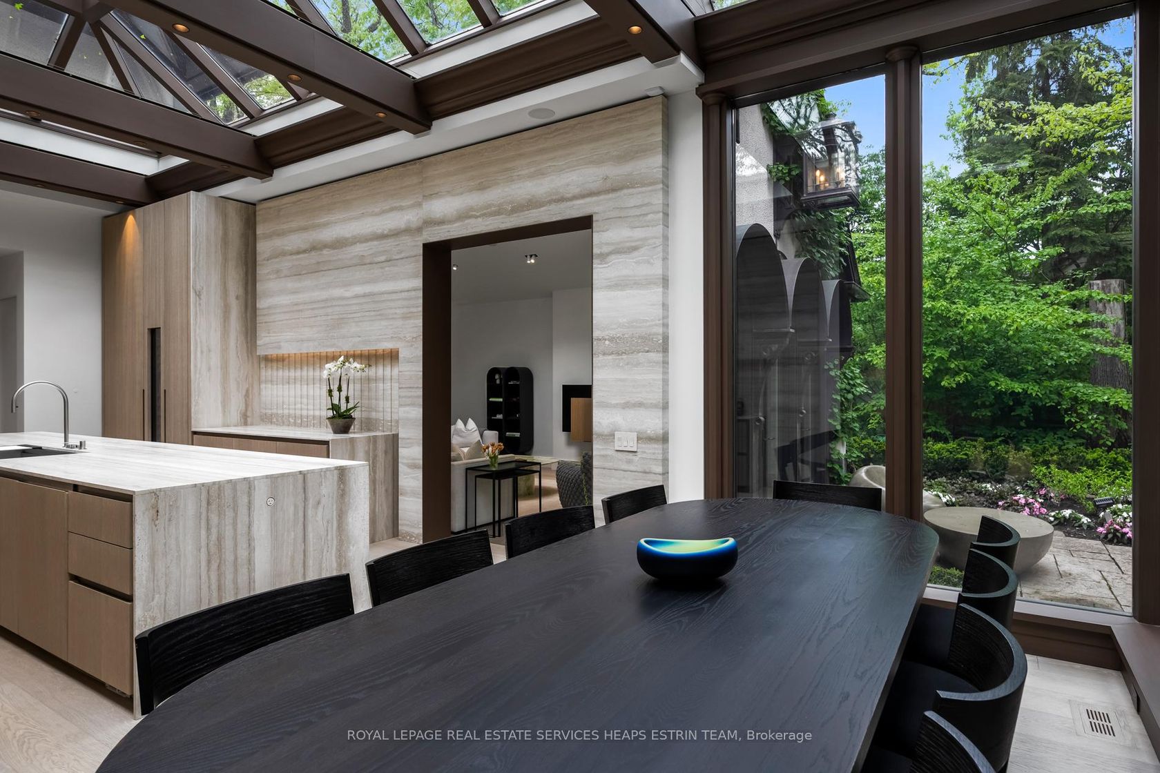 Leave the city in the city. This serene estate invites you to do just that. Nestled behind the gates on one of Toronto's most exclusive streets, 25 North Drive is a rare architectural offering: a quiet, confident statement where design, art, and nature coexist in harmony. Thoughtfully reimagined through an internationally acclaimed renovation by Reflect Architecture and featured in leading architectural and design publications. Executed with masterful precision, the transformation celebrates both innovation and restraint, elevating everyday living to an art form. At the heart of the home lies a truly exceptional Obumex kitchen, handcrafted in Belgium. This kitchen thoughtfully integrates artful sensibilities, natural inspirations and family-oriented functionality. With minimalist lines and bespoke finishes, this space is more than a kitchen, it is a sculpture in daily use. Expansive windows frame ravine views and infuse the interiors with natural light. The main floor is tailored for elegant living, featuring sun-filled rooms, with an inviting family room, and that stunning kitchen which opens seamlessly to the lush backyard. The upper levels include an expansive primary wing with dual dressing rooms, a spa-inspired ensuite, and treetop views. Four additional bedrooms offer ensuite baths, providing privacy and independence for family or guests. The lower level features a gym, recreation room, kitchenette, and full bath, making it ideal for wellness and entertaining. Manicured gardens, mature trees, a ravine backdrop, a sparkling pool, and a private tennis court elevate the everyday. With architectural pedigree, natural beauty, and a legacy of care, 25 North Drive is more than a home. It is a lifestyle defined by privacy, presence, and permanence. Some homes are built for living, this one was crafted for a life well lived.