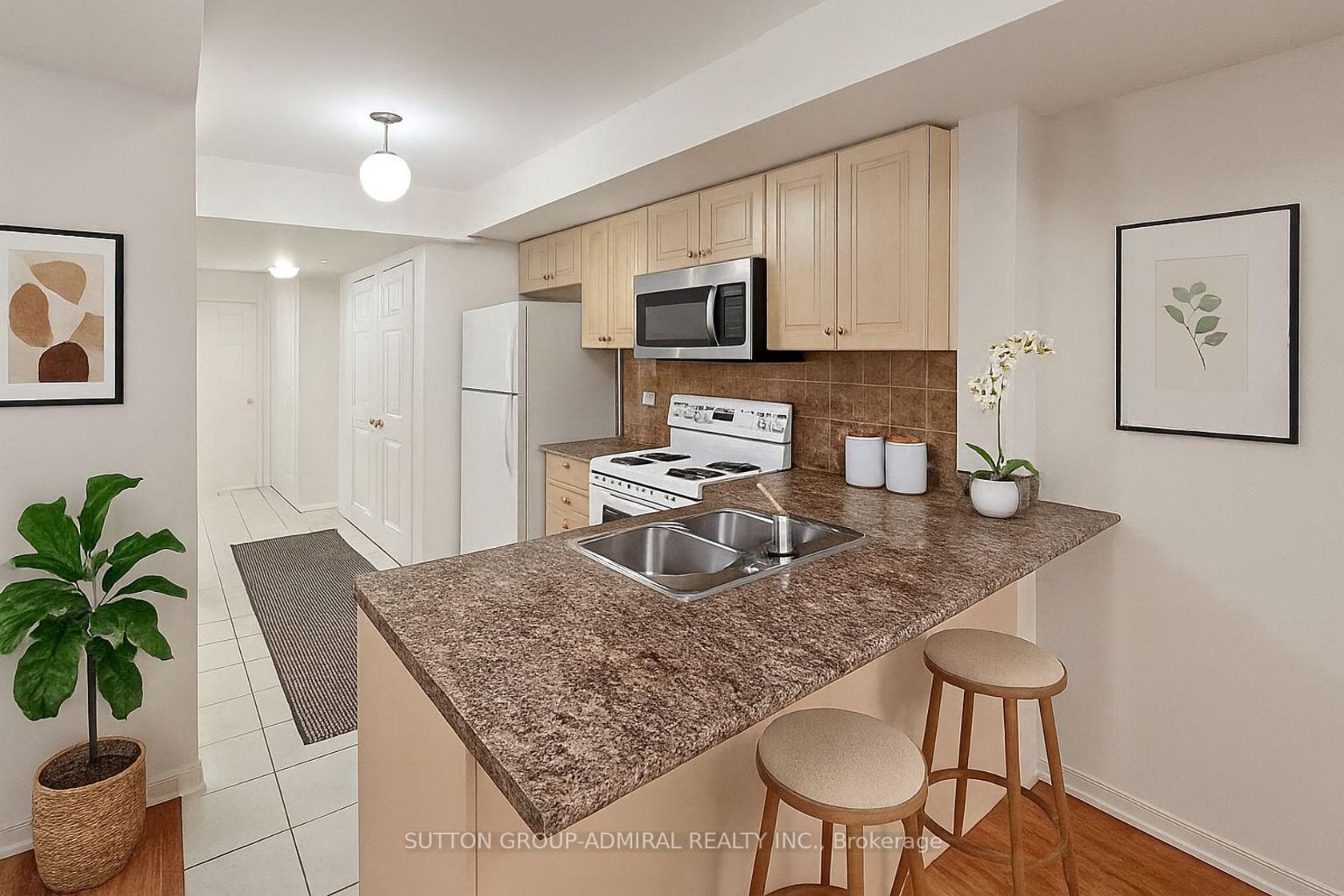 May the Four Winds of Favour blow your way! Whether youre a first-time buyer, investor, or downsizer, this bright and spacious 2-bedroom condo townhouse is a golden opportunity. The functional layout blends style and practicality, with an open-concept design that offers clear sightlines to family and friends. The kitchen provides ample counter space for meal prep, plus a breakfast bar that makes serving a breeze.This desirable middle-unit means no stairs and enjoying the comfort of single-level living. Updates include new flooring in the primary bedroom, in-suite laundry, and a walkout to your own private balcony. Ready for your personal touch, this home is perfect for those who want both value and convenience. Location is unbeatable: walk to Finch West Subway, York University, shopping, parks, schools, and more. With modern living in a vibrant community at an affordable price, this opportunity won't last. Answer the call of homeownership - your next chapter is just a showing away. (SOME OF THE PICTURES ARE VIRTUALLY STAGED)