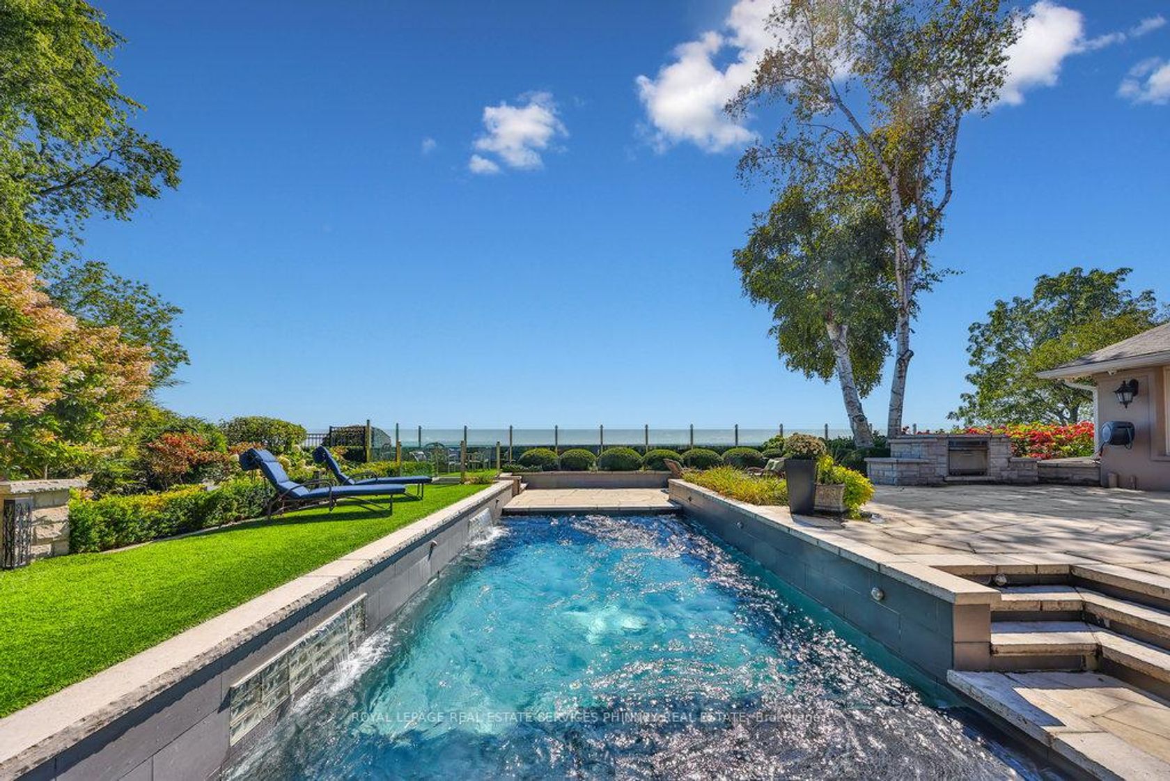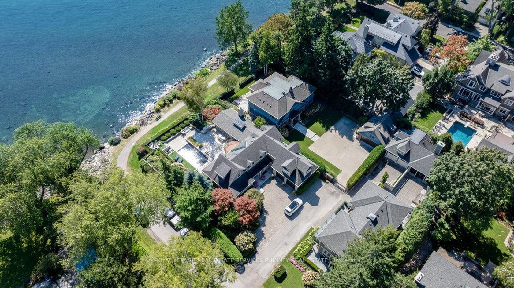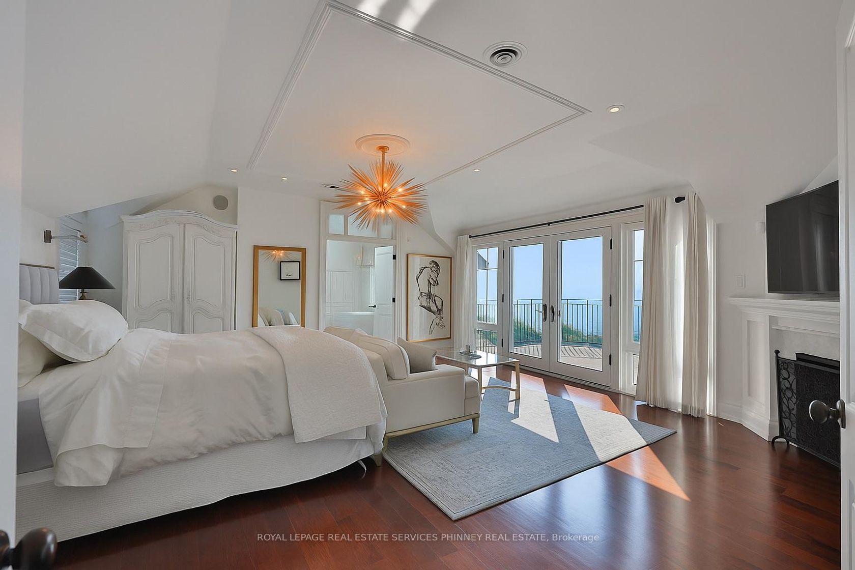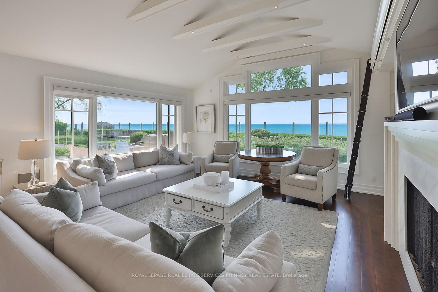 Step into a world of refined luxury and sophistication in this stunning waterfront property, where panoramic views of the city skyline captivate from the moment you enter. The expansive open-concept main level is anchored by a showstopping marble island, surrounded by high-end appliances. A discreetly positioned butlers pantry offers effortless functionality. The eat-in kitchen, graced by soaring vaulted ceilings, seamlessly flows into a grand living room appointed with a gas fireplace, an idyllic setting to relax while soaking in the breathtaking waterfront vistas. For formal occasions, an elegant dining room sets the stage for lavish dinner parties and intimate family gatherings. A spacious main floor family room adds versatility for everyday living and entertaining alike. The main level also features a beautifully appointed guest suite with a spa-inspired 5-pc ensuite bath. Even the laundry room has been elevated with heated floors, custom cabinetry, and expansive folding surfaces. Upstairs, discover three generously sized bedrooms, each with its own luxurious ensuite. The primary suite is a private sanctuary, complete with gas fireplace, exclusive balcony for sunset viewing, and an ensuite bathroom boasting a large soaking tub overlooking the water and spacious walk-in closet. Outdoors, the resort-style backyard is an entertainers dream. Host with ease at the built-in barbecue station, enjoy alfresco evenings under the covered patio, gather around the firepit, or unwind by the inground saltwater pool. With every amenity at your fingertips, this home redefines the art of luxurious living! Prime location just a short walk to downtown Oakville's coffee shops, restaurants, boutiques, and lively festivals. Families will love the walkability to top schools like SMLS and Oakville Trafalgar High, while commuters enjoy easy access to the GO Train for a smooth trip to the city.