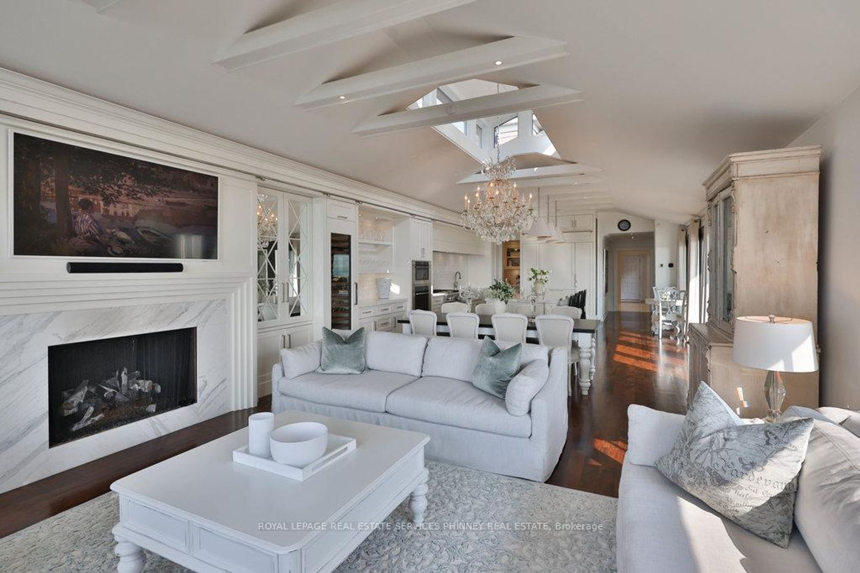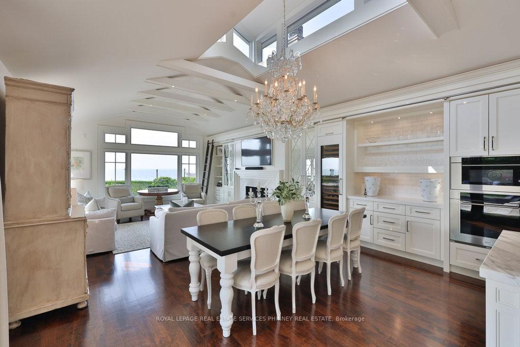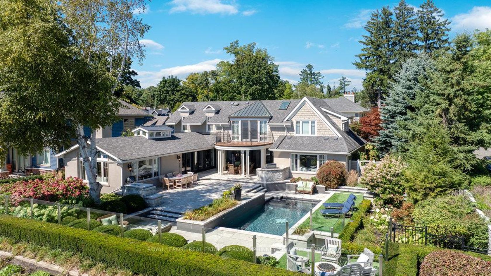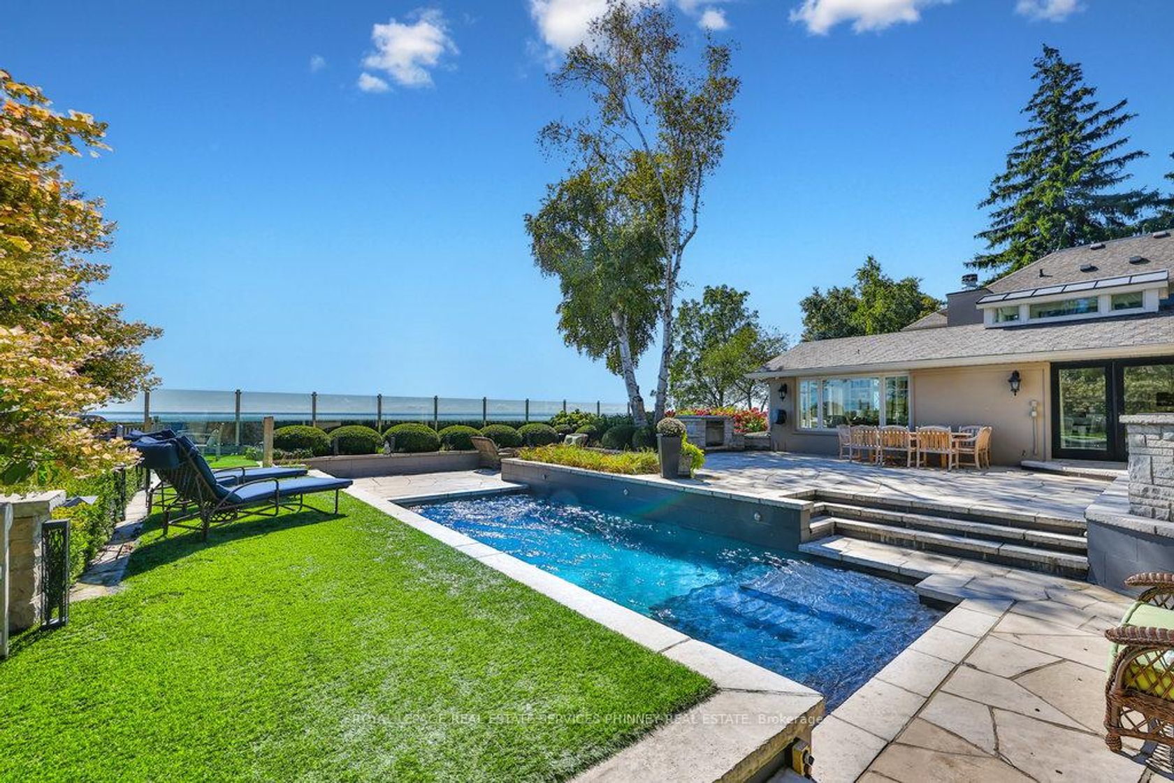 Step into a world of refined luxury and sophistication in this stunning waterfront property, where panoramic views of the city skyline captivate from the moment you enter. The expansive open-concept main level is anchored by a showstopping marble island, surrounded by high-end appliances. A discreetly positioned butlers pantry offers effortless functionality. The eat-in kitchen, graced by soaring vaulted ceilings, seamlessly flows into a grand living room appointed with a gas fireplace, an idyllic setting to relax while soaking in the breathtaking waterfront vistas. For formal occasions, an elegant dining room sets the stage for lavish dinner parties and intimate family gatherings. A spacious main floor family room adds versatility for everyday living and entertaining alike. The main level also features a beautifully appointed guest suite with a spa-inspired 5-pc ensuite bath. Even the laundry room has been elevated with heated floors, custom cabinetry, and expansive folding surfaces. Upstairs, discover three generously sized bedrooms, each with its own luxurious ensuite. The primary suite is a private sanctuary, complete with gas fireplace, exclusive balcony for sunset viewing, and an ensuite bathroom boasting a large soaking tub overlooking the water and spacious walk-in closet. Outdoors, the resort-style backyard is an entertainers dream. Host with ease at the built-in barbecue station, enjoy alfresco evenings under the covered patio, gather around the firepit, or unwind by the inground saltwater pool. With every amenity at your fingertips, this home redefines the art of luxurious living! Prime location just a short walk to downtown Oakville's coffee shops, restaurants, boutiques, and lively festivals. Families will love the walkability to top schools like SMLS and Oakville Trafalgar High, while commuters enjoy easy access to the GO Train for a smooth trip to the city.