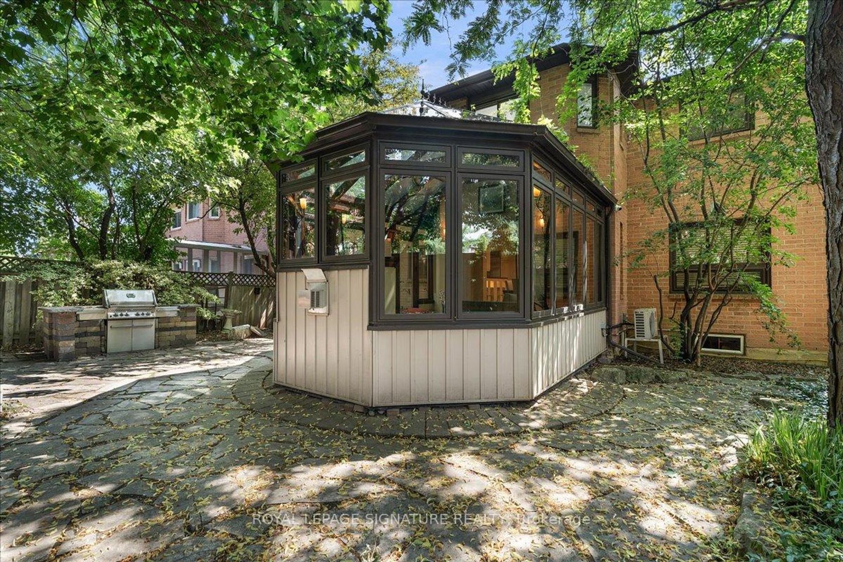 This exquisite residence is a stunning blend of timeless character and refined craftsmanship. The gourmet kitchen is a chefs dream, featuring granite countertops, premium Thermador appliances, and elegant glass cabinetry. Classic details such as wainscoting, crown molding, and custom columns add sophistication throughout. A bright 4-season conservatory overlooks mature trees, offering tranquil year-round relaxation. The expansive lower level boasts a well-appointed kitchenette with an island, a half bath, and a large open-concept living area perfect for entertaining or extended family. Upstairs, the primary suite impresses with two sitting areas, a spa-style ensuite with skylight, and a generous dressing room. Additional features include: Full security system with 6 exterior cameras & remote monitoring New roof (2021)New furnace & air conditioner (2019)A rare opportunity to own a truly remarkable home blending luxury, comfort, and time less design.