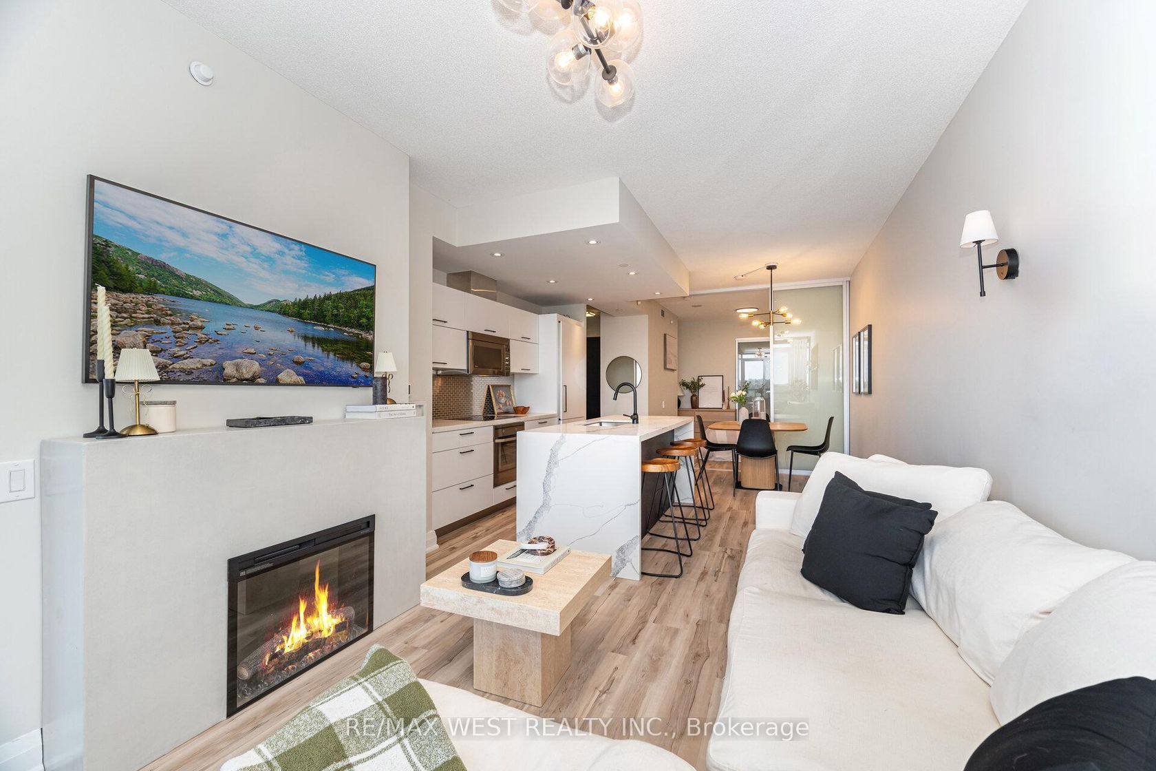 This Thoughtfully Designed & Impeccably Maintained 2Bdrm Suite At South Beach Condos Offers The Ideal Blend Of Style & Function (Parking And Locker Included). Enjoy Stunning Sunsets From The Spacious NW Facing Balcony, Complemented By High-End Finishes Throughout Including A Modern Upgraded Kitchen, New Concrete Finished Fireplace & New Flooring Throughout. Offering Two Ideal Office/WFH Spaces, This Property Shows Beautifully In Person & Reflects True Pride Of Ownership. Residents Enjoy An Incredible Ensuite Of Amenities Unique To A Building Of This Caliber Such As Basketball Court, Squash Courts, Indoor & Outdoor Pool, State Of The Art Gym & Personal Spa Services. With A Strong Sense Of Community & Attentive & Professional Property Management, South Beach Condos Offers An Elevated Lifestyle. Ideally Located Close To Toronto (2min walk to Streetcar, 12min walk to GO), Yet Surrounded By The Quiet Greenery And Charm Of Mimico, It Truly Has The Best Of Both Worlds.