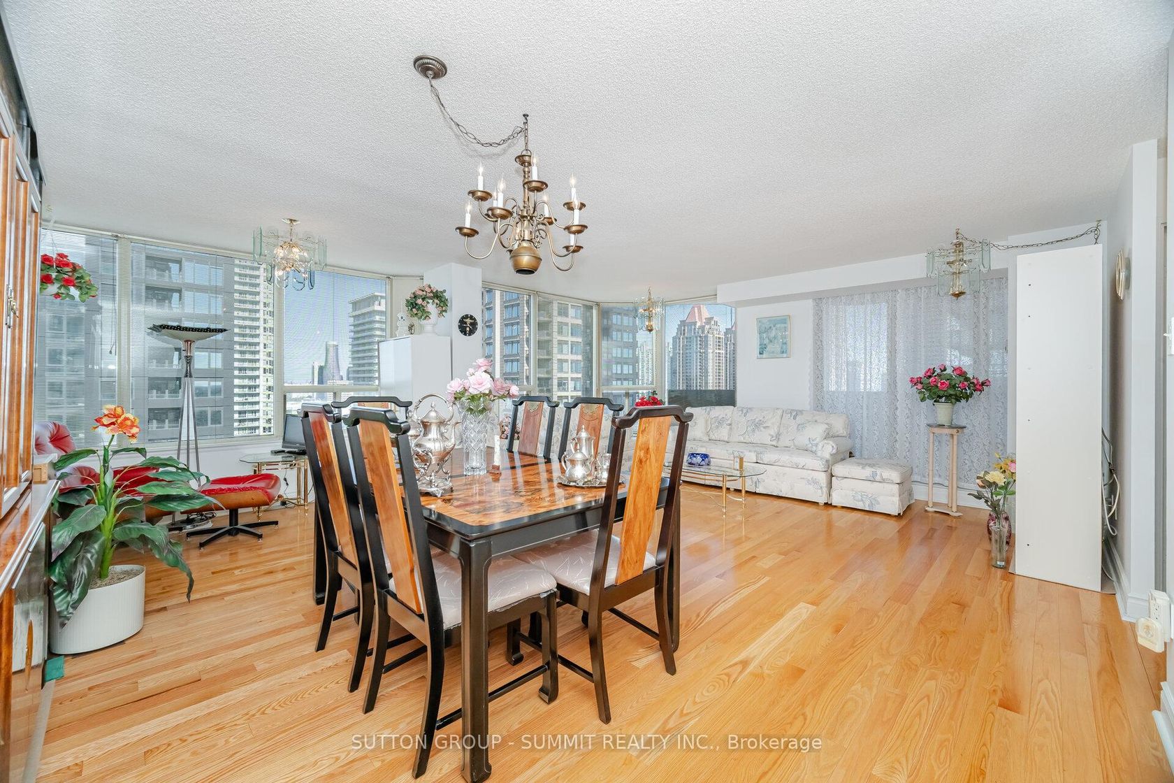 Gorgeous sunfilled corner unit, hardwood floors throughout, amazing views of downtown Mississauga, bedrooms at opposite ends, supermarket next door, transit hub adjacent, great building meticulously maintained, 2 parking spots with one extra-wide (13ft), 2 large indoor lockers. Maintenance fee includes Bell Fibe TV "Better" programming package incl Fibe PVR for up to 3 TVs, plus Bell Fibe High Speed unlimited Internet. Enjoy the 24/7 security personnel, underground parking for overnight guests, indoor pool, whirlpool, sauna, squash court, tennis court, 2 party rooms, gym, card room, library/reading room, games room, and 4 guest suites (to rent). This is a lovely condo stacked with 5 star amenities.