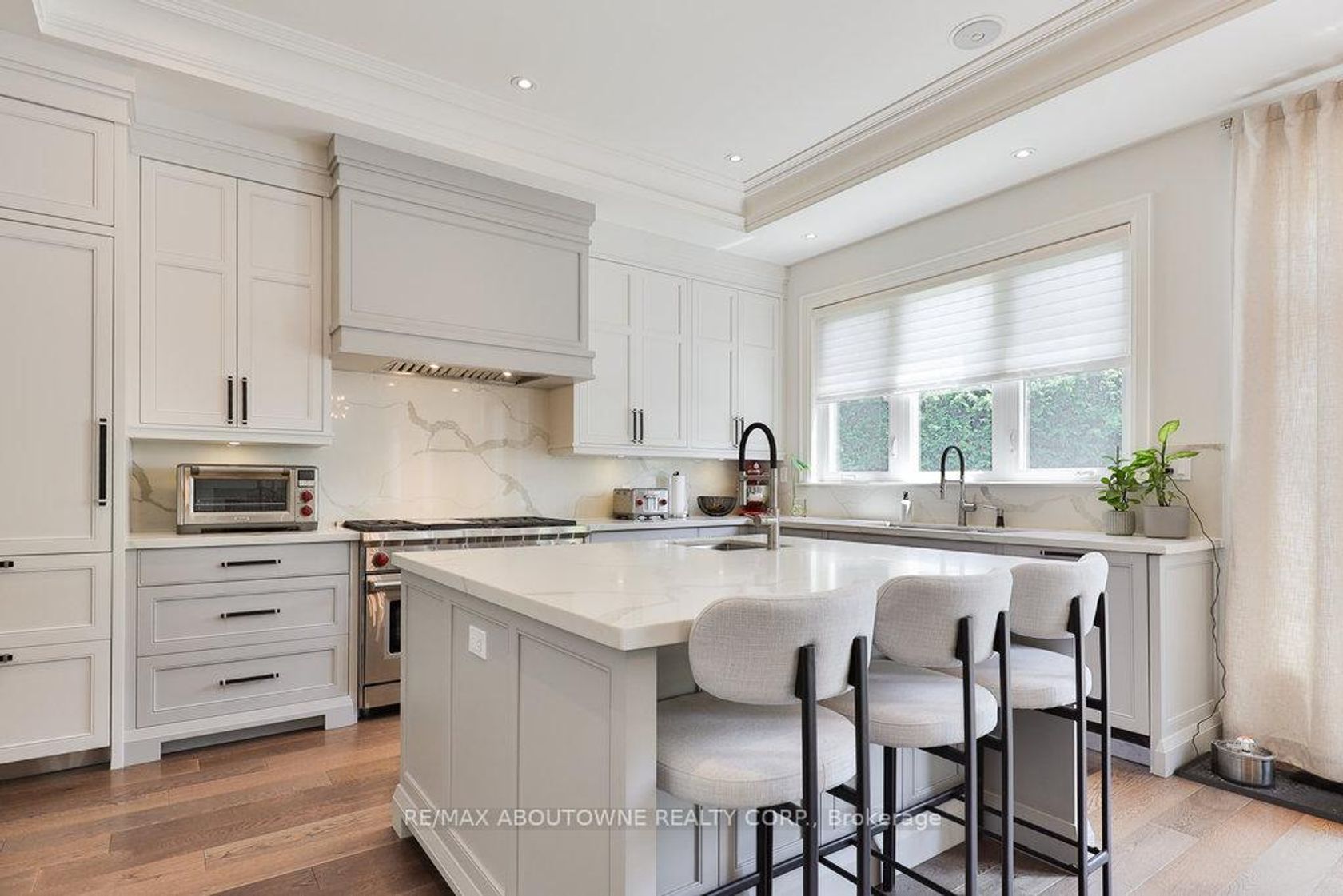 Every so often, a home comes along that sets a new benchmark. This custom-built residence combines timeless architecture, magazine-worthy interiors, and a resort-style backyard with over 6,100 sq. ft. of finished living space. Set on one of the largest pie-shaped lots in the neighbourhood (over 45% larger than average) and just 3km to Appleby College, it offers a rare sense of scale and privacy. Southwest-facing gardens showcase a heated saltwater pool, tiered lounging areas, ambient lighting, and mature hedging. Inside, 10 ceilings, wide-plank hardwood, and bespoke millwork create quiet sophistication. The open-concept kitchen and family room with gas fireplace and French doors connect seamlessly to the gardens. A formal living room, elegant dining area, and private office complete the main floor. Upstairs, the primary suite rivals a luxury hotel with spa-inspired ensuite and dressing room, complemented by 3 bedrooms and laundry. The finished lower level adds a rec room with wet bar, gym, sauna, bedroom, and bathroom, ideal for teens, guests, or multigenerational families.