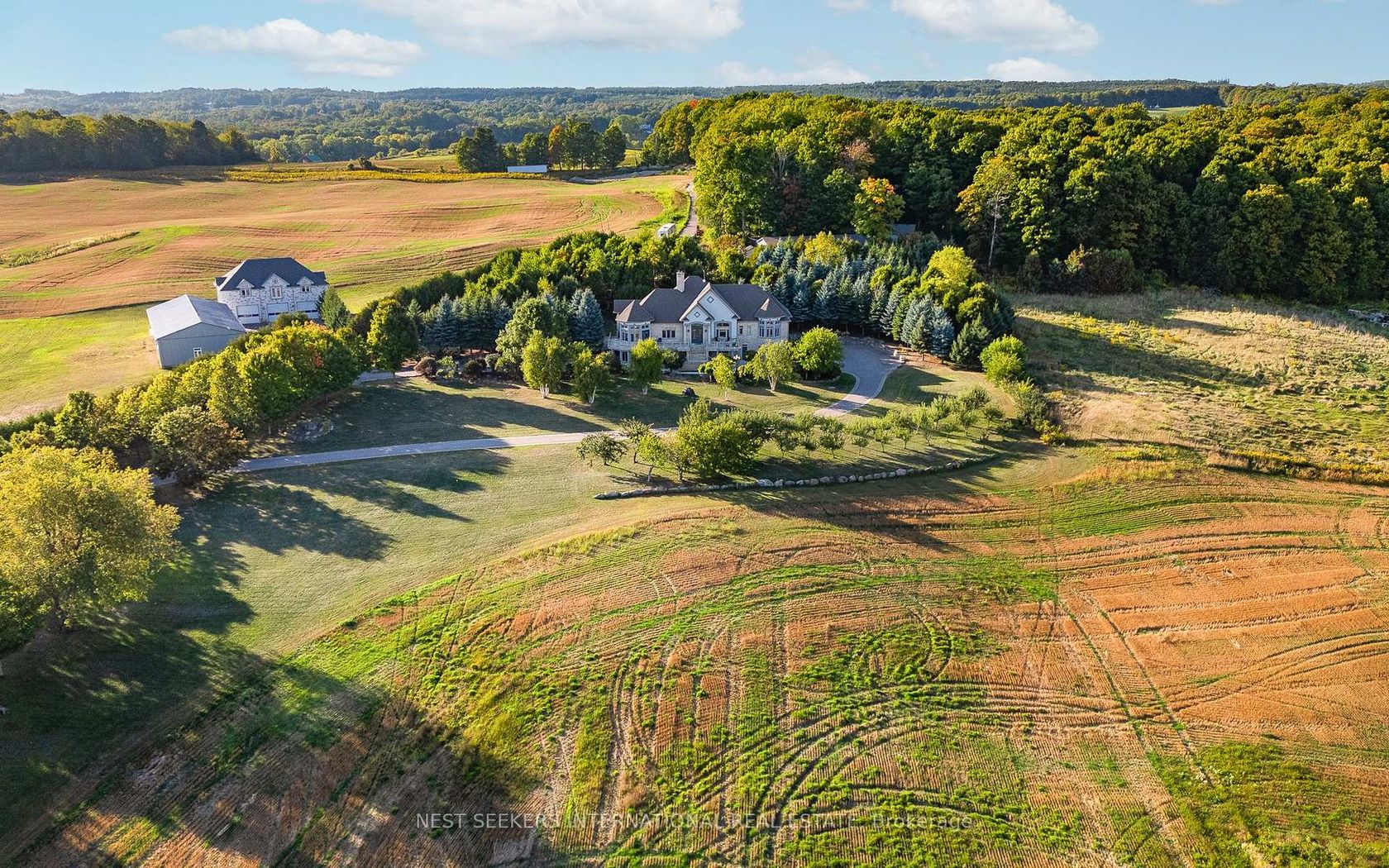 Welcome to 3722 The Grange Side Rd a truly exceptional 84-acre country estate offering privacy, beauty, and endless potential. A long, tree-lined driveway leads you through picturesque farmland to an impressive natural stone bungalow, thoughtfully positioned to take in the surrounding views. APPROXIAMETLY 84 ACRES and approximately 55 workable acres, gently rolling terrain, and a peaceful pond near the entrance, this property is ideal for farming, a home-based business, or multigenerational living. The main residence showcases quality craftsmanship, spacious interiors, and a layout that offers three potential living areas, perfect for extended families or flexible use. A standout feature is the detached, stone-fronted and steel-clad workshop/garage, featuring Three oversized 12-foot bays, a full four-piece bathroom, and an expansive 2,200 sq ft upper loft that includes three additional bedrooms and two bathrooms. The additional steel garage features 4 oversized garage doors. Also includes secondary workshop/ shed on property Whether you're an entrepreneur seeking space for a business, a hobbyist in need of storage, or a family looking for extra room to grow, this estate delivers unmatched versatility. The land is rich with opportunity, from agriculture to recreation or future expansion. Located in a serene rural setting yet within a convenient drive to nearby towns and amenities, this is your chance to own a signature property that combines natural beauty with practical living.