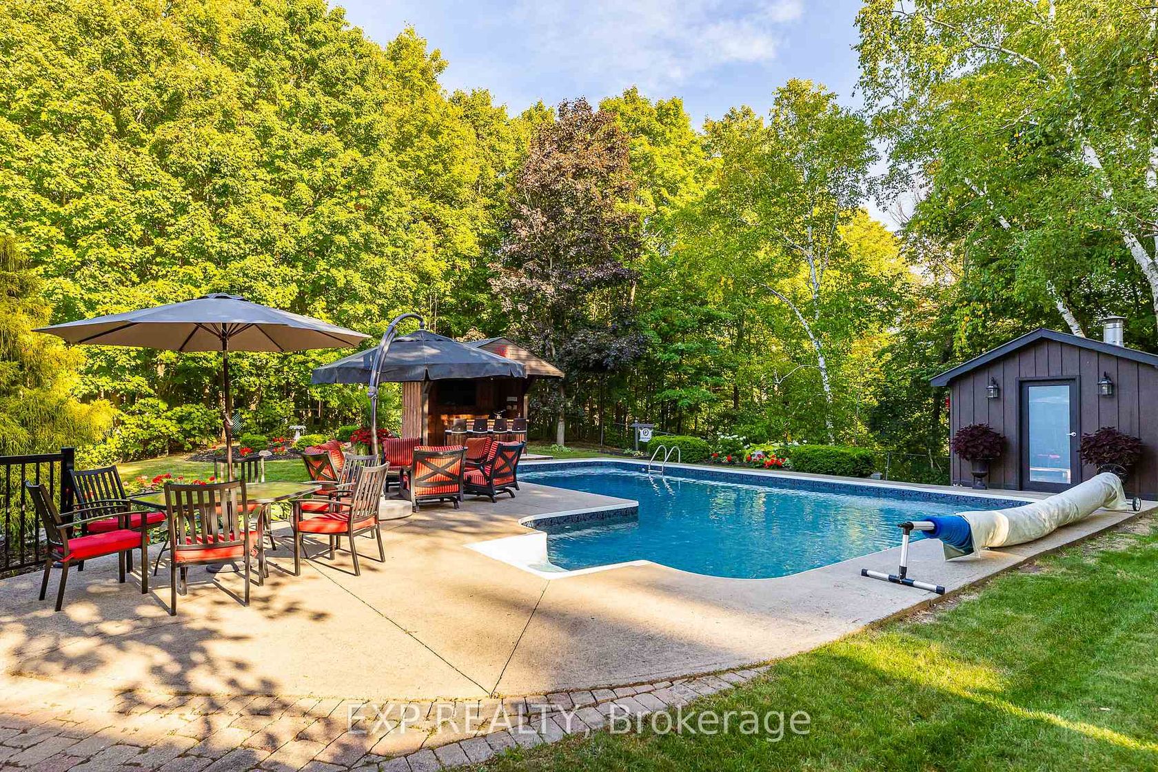 Welcome to 160 Little Court, a rare offering on Boltons most exclusive 7-home private court. This exceptional 4-bedroom family residence sits on nearly half an acre with no neighbours behind, backing onto protected conservation. The true showstopper is the sun-drenched southeast-facing backyard a one-of-a-kind retreat featuring a heated saltwater pool, pool bar, and pool shed, with expansive green space still left for kids, pets, or gardens. Complete privacy, morning-to-afternoon sun, and tranquil views make this backyard unmatched in Bolton. Inside, discover a bright and spacious layout with a formal living room (gas fireplace, bay window, built-ins), elegant dining room, open-concept family room (gas fireplace, custom shelving), and a large family-sized kitchen with granite counters, stainless appliances, and walkout to your backyard paradise. Upstairs offers 4 generous bedrooms, including a renovated primary ensuite with double sinks and walk-in shower. The walkout basement features a cedar-lined closet, large cold room, and wood stove. With parking for 8, renovated bathrooms, and walk-to-town convenience near schools, parks, and trails, this extraordinary home is designed for the family who deserves the rarest combination: privacy, prestige, and unforgettable outdoor living.
