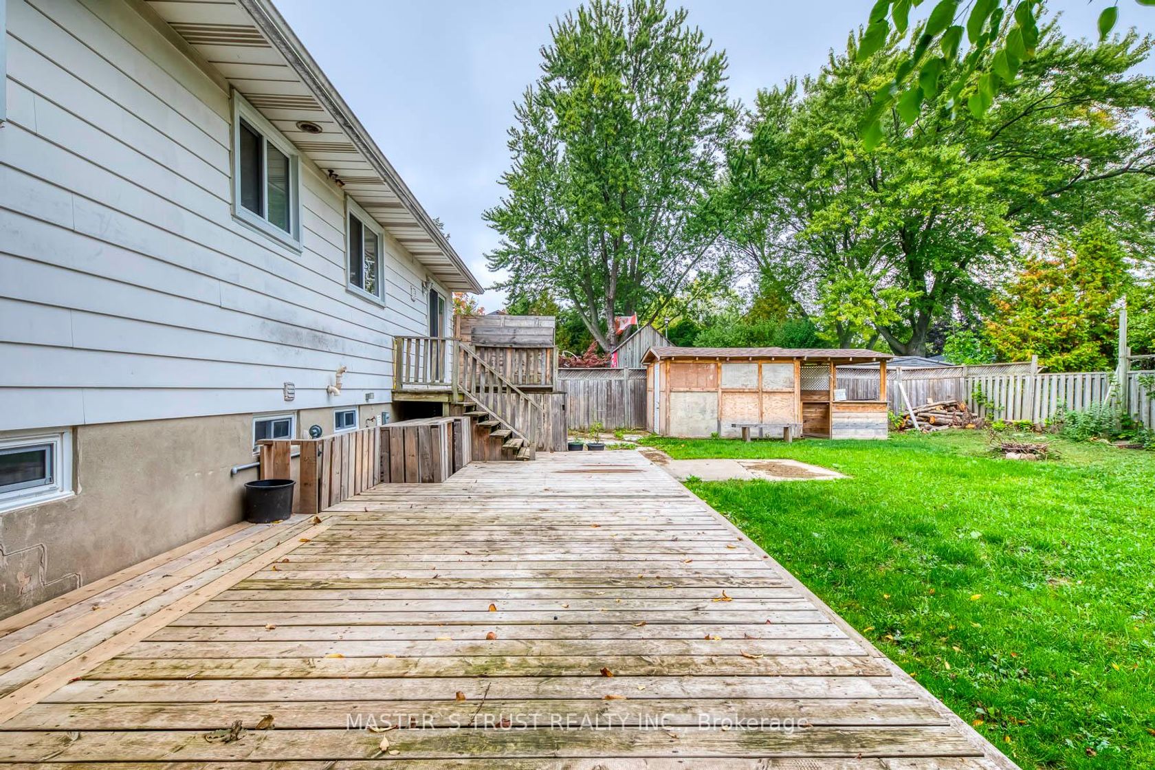 Walking Distance To Lake! Parks! and Elementary School! Clear front view!!Liv Rm&Din Room With W/O To Deck. Eat-In Kit Features Wainscoting, Pot Lights, S/S Appliances. All 3 Beds W/Hrdwd&Main. 4Pc Washroom. Finished Lwer Lvl Fam Rm W/Gas Fireplace, Laminate Flrs&Pot Lights. Lower Lvl Incl Bed&Access To Insulated Garage&2Pc.Fenced Yard W/Two Entrance Gates&Patio&Shed. Newer Furnace/AC.