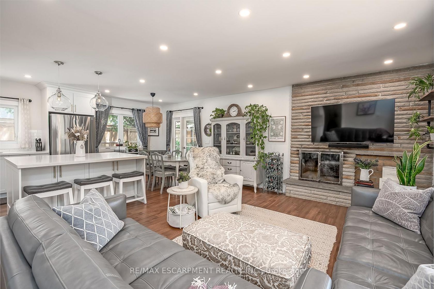 Amazing bungaloft in south Burlington! Situated in a quiet court, steps from downtown Burlington, this 3-bedroom, 2-bathroom home has been beautifully updated inside and out! Approximately 1700 square feet- this home has a great open concept floorplan and quality finishes throughout. The ground floor has rich engineered hardwood flooring and smooth ceilings with pot lights throughout. There is a spacious living / dining room with a wood-burning fireplace that is completely open to the kitchen. The kitchen features white cabinets, a large island, quartz counter tops, stainless steel appliances and access to the sunroom which can be enjoyed year-round. There are also 2 ground floor bedrooms, a 4-piece bath, laundry and plenty of storage space. The upper floor boasts an oversized bedroom, a walk-in closet, a second large closet, and a 3-piece ensuite with large walk-in shower. The exterior of the home boasts a private fenced yard, large shed, new deck, single car garage with ample accessible storage in the attic and parking for 4 vehicles! Just steps to downtown Burlington, this home offers easy access to a wide variety of shops, restaurants, and businesses. With close proximity to major transit routes, the nearby GO station, and all local amenities.