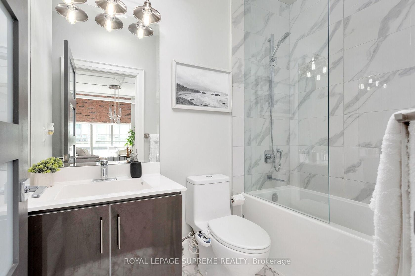 Welcome To The Network Lofts Where Industrial Chic Meets Modern Luxury! Step Into This Show-Stopping, Authentic Loft Conversion In The Iconic Former Bell Canada Building. This Corner Unit Boasts A Sprawling 1,200+ Sq Ft Of Sun-Drenched Space With Wraparound, Wall-To-Wall Windows, Soaring 10.5-Ft Ceilings, Bold Exposed Ductwork, And Striking Concrete Columns That Embody True Loft Living. Upgraded Light Fixtures Make Every Room Pop. A Jaw-Dropping Exposed Brick Feature Wall That Flows Seamlessly From The Kitchen Through The Living/Dining Space And Into The Primary Bedroom -- A One-Of-A-Kind Statement Piece. Both Bathrooms Are A Retreat Of Their Own, Fully Renovated With Marble Flooring, Porcelain Tile, And Frameless Glass Showers. Thoughtfully Designed Custom Closet Systems In The Entry And Walk-In Closets Offer Function With Flair. Network Lofts Features Incredible Amenities, Including A Fully Equipped Fitness Centre, A Stylish Party Room, Whirlpool, BBQ, A Rooftop Terrace With Panoramic Views, And A 24-Hour Concierge. And The Location? You're Just Steps From Islington Station, Making It A Commuters Dream. Enjoy Quick Access To The TTC, Kipling GO, And The QEW. You're Surrounded By Great Local Cafes, Parks, And Restaurants In The Heart Of Etobicoke. Just Minutes Away, Explore Kingsway Village With Its Charming Shops, The Historic Kingsway Theatre, And Vibrant Dining Scene. Outdoor Lovers Will Appreciate Being Close To James Gardens And Humber Bay Park, Both Offering Beautiful Trails And Scenic Escapes. If You're Looking For A Unique Space That Offers Both Style And Substance, This Loft Could Be Your Next Move!