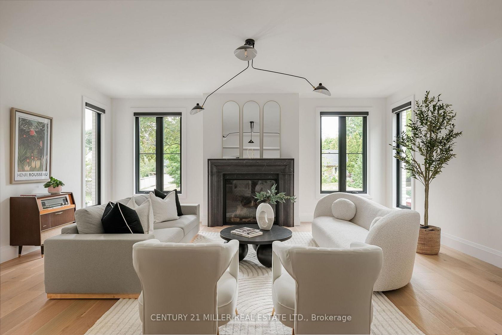Nestled on a private cul-de-sac in the prestigious LaSalle neighbourhood, this luxurious custom home, rebuilt & re-imagined in 2024 by Interface Construction, integrating part of the existing foundation, offers 3,481 sq. ft. of finished living space above grade. Just a short walk to the Burlington Golf & Country Club and minutes from Lake Ontario and LaSalle Park, the location is as desirable as it is convenient. Step inside to a grand foyer with soaring vaulted ceilings leading into the open-concept living and dining areas. The living room is anchored by a Trumeau fireplace, creating a warm and inviting ambiance, while the dining room with decorative nook is perfect for hosting. The chefs kitchen combines function and flow, featuring a large island, premium appliances, custom cabinetry by Imatree Cabinets & Woodworking, and seamless connection to both the dining room and the family room. With vaulted ceilings, expansive windows, and views of the rear yard, the family room is filled with natural light. A mudroom with powder room access and a rare drive-through garage entry complete the main floor. Upstairs, a unique recreation room adds versatile living space, ideal as a fourth bedroom, lounge, media room, office, or homework hub. The upper level also includes a sitting area overlooking the foyer, a serene primary suite with vaulted ceilings, custom cabinetry, spa-like 5-piece ensuite, and walk-in closet, plus two additional spacious bedrooms with a shared 4-piece bath. Designed for both relaxation and entertaining, the backyard offers two expansive concrete patios, professional landscaping and mature trees for privacy. From its elegant interiors to its private outdoor spaces, this home was designed for both everyday living and unforgettable entertaining.