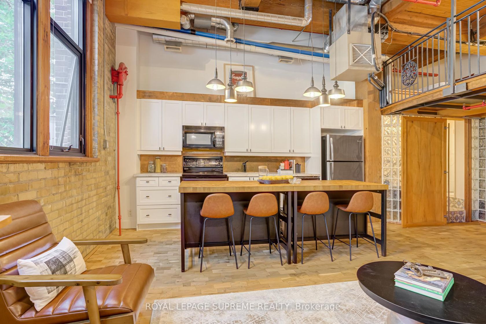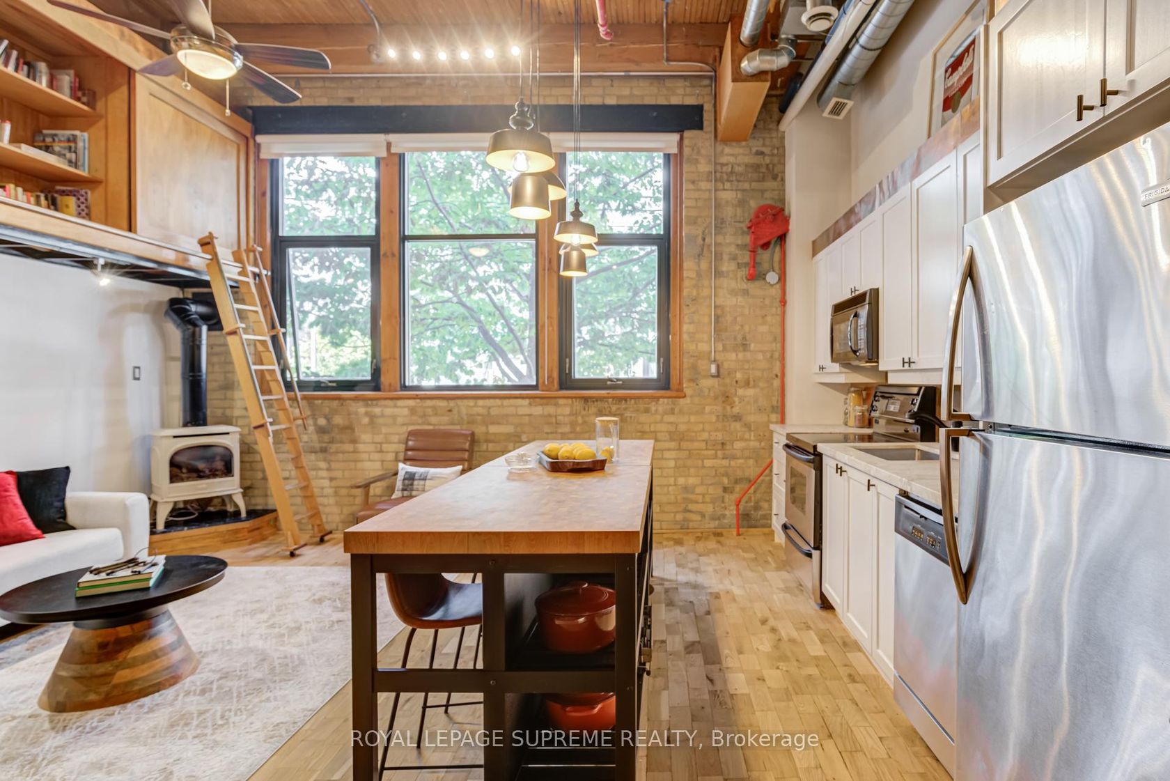 Exposed brick, soaring ceilings, and an open-concept design set the tone in this one bedroom, one bathroom hard loft at the boutique Wallace Station Lofts. A lofted bedroom, original hardwood floors, rolling library ladder, copper backsplash, and new quartz countertops strike the perfect balance of raw industrial character and modern style. Step outside and the Junction Triangle comes alive: cafes, eateries, and indie shops at every turn. With the Toronto Railpath at your door, seamless access to the UP Express, GO Transit, or the subway makes downtown (or even the airport) just minutes away. With surface parking and a locker included, this is urban living at its most vibrant and effortless.
