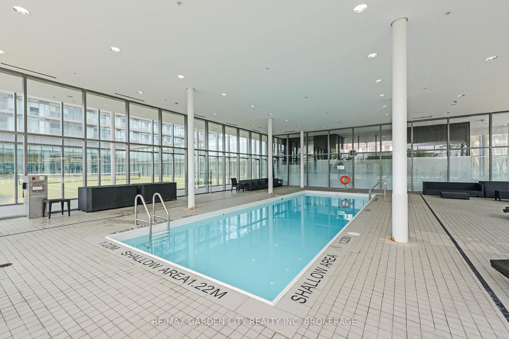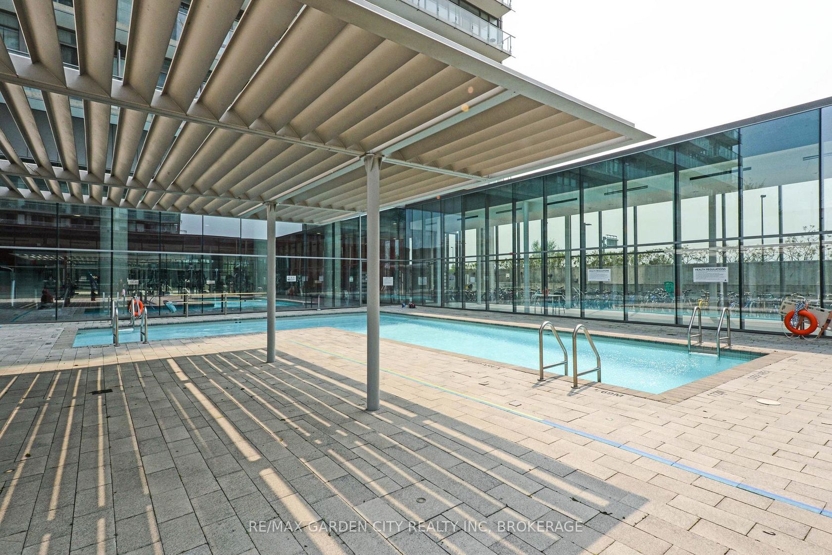 Stunning corner unit at NXT Condos with views of Lake Ontario and overlooking the outdoor and indoor pool facilities. The unit is a comfortable 984 square feet featuring two bedrooms, two full bathrooms, in-unit laundry, plenty of storage, as well as an open concept kitchen and main living space. The layout flows nicely and has a contemporary stylish quality with wall-to-ceiling windows throughout and multiple patio doors leading to the 40 foot long foot patio stretching the entire West side of the building. Located between the Humber River and High Park in the sought-after Swansea neighbourhood this 29 Storey modern building built in 2010 is home to an amazing community of people. Amenities include a 24-hour concierge and security service, a beautiful indoor and outdoor pool, lounge spaces, well-kept garden spaces, outdoor tennis courts, gym facilities, party rooms, media centers, gaming and recreation rooms, on-site day care, self-serve convenience store, indoor parking, storage lockers, and more. Amazing views, an attractive space, and in an excellent location.