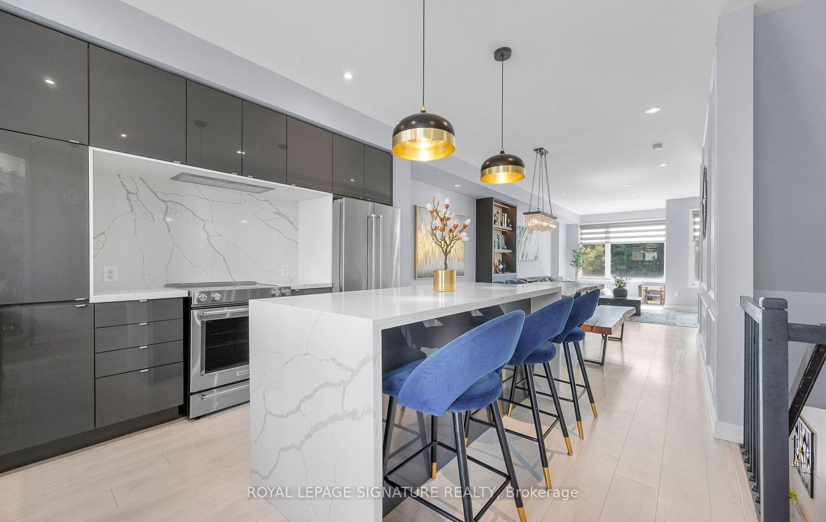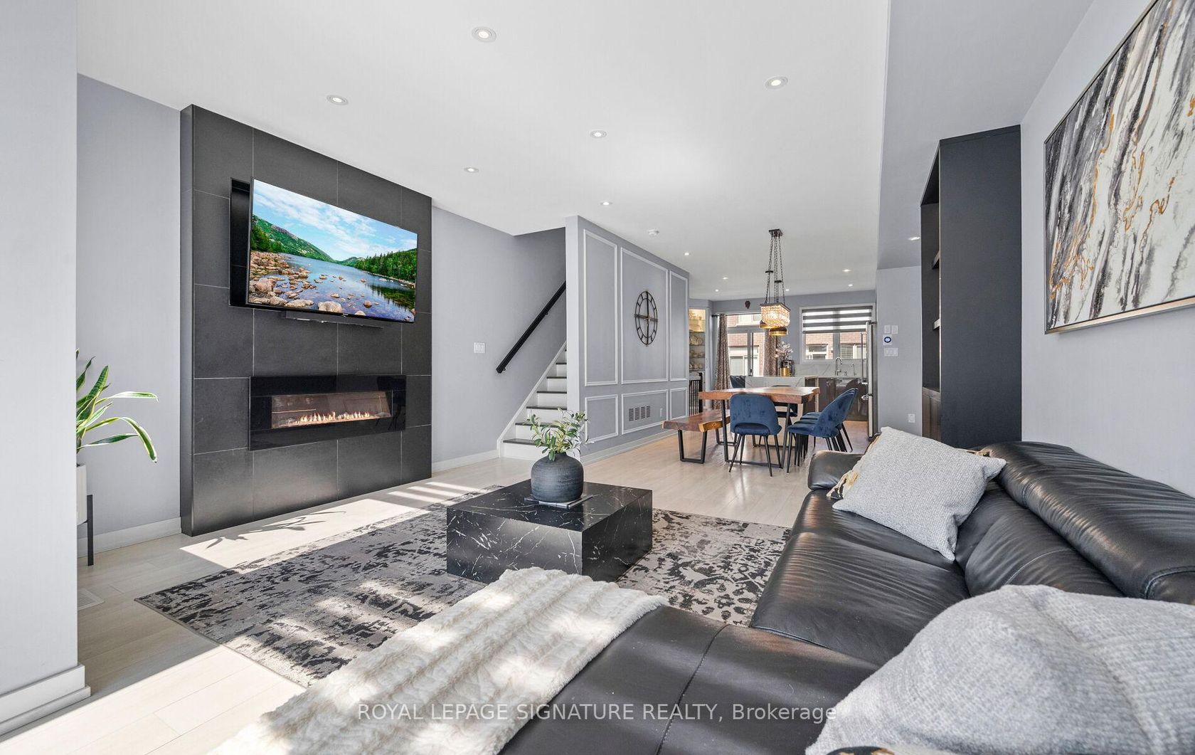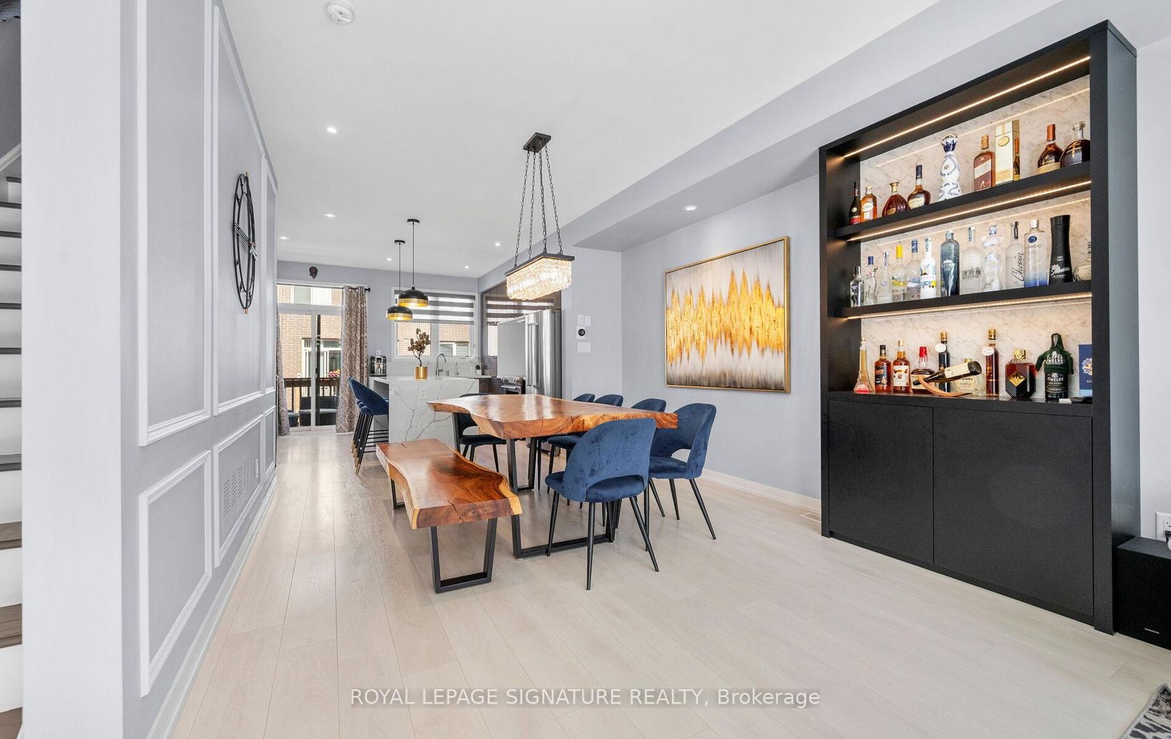 Must See Magazine Worthy Turn Key Modern Freehold Townhouse, Where No Detail Has Been Overlooked. This Stunning Home Features A Custom Chef's Kitchen With Quartz Countertops, Matching Backsplash, An Oversized Waterfall Island, And Premium Kitchen Aid Stainless Steel Appliances. The Open-Concept Layout, Enhanced By 9-Foot Ceilings On Every Floor, Smooth Ceilings On The Main Level , And Modern Flooring Throughout, Is Perfect For Entertaining. Enjoy Elegant Touches Like Pot Lights, Designer Light Fixtures, Custom Wainscotting, And Zebra Blinds Throughout With Remote Controlled Blinds In The Main Living Area And Master Bedroom. A Custom TV And Fireplace Feature Wall, Along With A Built-In Bar With Lighting, Elevate The Space Even Further. Large WindowsFlood The Home With Natural Light, While The Master Suite Offers A Walk-In Closet And A Luxurious Ensuite. Additional Highlights Include A NestThermostat, Fresh Paint, Interlocked Front Yard, A Beautifully Designed Backyard Retreat, And Convenient Garage Access From Inside The Home. Located In A Prime Area Close To Stores, Restaurants, Top Rated Schools, Parks, Hospital, Transit, Highways, Golf Courses And Much More!